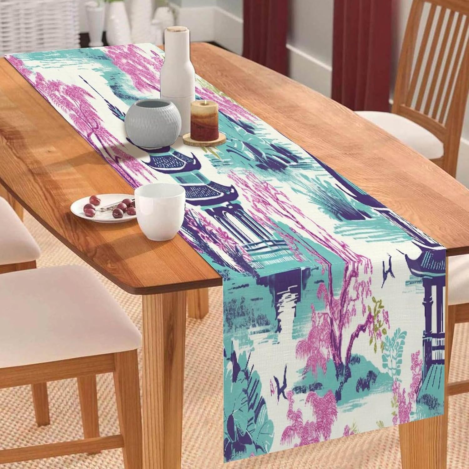 Dimensioni: 182 x 35 cm. Materiale: realizzato in morbido lino di cotone, comodo e durevole, resistente all'usura. Protegge la superficie del tavolo per la decorazione quotidiana della tavola, proteggendo la superficie del tavolo da pentole calde, graffi, danni causati dal calore. [Grande decorazione]: i runner da tavola sono un modo veloce, facile ed economico per aggiornare il tavolo della sala da pranzo, la camera da letto, il comò. Sarà il tuo compagno perfetto per colazione, pranzo e cena. Questa tovaglia dal design elegante aumenterà il fascino del tavolo da pranzo. [Uso multiuso]: alla ricerca di un runner da tavola per più occasioni? Non cercare più! Questo runner da tavola può andare dal ringraziamento alla festa di Natale ed è ottimo anche per una serata estiva informale. Sarà anche un regalo perfetto per i tuoi cari per l'inaugurazione della casa, il Ringraziamento o Natale. Ampia applicazione: caratterizzato da un motivo elegante con un bel bordo con nappe, sembra bello e vintage. Adatto per l'uso quotidiano, balli, matrimoni, feste o qualsiasi vacanza speciale. Ideale per uso interno ed esterno, come cucina, giardino, tè pomeridiano, caffè, cene, balcone, potlucks.