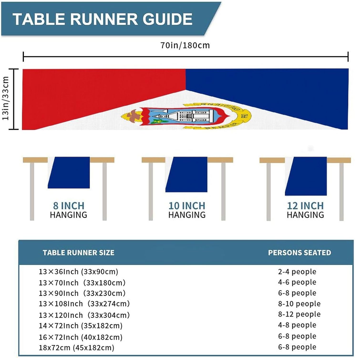 Runner da tavolo con bandiera nazionale di Sint Maarten, runner da tavolo, decorazione da tavolo per cucina, tavolo da pranzo, decorazione per feste in casa, 33 x 178 cm