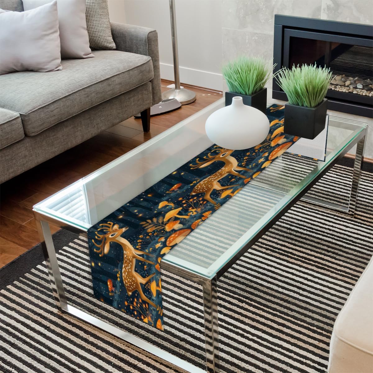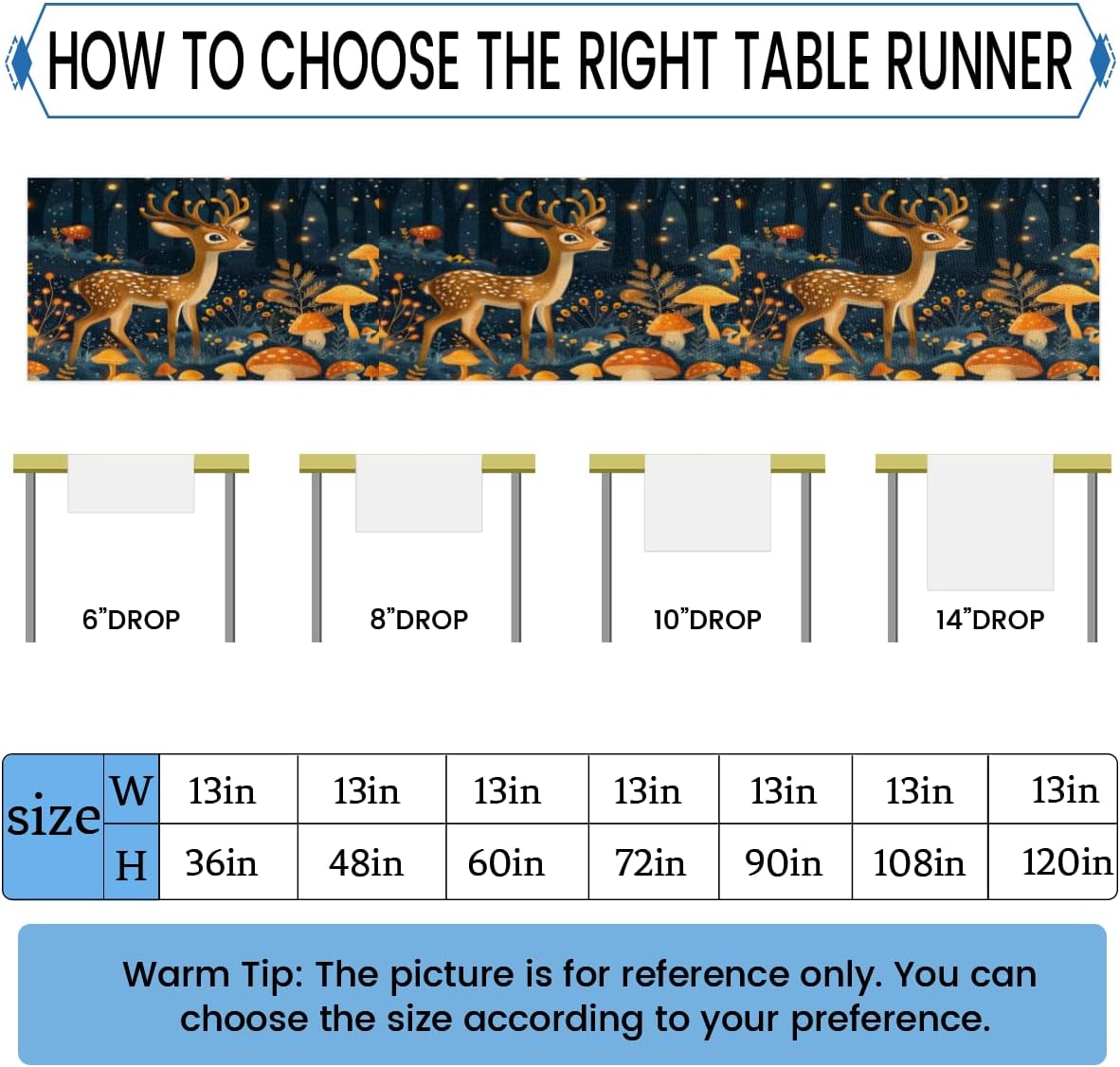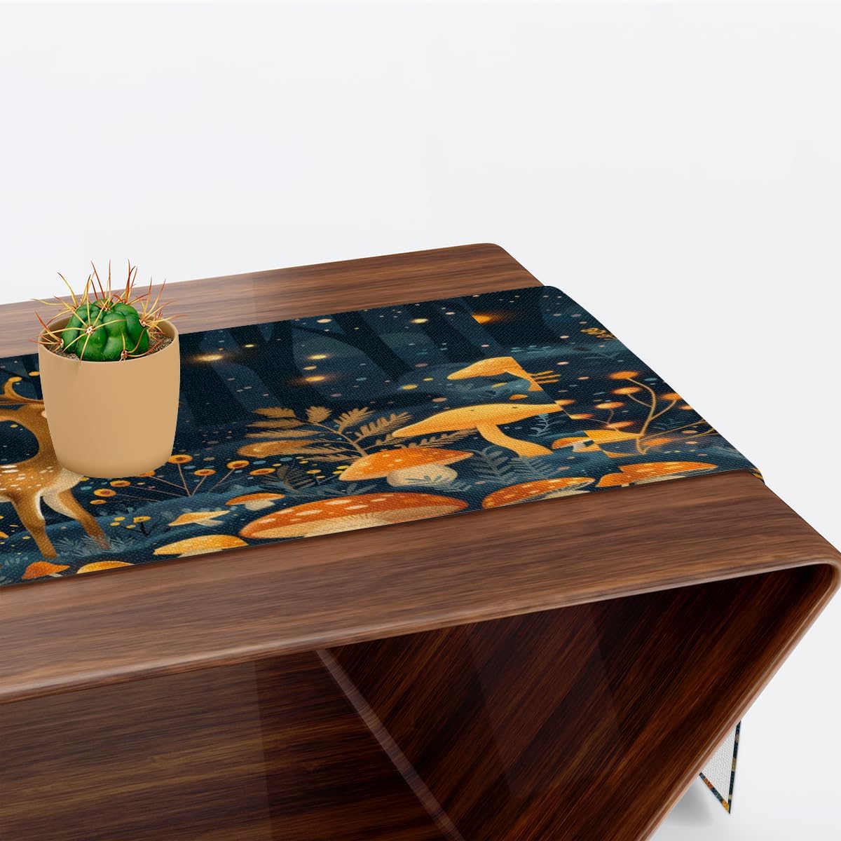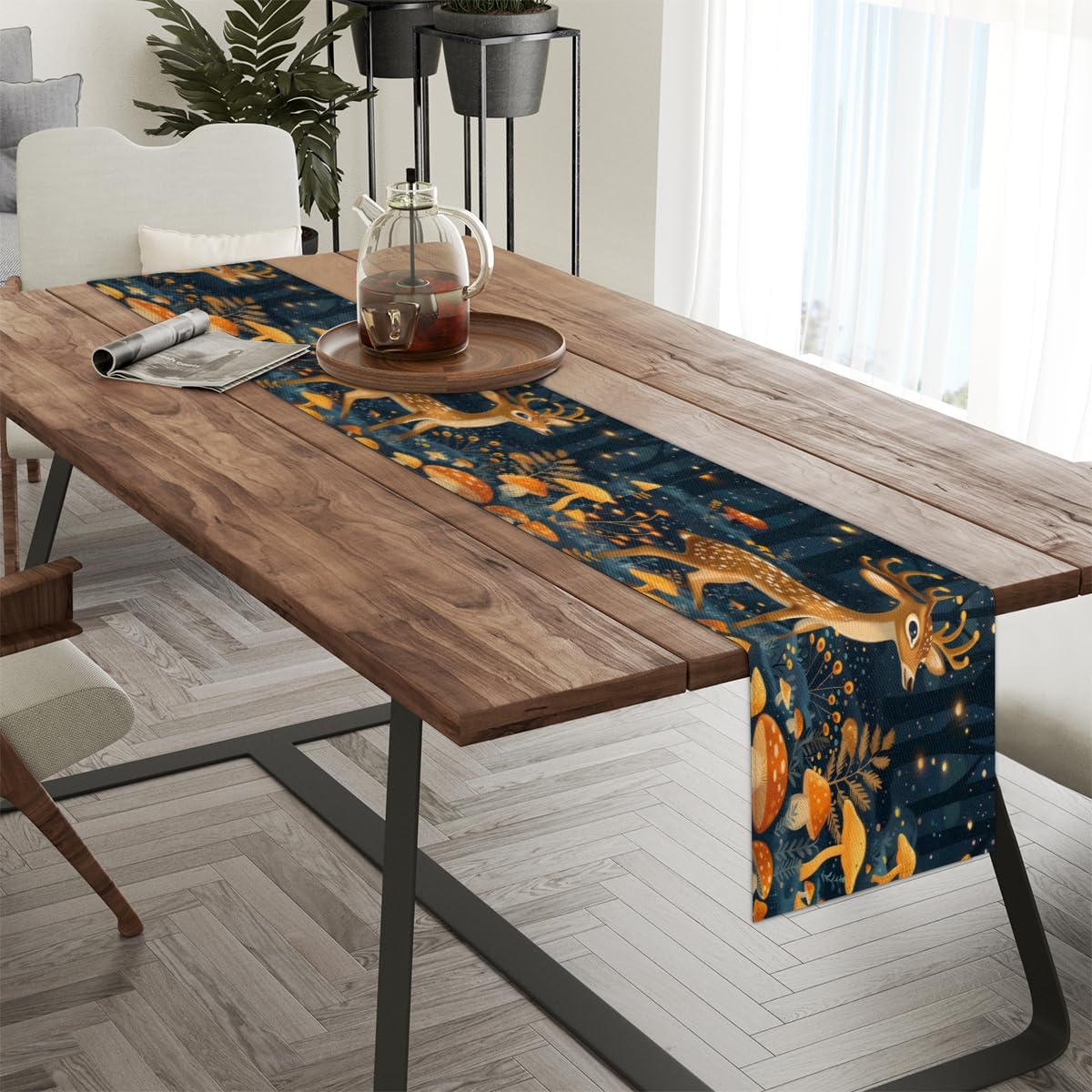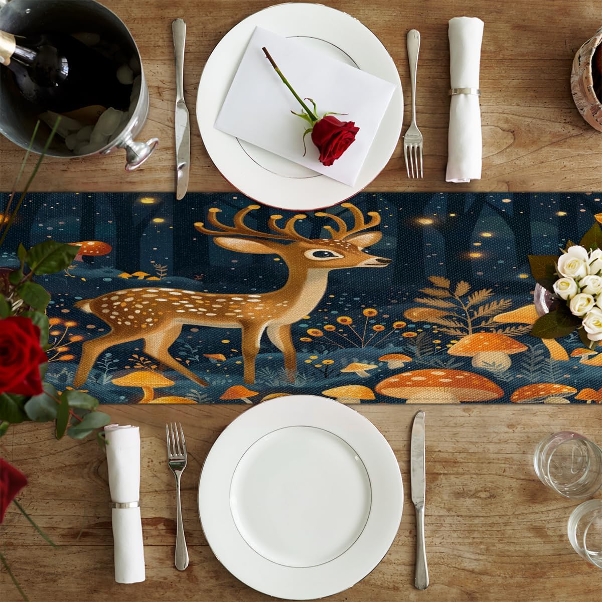 Runner da tavolo con cervi della foresta natalizia, 33 x 182 cm, decorazione per tavolo da pranzo per la casa, decorazione per feste a forma di fungo