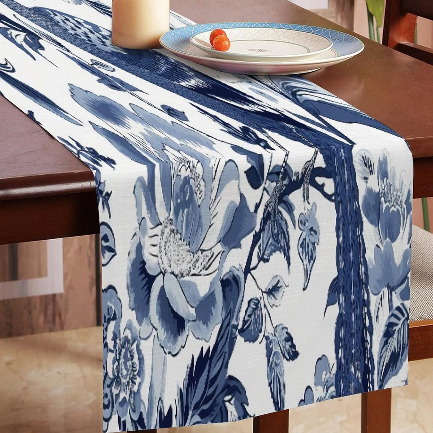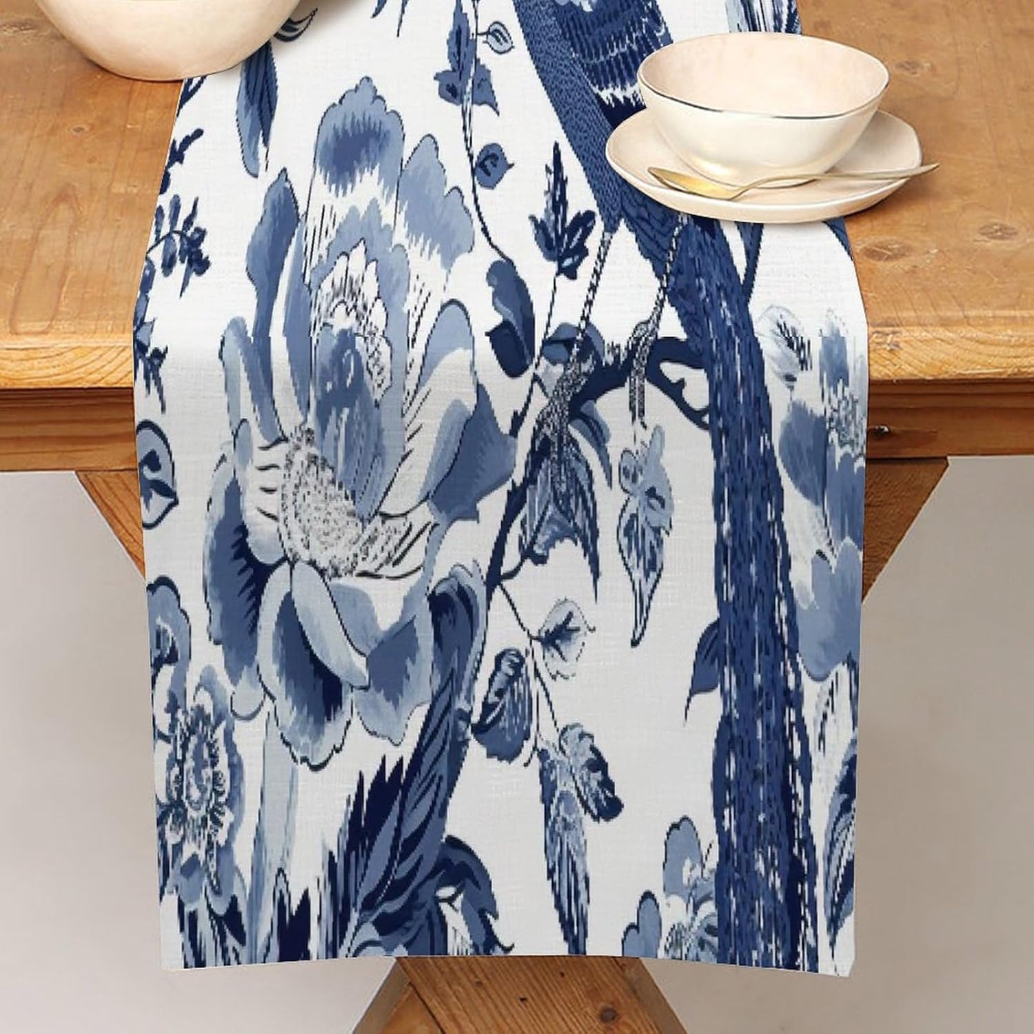 Runner da tavolo con pavone e peonie per comò, sciarpe, runner da cucina per cene in fattoria, feste festive, matrimoni, eventi, decorazione, 33 x 304,8 cm