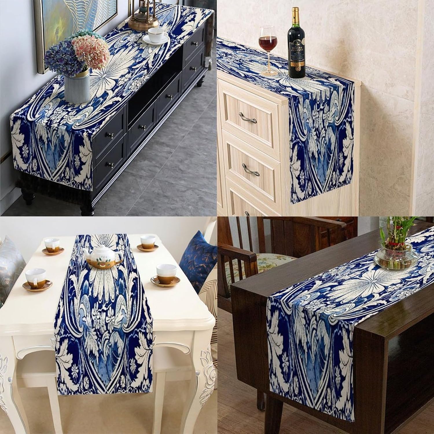 Runner da tavolo da pranzo con fiori blu, sciarpe, runner da cucina per cene in fattoria, feste, matrimoni, eventi, decorazione, 40,6 x 182,9 cm