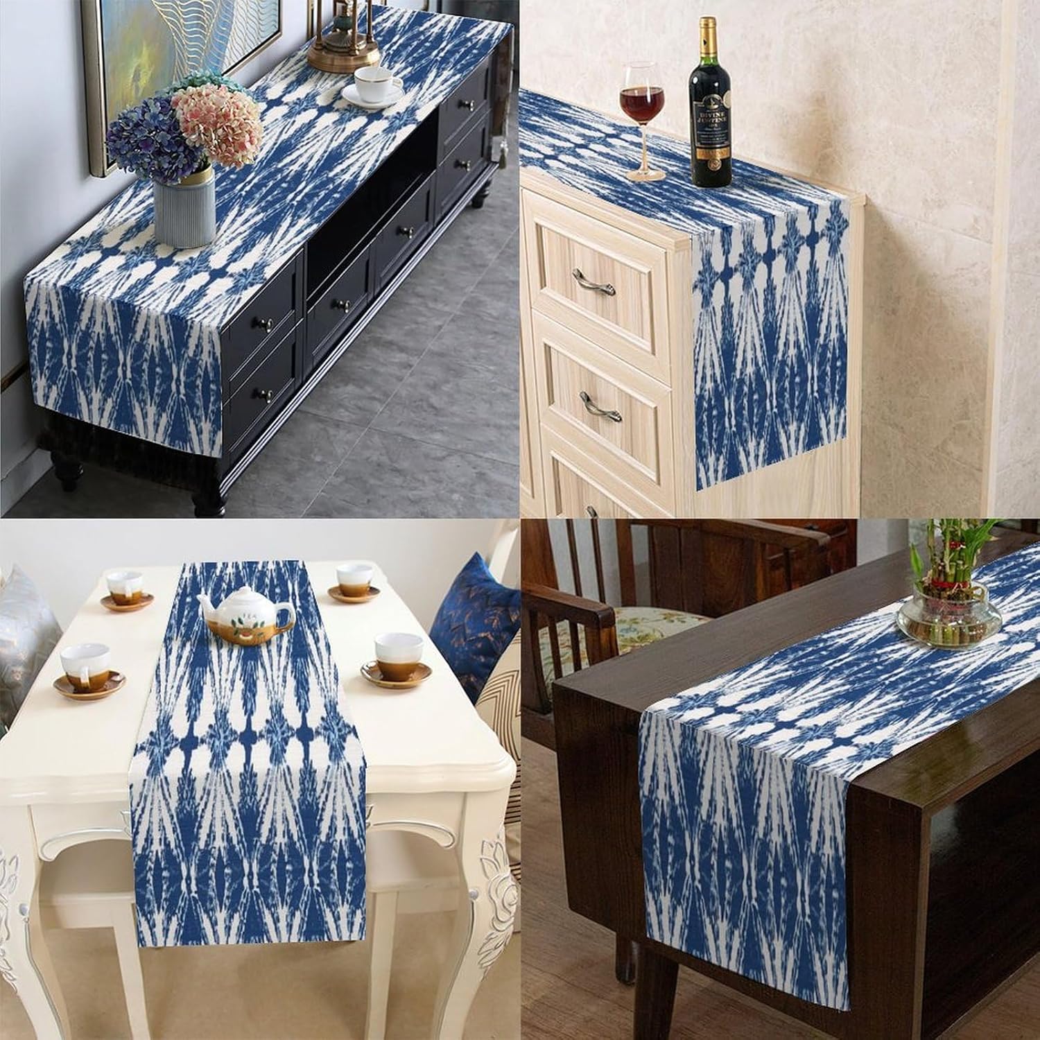 Runner da tavolo da pranzo con graticcio blu indaco, sciarpe, runner da cucina per cene in fattoria, feste festive, matrimoni, eventi, decorazione, 33 x 91,4 cm
