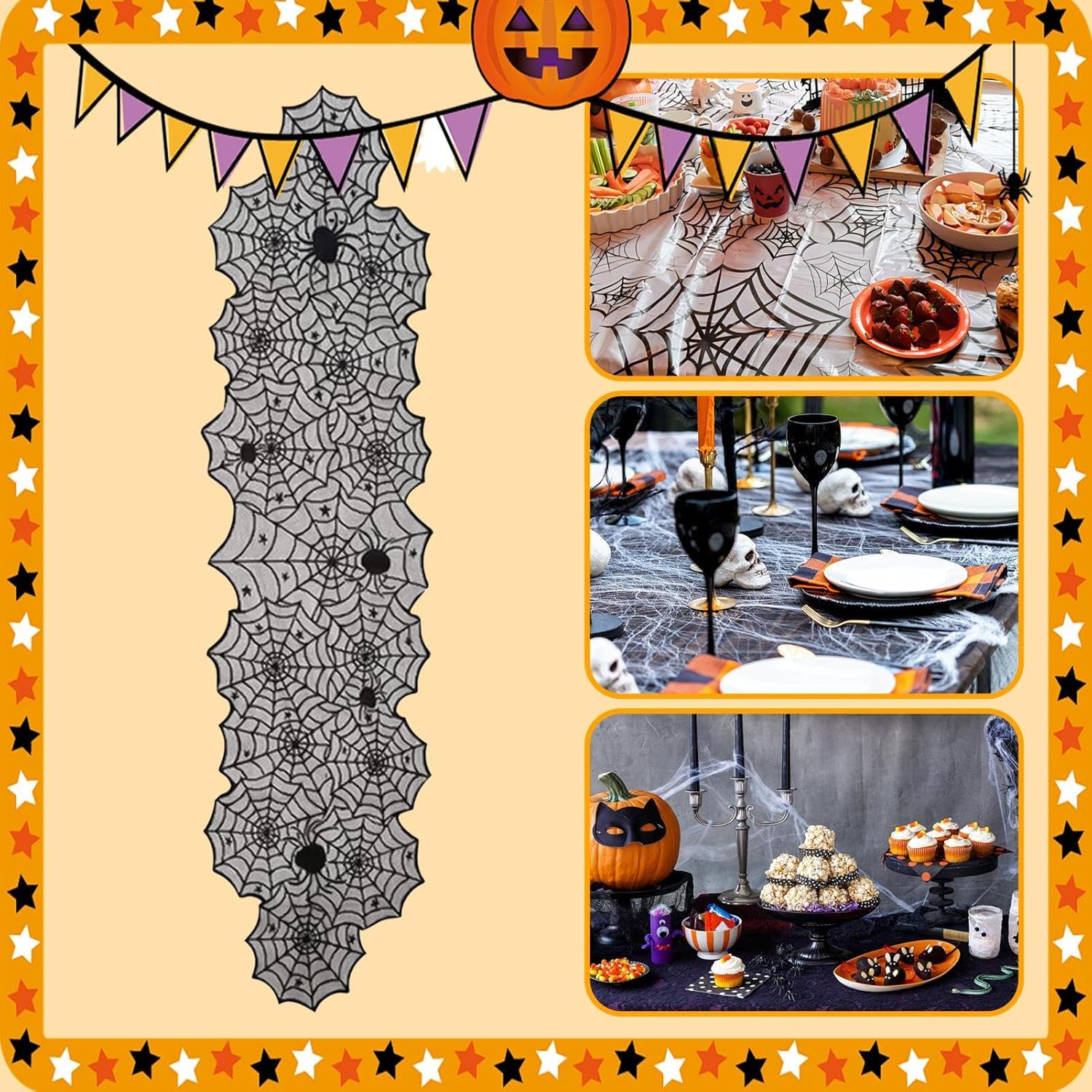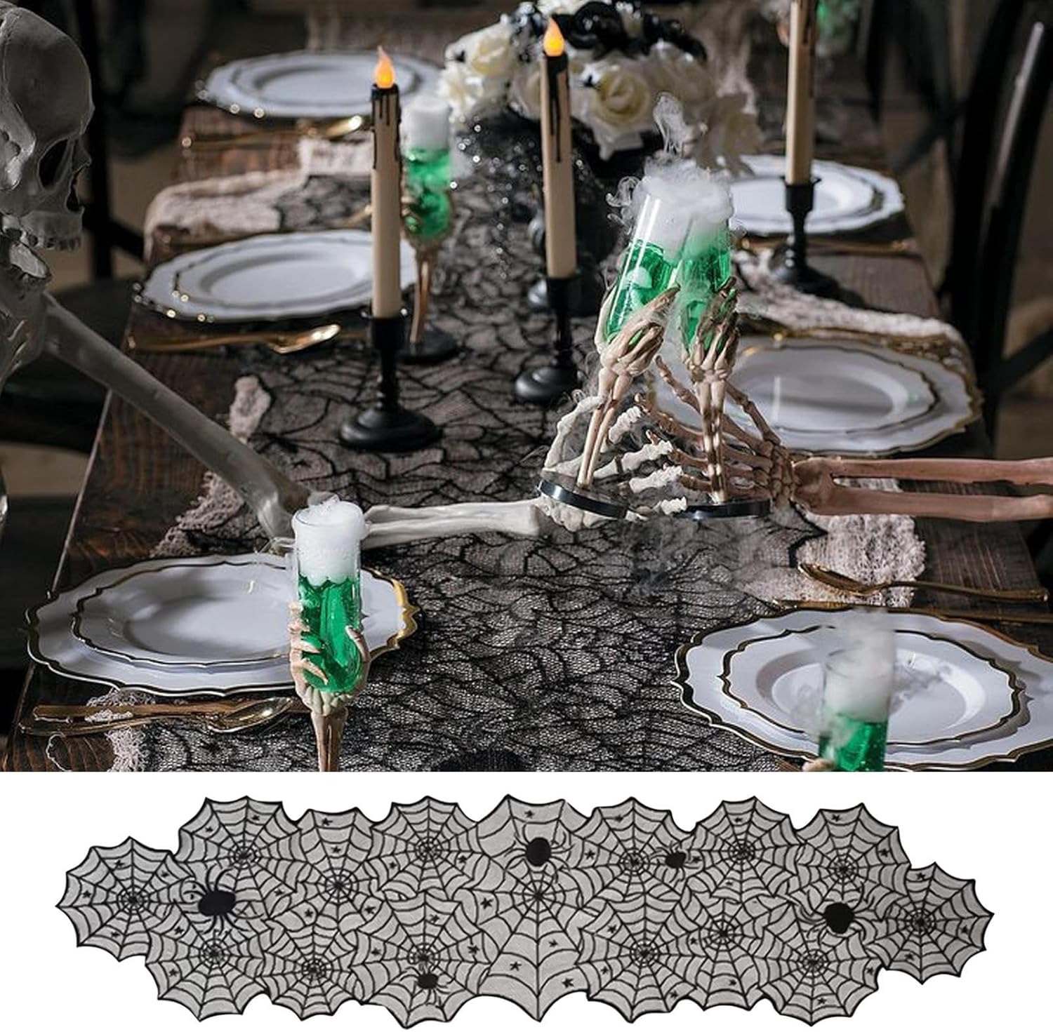 Atmosfera festosa: sensazione cerimoniale promossa con il classico pizzo nero, motivo a rete e design a ragnatela per creare un'atmosfera misteriosa, perfetta per l'arredamento di Halloween. Poliestere che mantiene la forma: realizzato in poliestere resistente all'usura, questo runner è progettato per mantenere la sua forma e non impigliarsi anche dopo un uso a lungo termine. Offre prestazioni affidabili come accento decorativo per riunioni o eventi di Halloween Copertura multifunzionale: Supporta varie opzioni di disposizione stilistica con adattabilità a diverse scene, fornisce una copertura flessibile per tavoli e caminetti completando al tempo stesso vari temi di decorazione della stanza in modo funzionale Facile trasportabilità e conservazione: L'imballaggio piatto a compressione e la forma compatta facilitano il trasporto e la manipolazione, migliorando l'esperienza dell'utente nelle celebrazioni di Halloween Installazione semplice: Prova l'uso immediato con questo runner da tavolo che ha un effetto naturale Fornisce un effetto drappeggio sui bordi migliorando il fascino visivo del tuo allestimento di Halloween senza sforzo e senza passaggi complicati