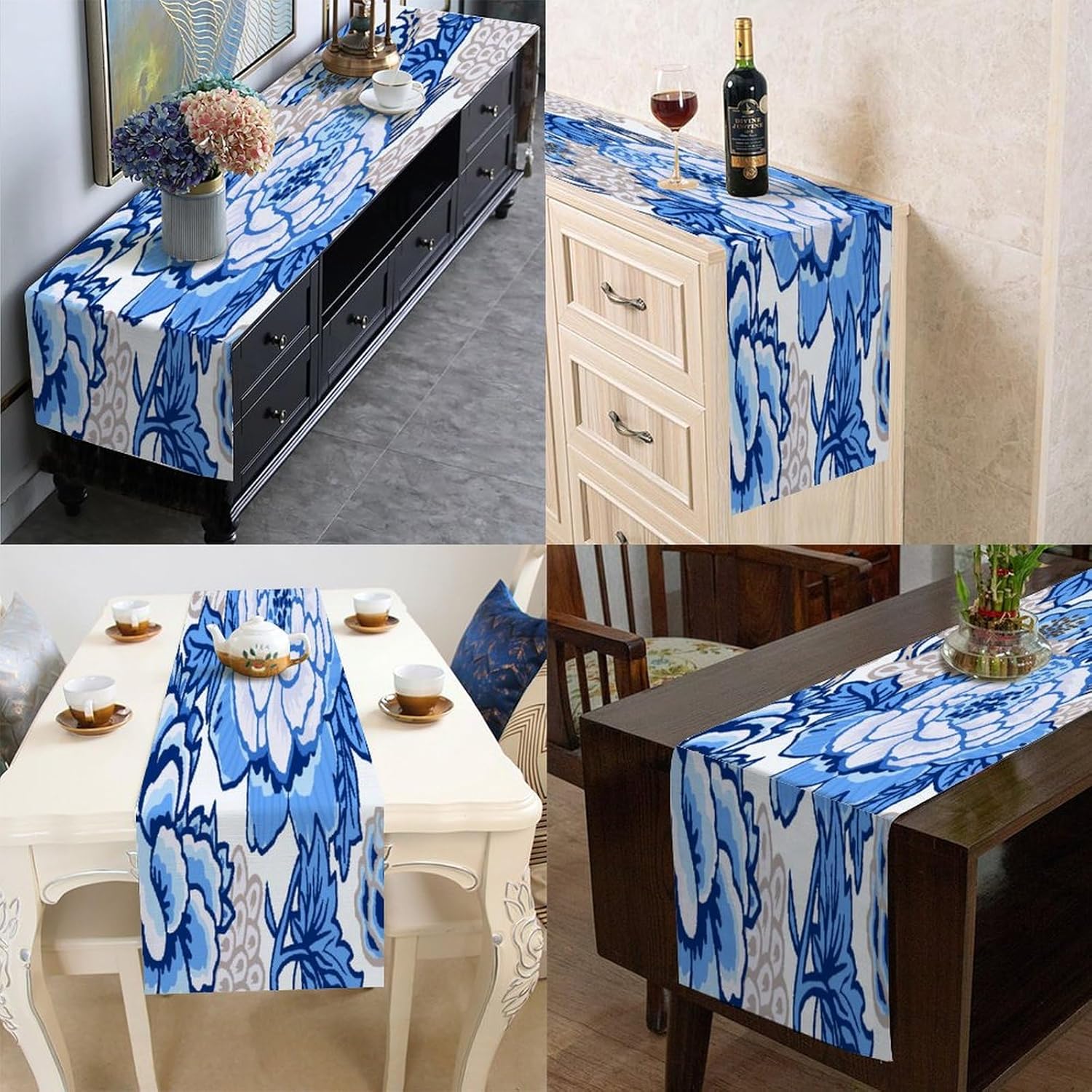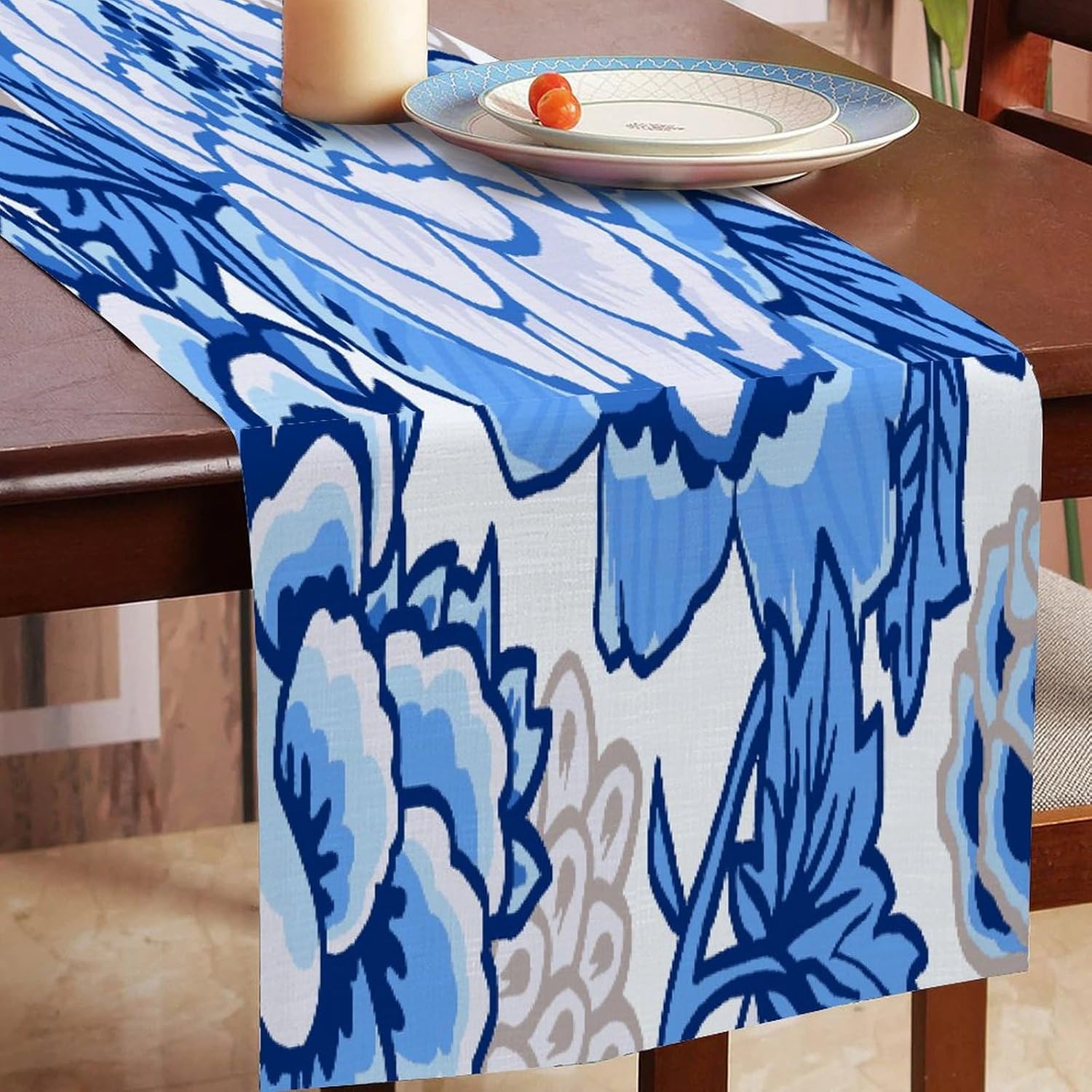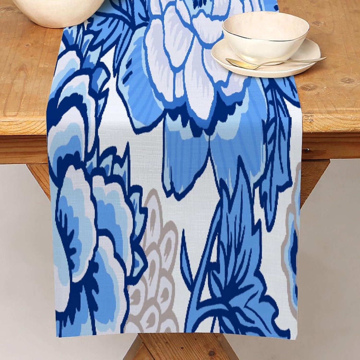 Runner da tavolo divertente da chef cineserie fiore di peonia blu bianco cotone lino stile fattoria decorazione da cucina runner per tavolo da pranzo da cucina decorazione per occasioni speciali per feste