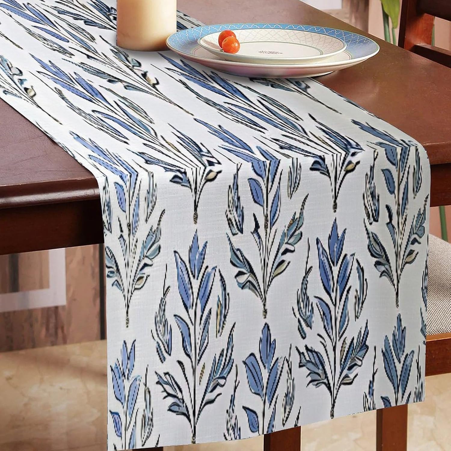 Runner da tavolo floreale blu, 16 x 72 pollici, tappetino decorativo per cucina, sala da pranzo, feste, riunioni di famiglia, decorazioni per runner da tavola