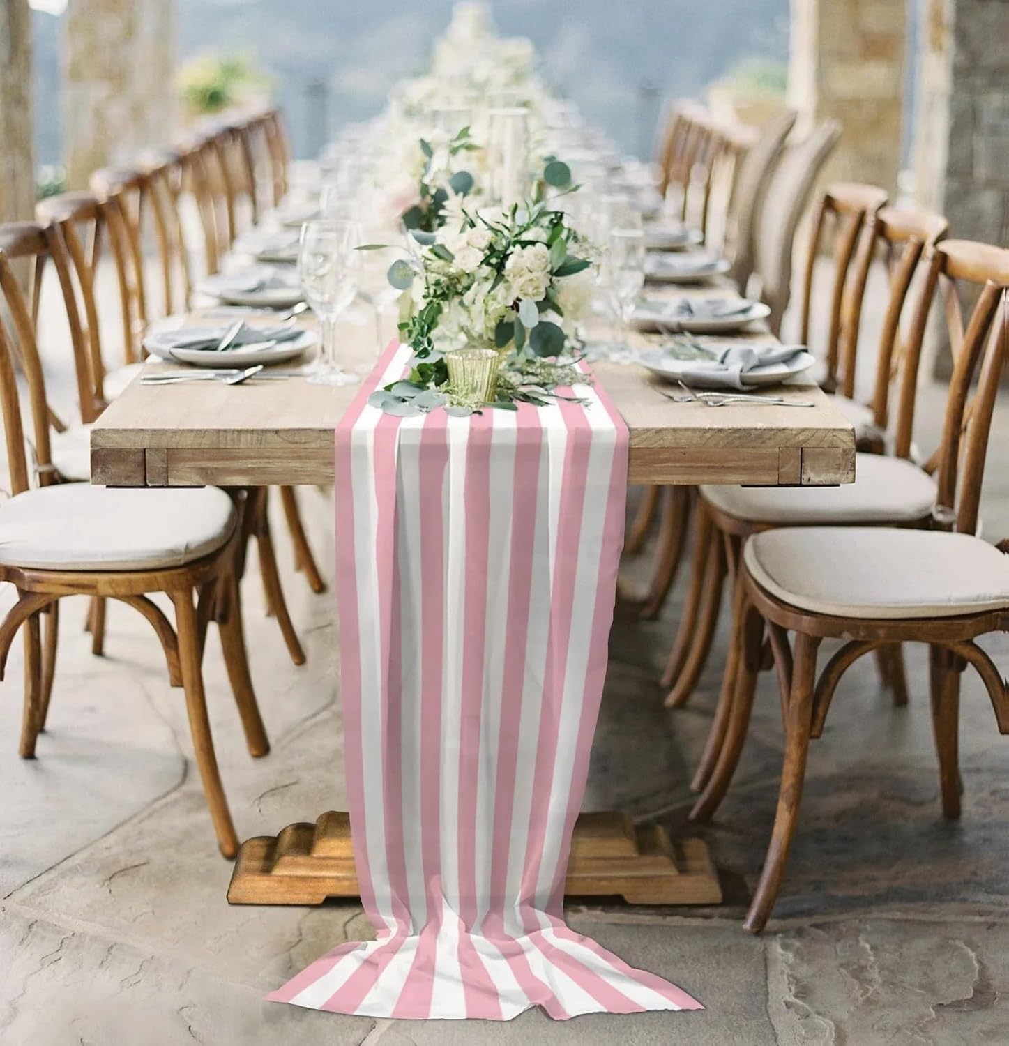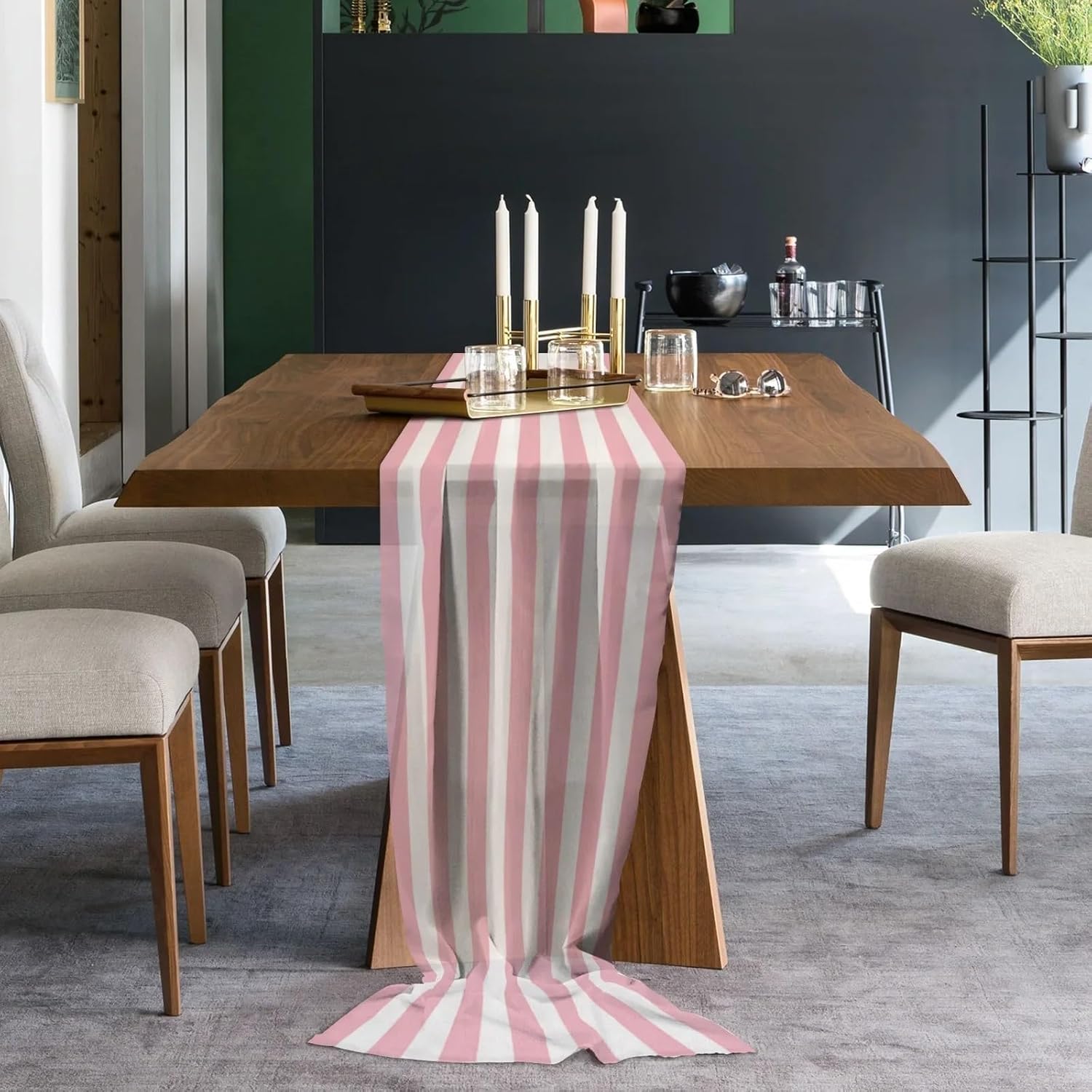 Runner da tavolo for tavolo da pranzo Runner da tavolo in chiffon a righe Runner da tavolo in chiffon semplice rosa for cucina Soggiorno Decorazioni for tavolini da matrimonio Runner da tavolo in garz
