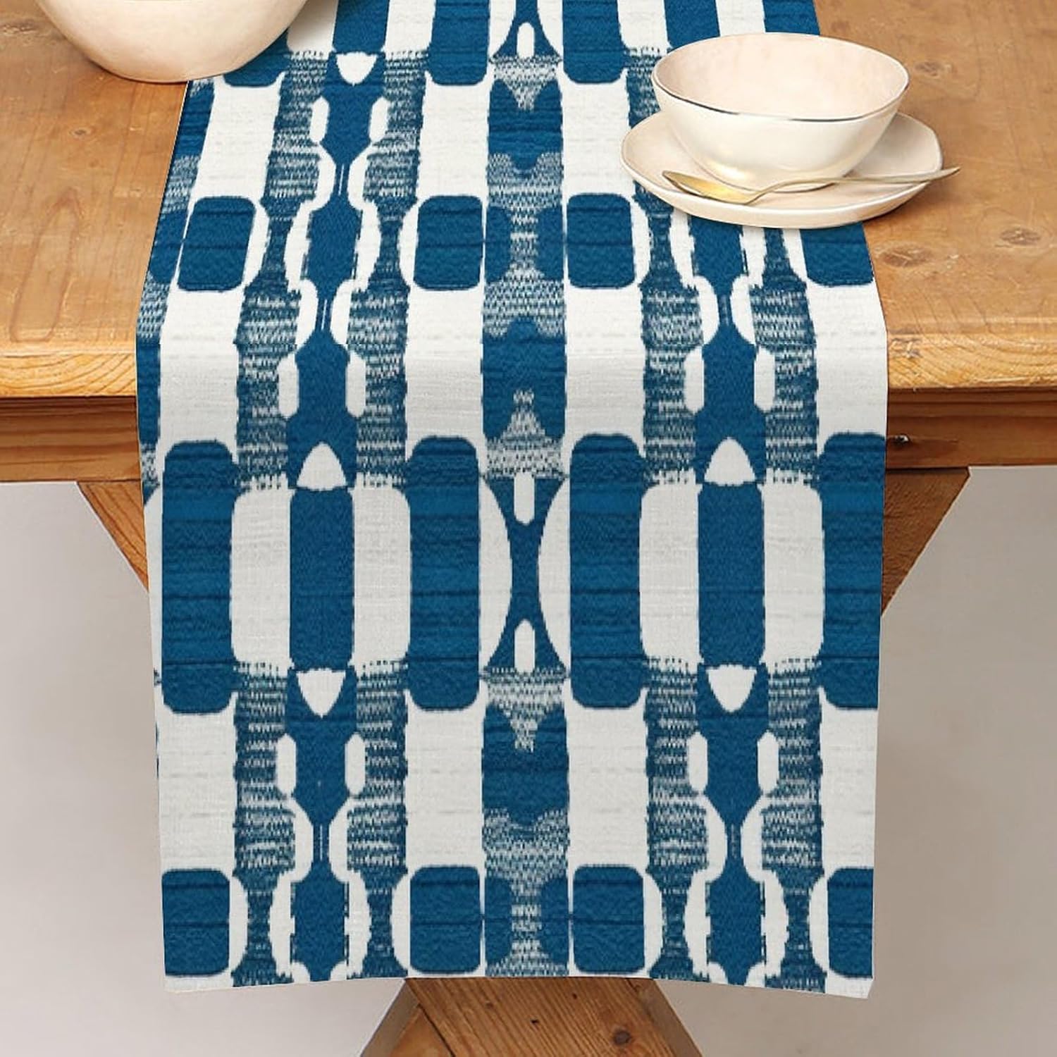 Runner da tavolo geometrico blu 13x12 pollici Tappetino decorativo da cucina Cucina Sala da pranzo Festa Famiglia Raccolta Decorazione runner da tavolo per le vacanze