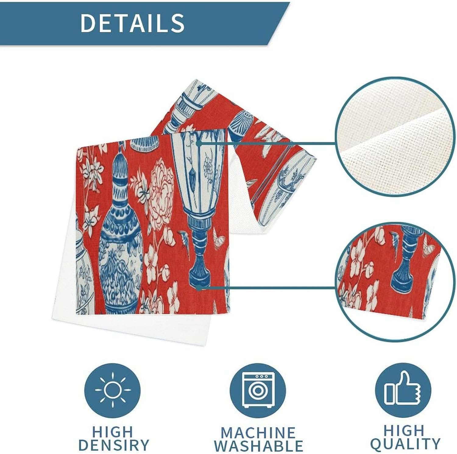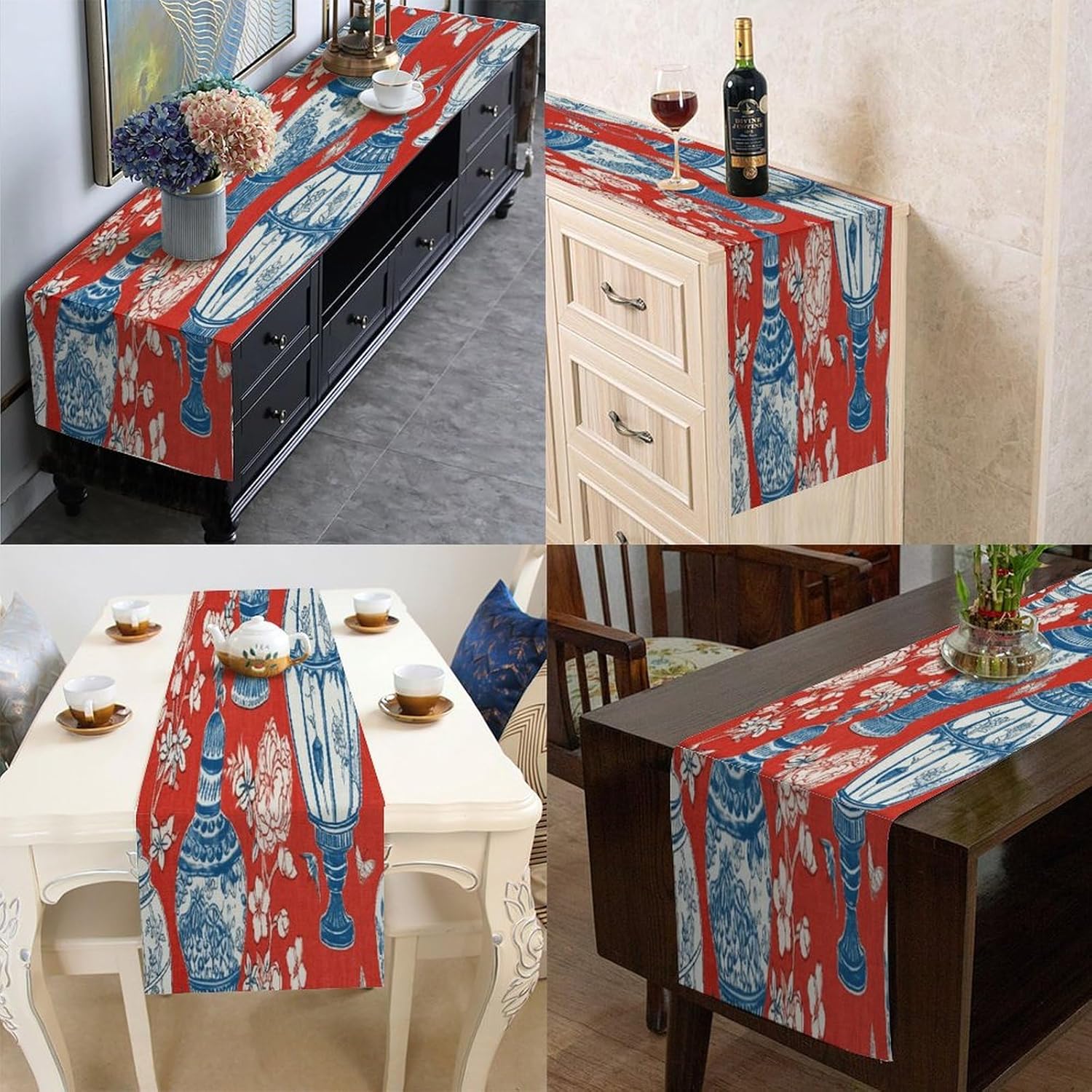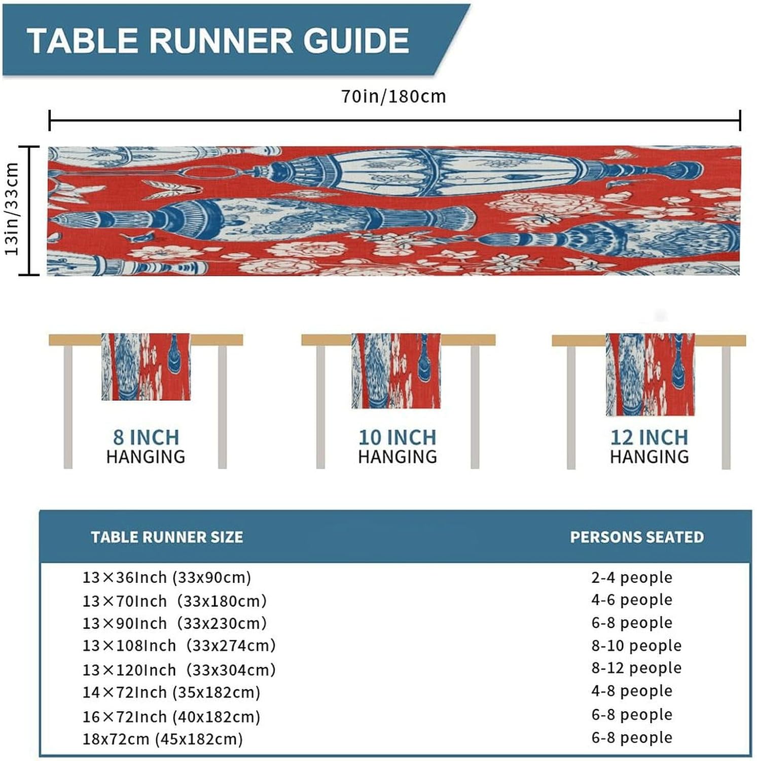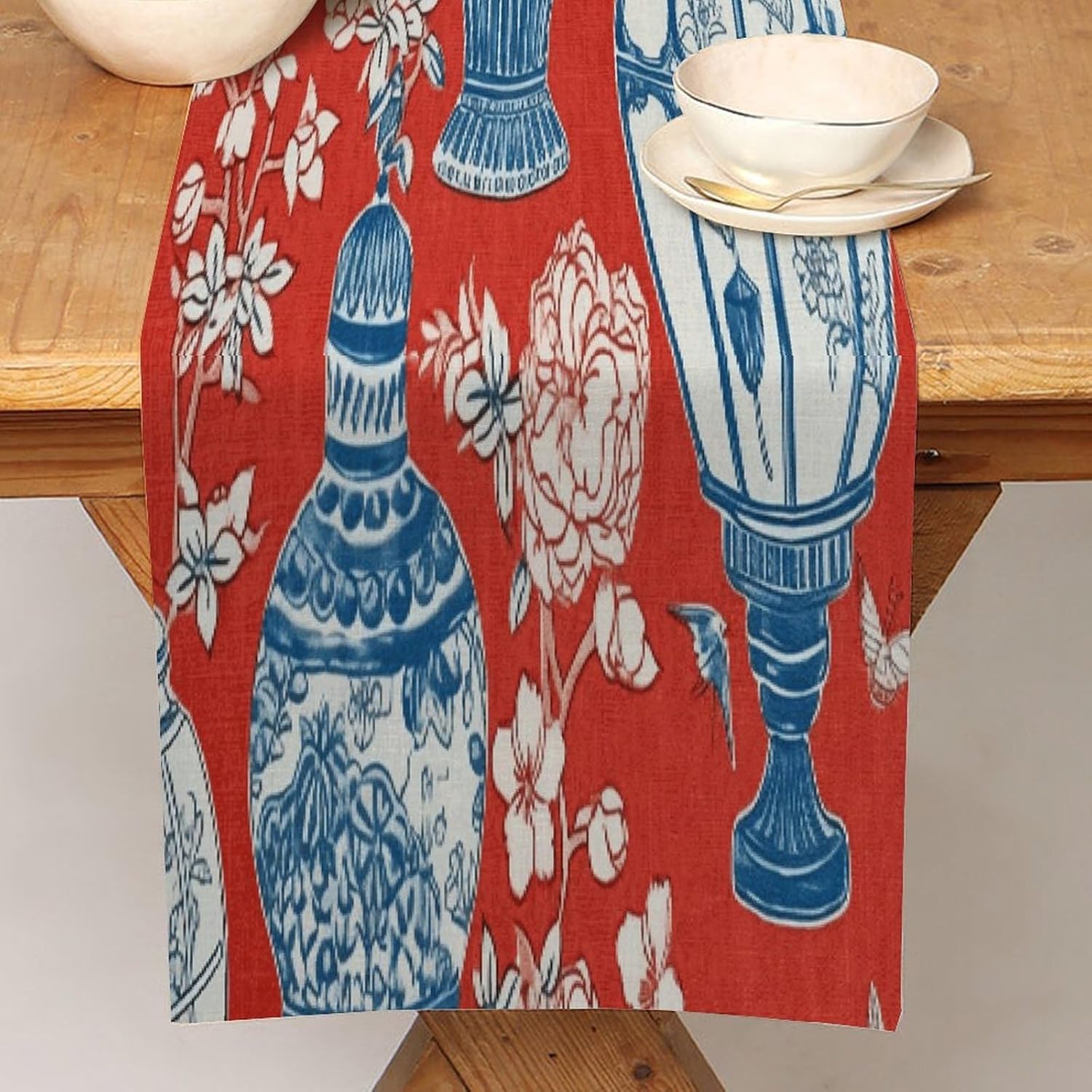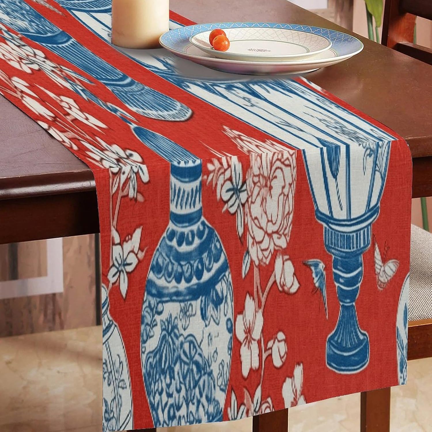 Runner da tavolo in barattolo di zenzero blu di ispirazione cinese di ispirazione asiatica, 33 x 178 cm, tappetino decorativo per cucina, sala da pranzo, feste, riunioni di famiglia, vacanze, runner da tavola