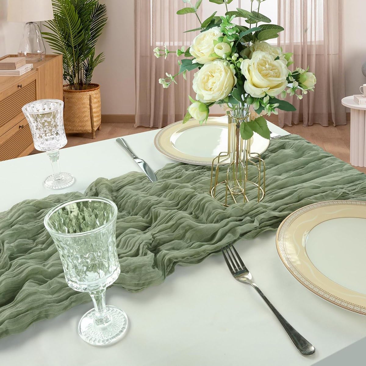 Materiale di alta qualità: questo runner da tavolo in verde è realizzato in poliestere di alta qualità, che unisce la consistenza naturale della con fibre sintetiche per garantire e facilità di manutenzione. La sua eccezionale durata garantisce un utilizzo prolungato e una facile manutenzione.