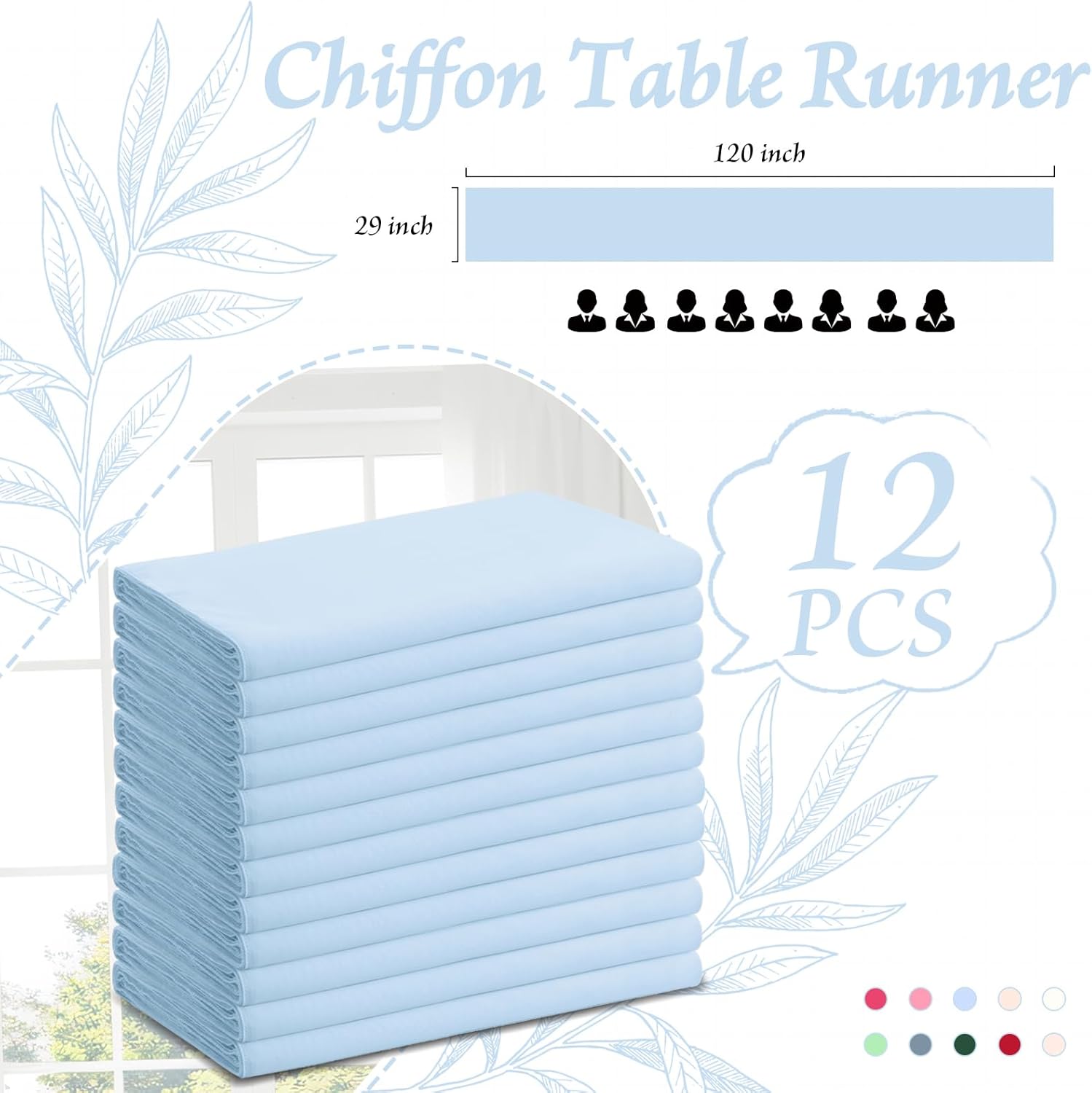 Il pacchetto include: 12 runner da tavolo in chiffon da 29 "L x 120" L, realizzati al 100% in poliestere con taglio termico, cuciture delicate e bordi rifiniti, morbidi, resistenti alle pieghe, non sbiadiscono, una scelta ideale per la decorazione del tavolo. Esposizione decorativa: questi runner da tavolo azzurri non solo trasudano eleganza, ma mostrano anche vari effetti decorativi. Che si tratti di piegature morbide, drappeggi aggraziati o pieghettature perfette, aggiungono un tocco di lusso alla decorazione della tua tavola e creano straordinari effetti visivi adatti a diverse occasioni. FACILE CURA E FACILE CURA: tutti i tipi di runner da tavolo sono realizzati con materiali di facile manutenzione, lavabili in lavatrice nel sacchetto della biancheria o a mano in acqua fredda e asciugabili all'aria. Non candeggiare, stendere o appendere ad asciugare, senza torcere. Non devi preoccuparti delle rughe, sono morbide, lisce, resistenti e comode da riutilizzare, risparmiando tempo e fatica. MULTIUSO - Che si tratti di matrimoni, feste di compleanno, vacanze o uso quotidiano, questi runner da tavola trasparenti si completano perfettamente a vicenda e creano un ambiente romantico ed elegante. Adatti a vari eventi come tavoli nuziali, espositori per torte, tavoli a cuore, ambientazioni per San Valentino, ecc. Aggiungono un tocco di raffinatezza ai tuoi incontri. ❤Al vostro servizio: ci dedichiamo a un rigoroso controllo di qualità prima dell'imballaggio e della spedizione. La soddisfazione del cliente è l'obiettivo primario di Horbaunal. Se non sei soddisfatto del nostro prodotto, ti garantiamo che restituirai la merce entro 30 giorni senza motivo. Su cosa stai ancora esitando? Basta ordinarlo e vivere una meravigliosa esperienza di festa.