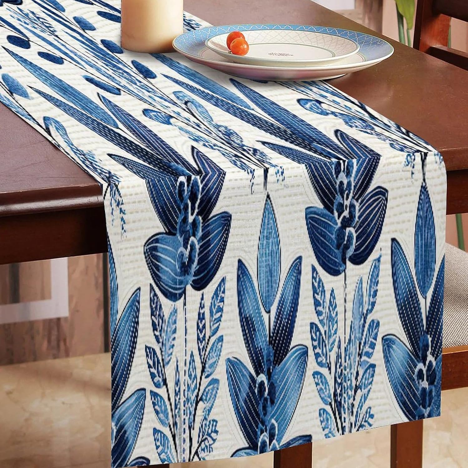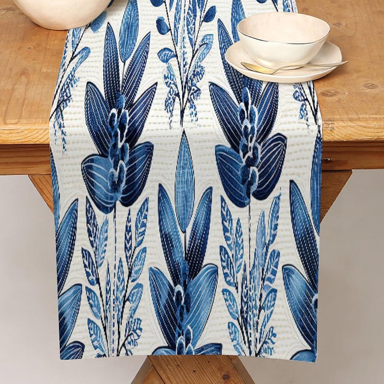 Runner da tavolo in cotone e lino con motivo a griglia blu indaco divertente chef, runner da cucina in stile rustico per tavolo da pranzo da cucina, decorazione per feste per occasioni speciali
