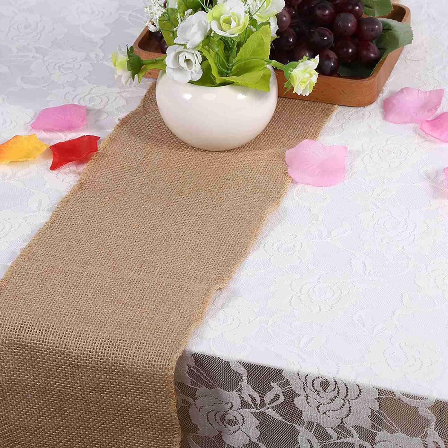 Rotolo lungo di tessuto di tela: i runner da tavolo di tela sono realizzati in materiale di iuta. Rotolo di tessuto di iuta color lino rustico, stile vintage rustico, decorazione speciale da tavola per decorazioni di nozze vintage per la casa: tovagliette e tovagliette. Tutti i bordi sono accuratamente cuciti per evitare sfilacciamenti. Runner da tavolo in tela di iuta 6 misure tra cui scegliere, adatto a tutti i tavoli Runner da tavolo Decor: nastro di tela di iuta, ideale per molti tipi di artigianato, borse, sacchi, panni e tappezzeria Runner da tavolo in iuta: runner da tavolo realizzato in tela di iuta, adatto per decorazioni di nozze, tovagliette, decorazioni per festival, feste, ecc. Runner da tavolo vintage: vuoi che il tuo ricevimento di nozze o banchetto sia speciale? Ti piace provare uno stile rustico vintage? Vieni a vedere il nostro runner da tavolo, il runner marrone è fatto di iuta