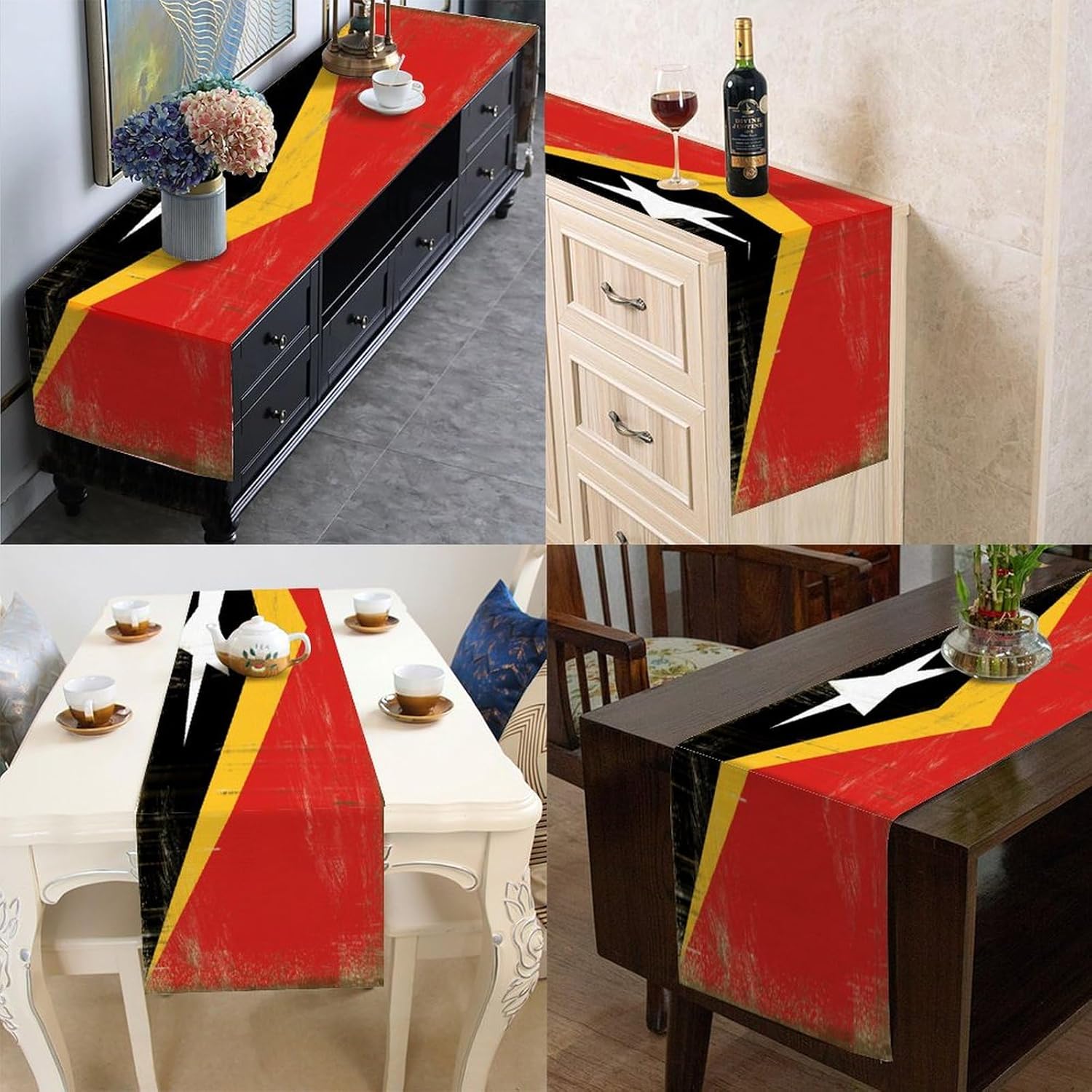 Runner da tavolo in stile vintage con bandiera nazionale di Timor Est, decorazione stagionale per cucina, tavolo da pranzo, interni ed esterni, sala da pranzo, decorazione per feste, 33x91 cm
