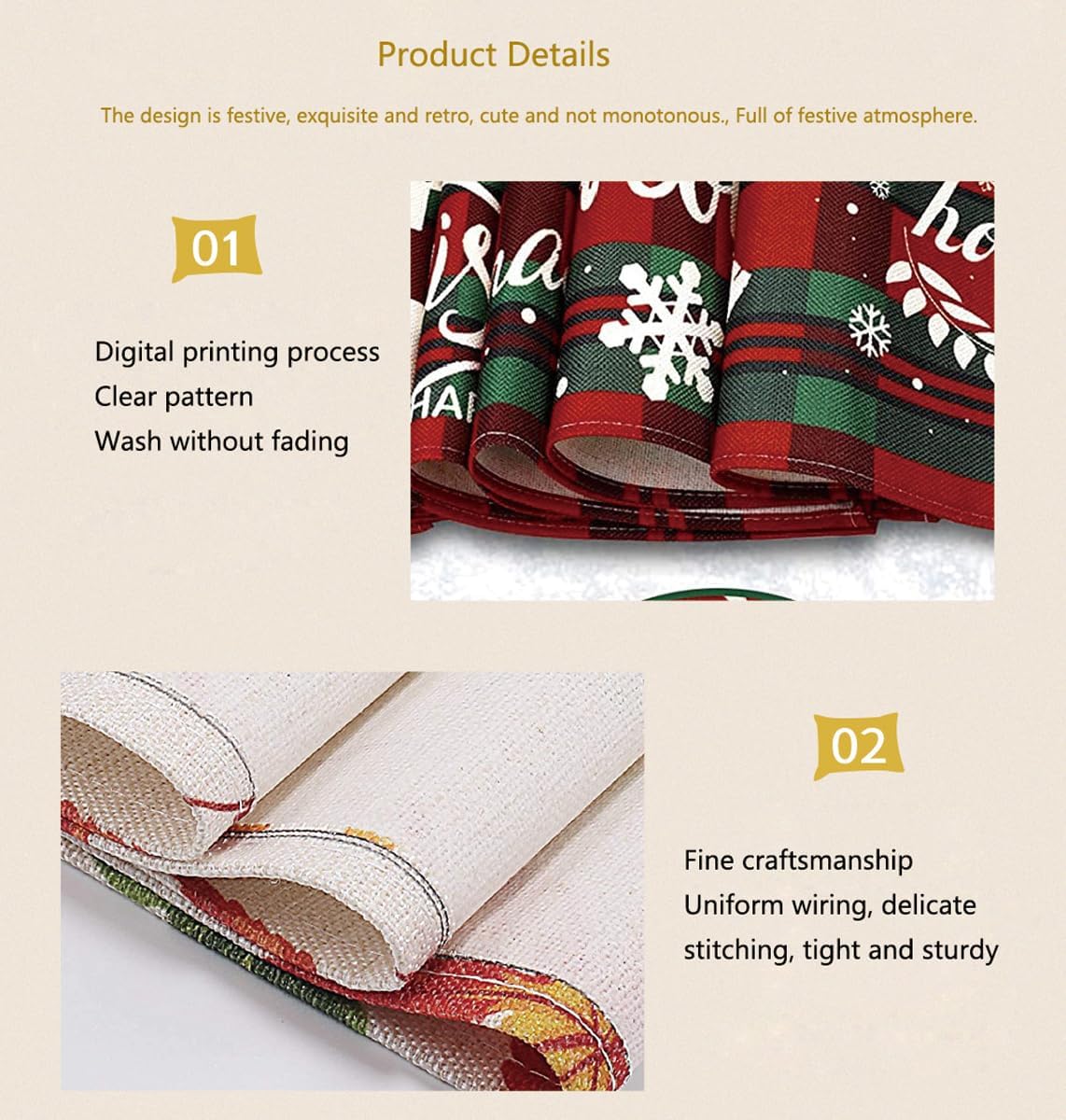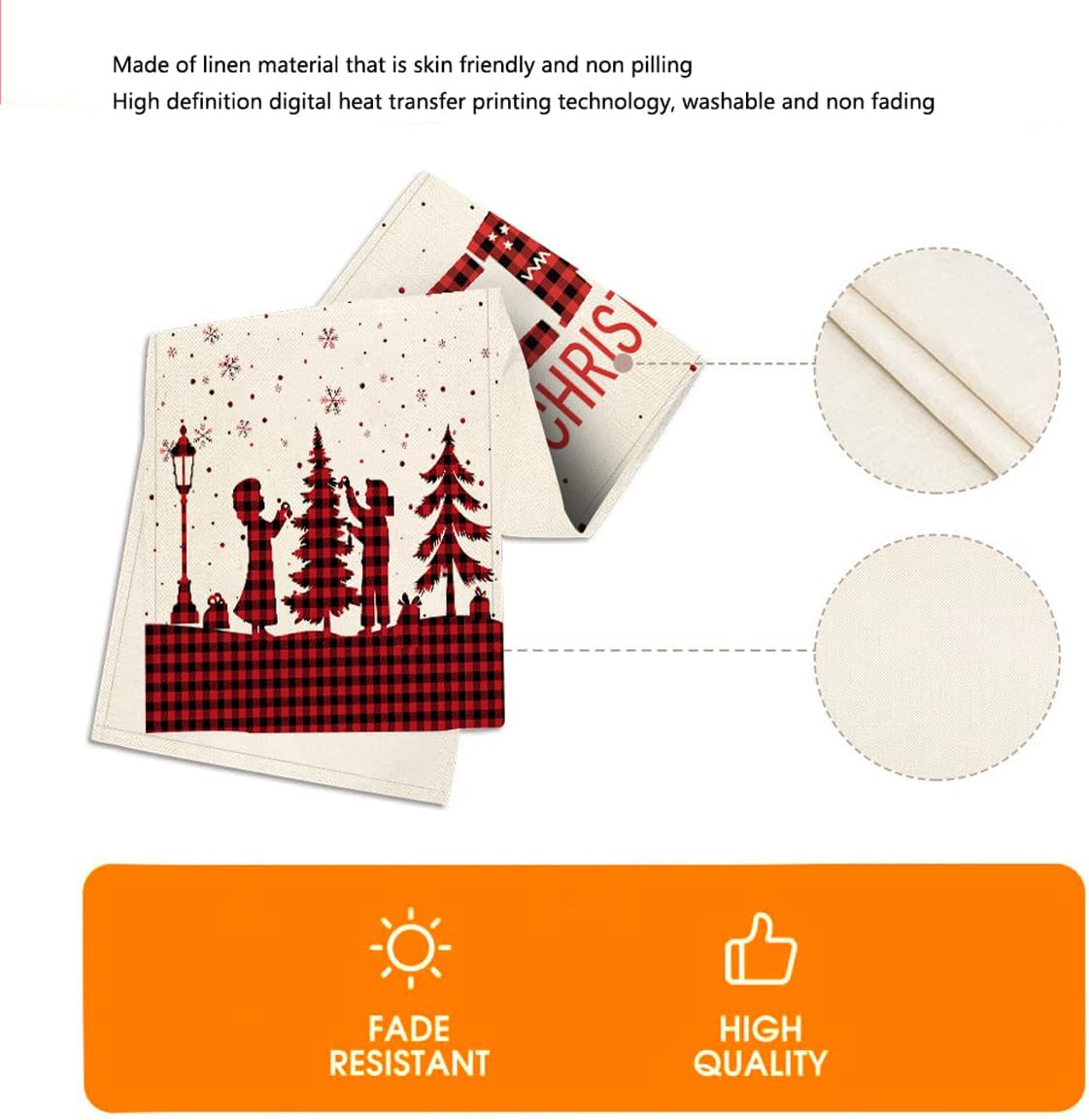 ♥ Materiale di alta qualità: realizzato in una miscela di lino (fibra di poliestere) e tessuto con tecnica jacquard, questo runner da tavola natalizio è resistente e di lunga durata. La consistenza morbida e liscia aggiunge eleganza alla tua tavola garantendo al tempo stesso una facile manutenzione. Basta lavarlo a mano o in lavatrice con ciclo delicato per mantenerlo fresco e vibrante ♥ Decorazione natalizia per la cucina della casa: colori vivaci e stampe con motivi unici ti offrono un'idea creativa e unica per decorare la tua casa. Che tu stia organizzando una cena di Natale o semplicemente desideri portare un tocco di allegria natalizia nella tua casa, questo runner da tavola è un must. ♥ Facile da pulire: lavare in lavatrice il runner da tavolo e adagiarlo ad asciugare. rimane uguale e come nuovo dopo ogni lavaggio. nessun restringimento, nessuno sbiadimento. La tovaglia natalizia è lavabile e riutilizzabile. Liquidi come caffè, succo o vino possono essere rimossi rapidamente con un panno umido o un tovagliolo. ♥ Decorazione natalizia per la cucina e la casa: design della tovaglia natalizia per cene natalizie, feste, ristoranti e caffetterie, riunioni interne ed esterne, vacanze e occasioni speciali. Aggiungi tovaglie squisite alla tua tavola e crea uno stile unico per la tua sala da pranzo ♥ Idea regalo perfetta: stai cercando un regalo di Natale pratico e premuroso? Il runner da tavola per la decorazione della tavola di Natale è una scelta eccellente. Il suo bellissimo design, i materiali di alta qualità e gli usi versatili lo rendono un regalo versatile e senza tempo per amici, familiari o vicini