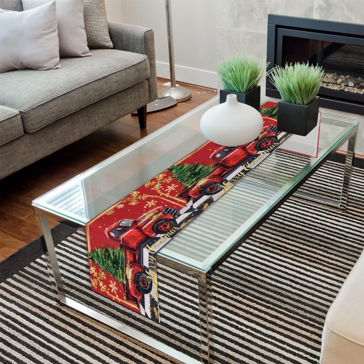 Runner da tavolo vintage con albero di Natale e albero di Natale, 33 x 182 cm, decorazione per tavolo da pranzo per la casa e le feste