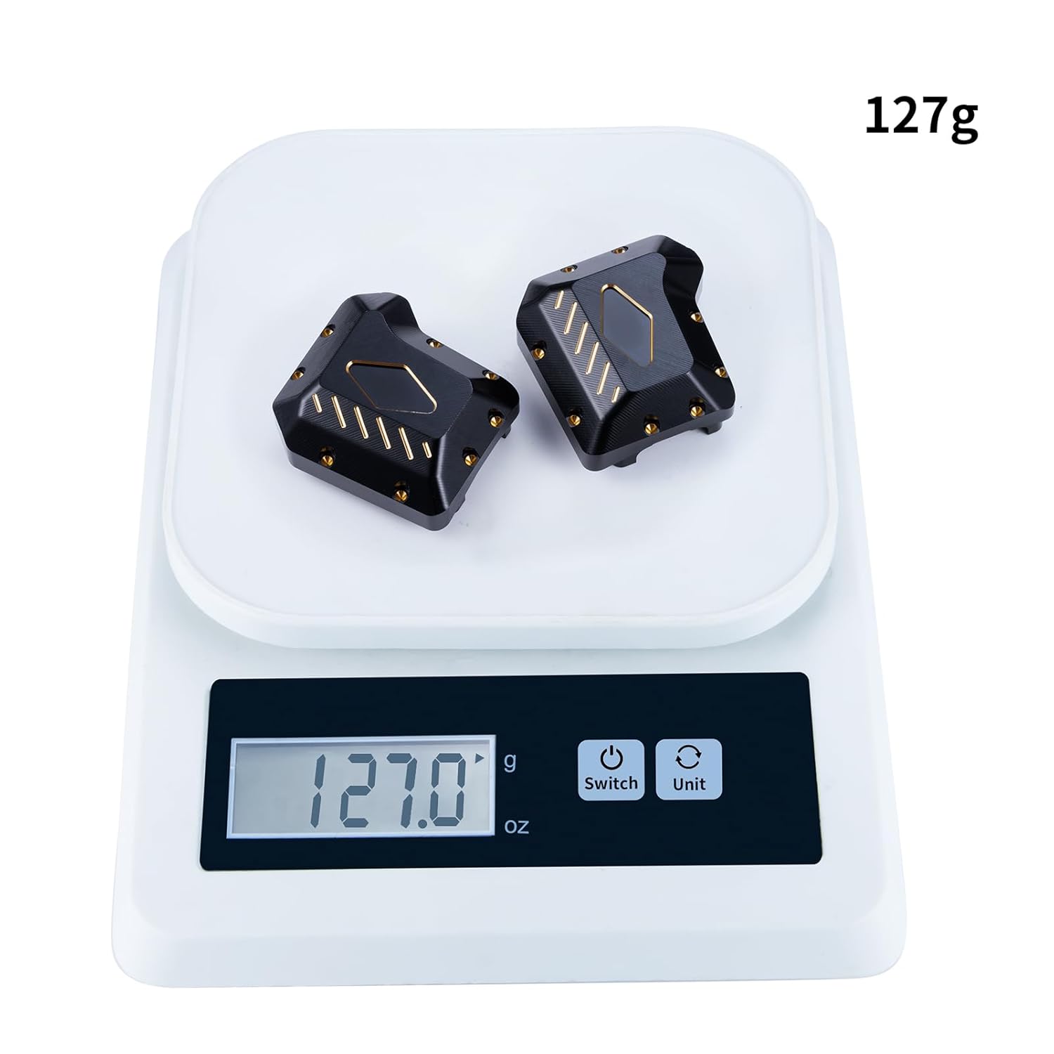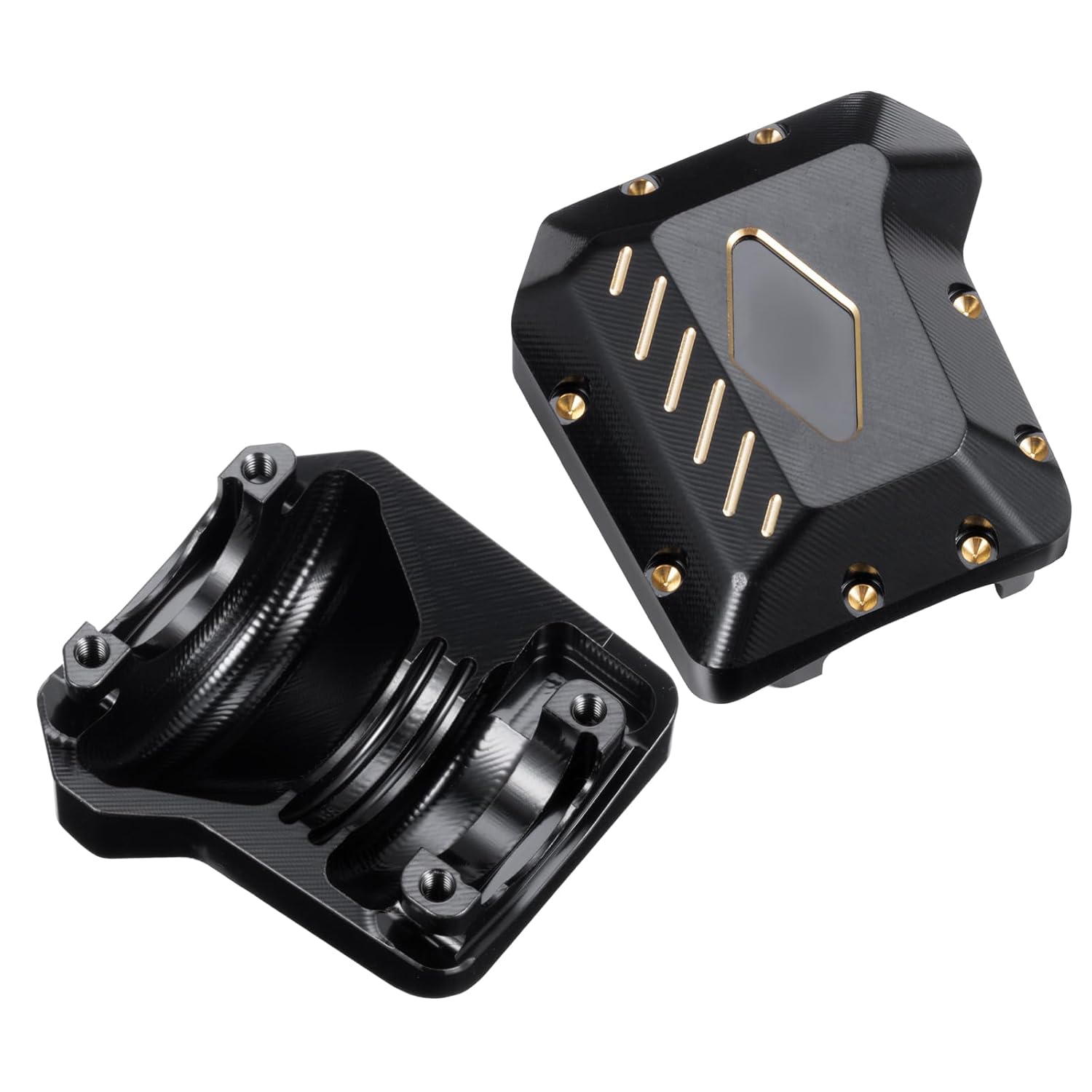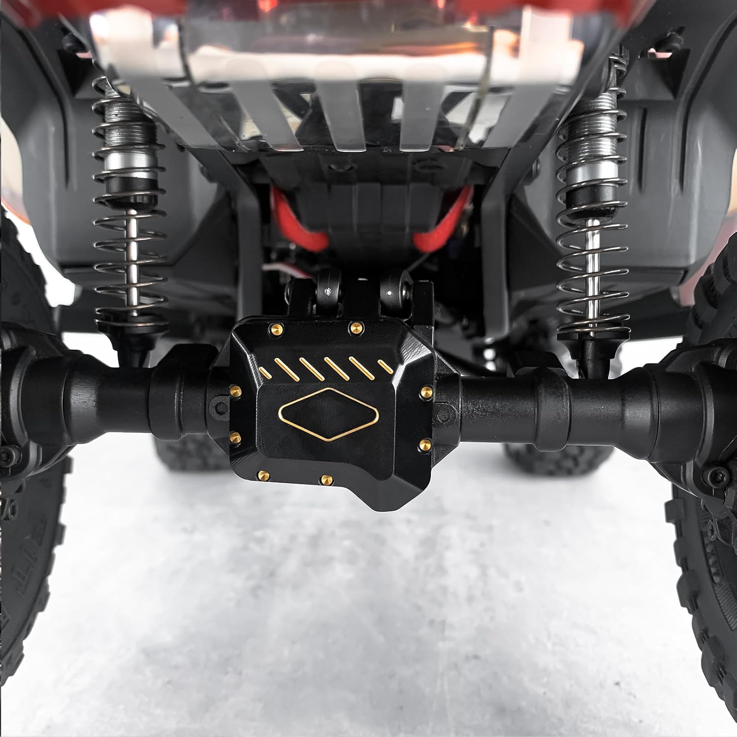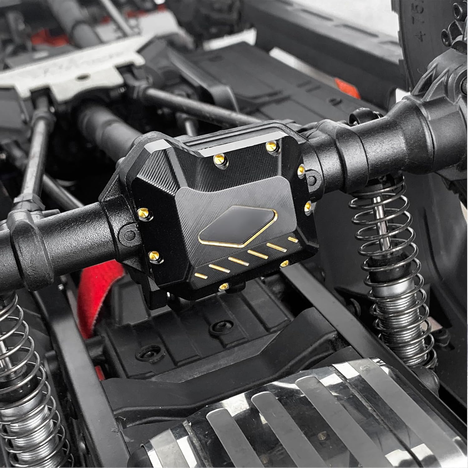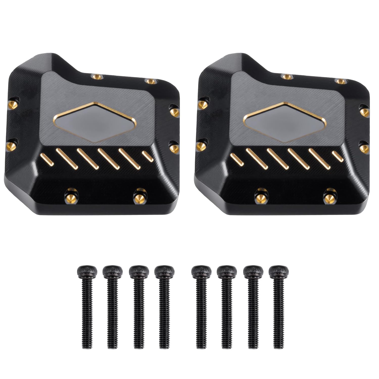 Realizzato in ottone CNC di alta qualità, fresatura CNC ad alta precisione. La confezione include 2 coperture differenziali in ottone e alcune viti facili da installare. Rivestimento nero, previene l'ossidazione, ha un aspetto molto migliore e aggiunge lucentezza. In questo modo si cambia il centro di gravità e garantisce il miglior equilibrio. Adatto per Crawler RC TRX-4 TRX-6 8280 in scala 1:10.