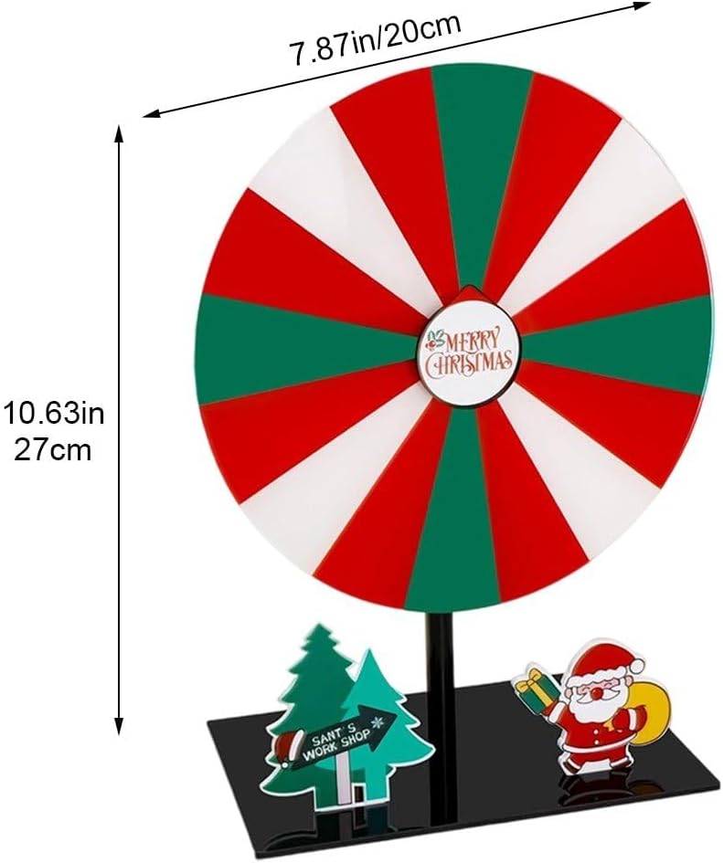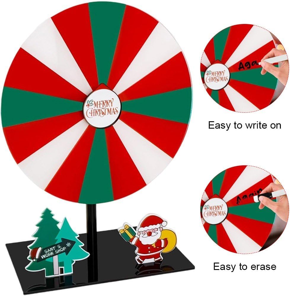Facilità di montaggio: installa rapidamente la tua ruota di Natale con il nostro processo di assemblaggio semplificato. Riducendo i tempi di setup del 90% rispetto alla concorrenza, la nostra ruota ti consente di concentrarti maggiormente sul divertimento e meno sulla preparazione. Si prega di rimuovere la pellicola protettiva prima dell'uso. Intrattenimento natalizio versatile: ravviva le tue celebrazioni con la nostra ruota natalizia da 20 cm. Dotato di 16 scatole colorate, è ideale per giochi, quiz e sorteggi in feste, carnevali e fiere. Leggero e portatile, dona un tocco festoso a qualsiasi evento. Atmosfera festosa istantanea: aggiungi un tocco di fantasia ai tuoi eventi natalizi con la nostra attraente trottola. Ideale per valorizzare i festeggiamenti in occasione di fiere, carnevali, feste e altri eventi, è essenziale per celebrazioni memorabili. Portatile e durevole: questo spinner leggero è progettato per un facile trasporto e dispone di un supporto rimovibile per riporlo in modo compatto. La sua struttura robusta ne garantisce la stabilità, rendendolo ideale per l'uso in classe, nelle feste domestiche e negli eventi promozionali. Personalizzabile e riutilizzabile: adatta la ruota dei premi al tuo evento grazie a 16 posizioni personalizzabili per testo o loghi. La superficie cancellabile a secco semplifica le modifiche e la pulizia, per un inizio pulito ogni volta. Scatena la tua creatività con questo versatile strumento per feste.