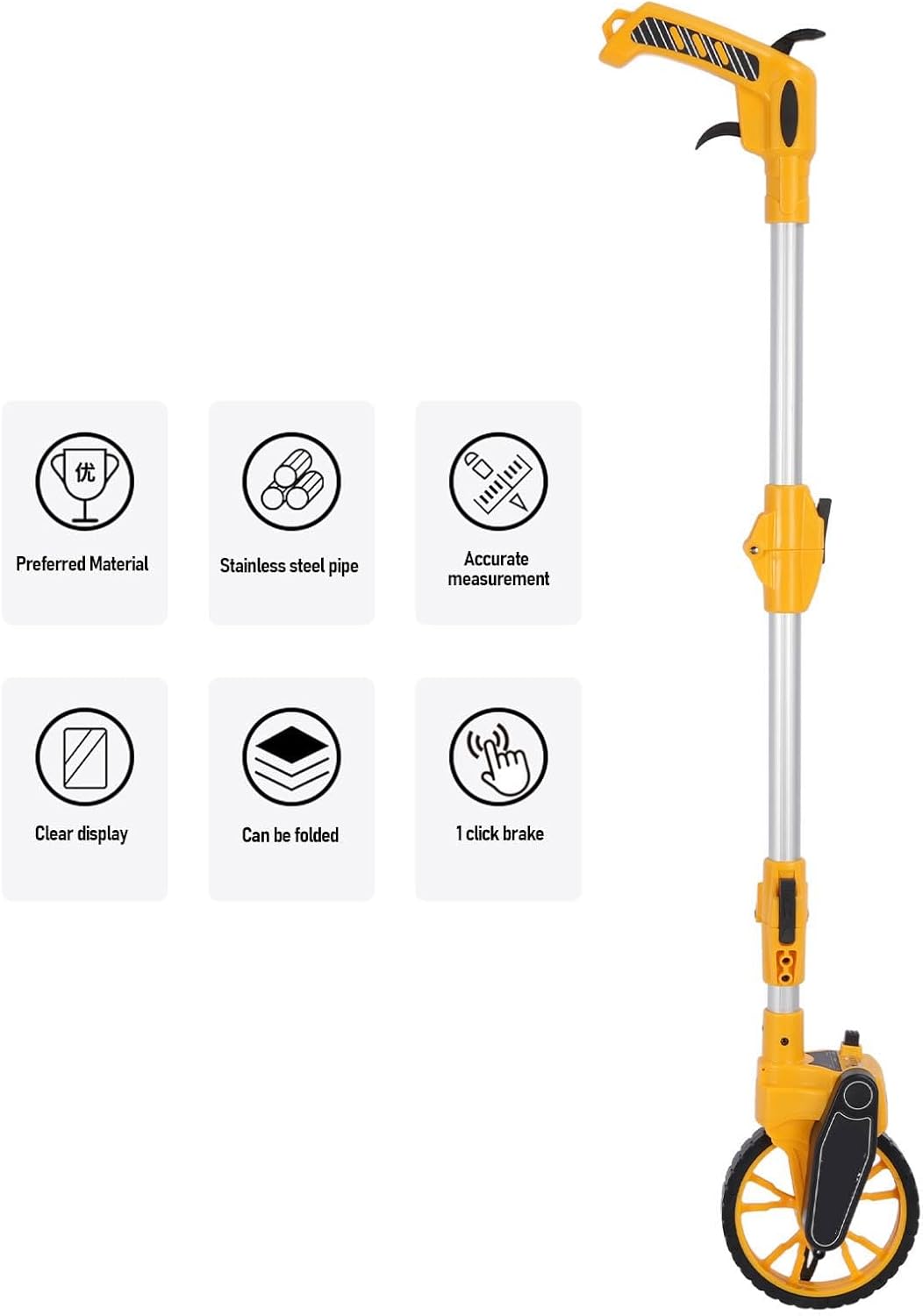 [Capacità di misurazione]: misura facilmente distanze fino a 9999,9 m con precisione, adatto per uso personale e industriale. [Design innovativo]: funzionalità di ripristino one-touch, telaio robusto e pneumatico strutturato per una migliore presa. [Compatto e preciso]: si piega fino a 17 pollici, facile da trasportare, si estende fino a 40 pollici. [Uso multiuso]: adatto a forze dell'ordine, costruttori, paesaggisti e proprietari di case per vari progetti. [Costruzione durevole]: realizzato in gomma, funziona efficacemente su superfici in erba, cemento e ghiaia.