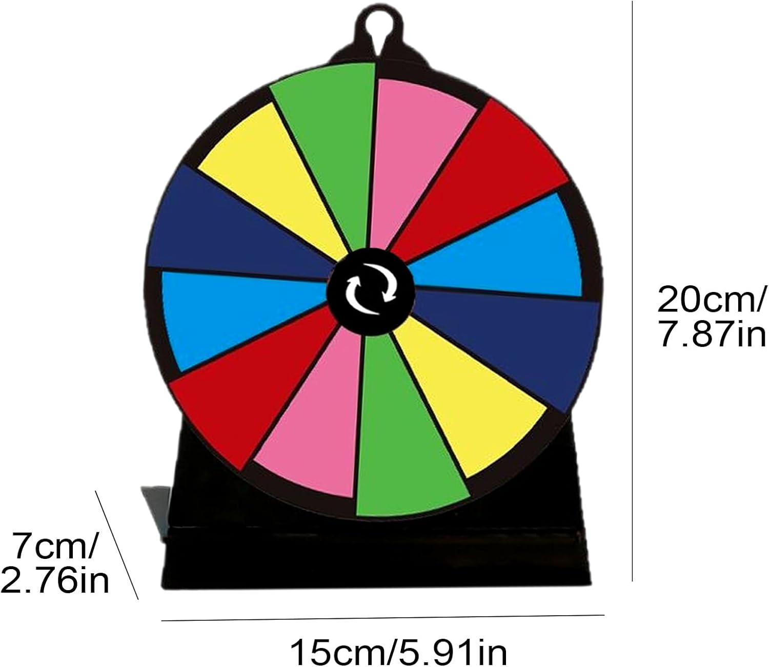 Ruota premio interattiva: fornisce un layout regolabile flessibile con vivaci sezioni color arcobaleno, adattabile a diversi stili di gioco e uso desktop, garantendo che le ricompense possano essere regolate senza sforzo secondo necessità Strumento versatile per eventi: Cattura efficacemente il pubblico durante fiere, carnevali o raccolte fondi creando un'atmosfera memorabile e divertente Esperienza di rotazione ottimizzata: progettata con cuscinetti a rulli e assiali per stabilità e scorrevolezza, con conseguente rotazione più lunga e un'esperienza utente altamente soddisfacente attraverso meccaniche di qualità Stabilità robusta: progettata per la stabilità con una base robusta, questa ruota premio spinner garantisce un uso a lungo termine offrendo allo stesso tempo una portabilità versatile per il posizionamento piatto del tavolo e un trasporto senza sforzo Regalo per le vacanze: porta sorrisi alla tua famiglia, amante o amico per compleanni, vacanze o Natale presentando questo spinner creativo per ruota premio che trasmette premura e affetto