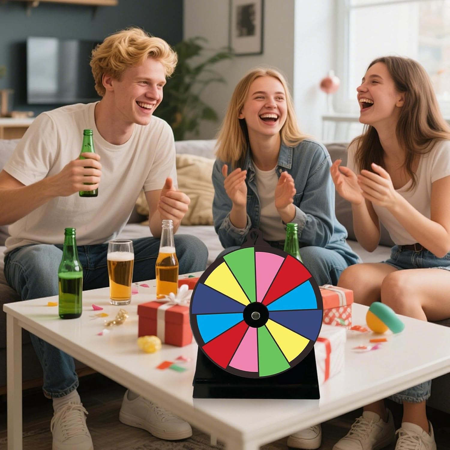 Dynamic Game Spinner: fornisce una configurazione regolabile flessibile con accattivanti sezioni a forma di ventaglio arcobaleno, ideale per vari formati di gioco e progettato per facili regolazioni delle ricompense su uno strumento desktop Attrazione dinamica della folla: adatto per fiere, carnevali ed eventi di raccolta fondi, questo filatore della ruota del premio attira l'attenzione e crea un'atmosfera divertente senza sforzo Esperienza di rotazione ottimizzata: progettata con cuscinetti a rulli e assiali per stabilità e scorrevolezza, con conseguente rotazione più lunga e un'esperienza utente altamente soddisfacente attraverso meccaniche di qualità Design portatile e robusto: ottimizzato per un posizionamento stabile su qualsiasi superficie piana, la base robusta garantisce durata e si adatta facilmente alle esigenze di spinner portatili o fissi Regalo divertente: Esprimi amore e cura con questa ruota premi, ideale per compleanni, festival, Natale e regali di anno per familiari, amanti o amici, creando momenti gioiosi naturalmente