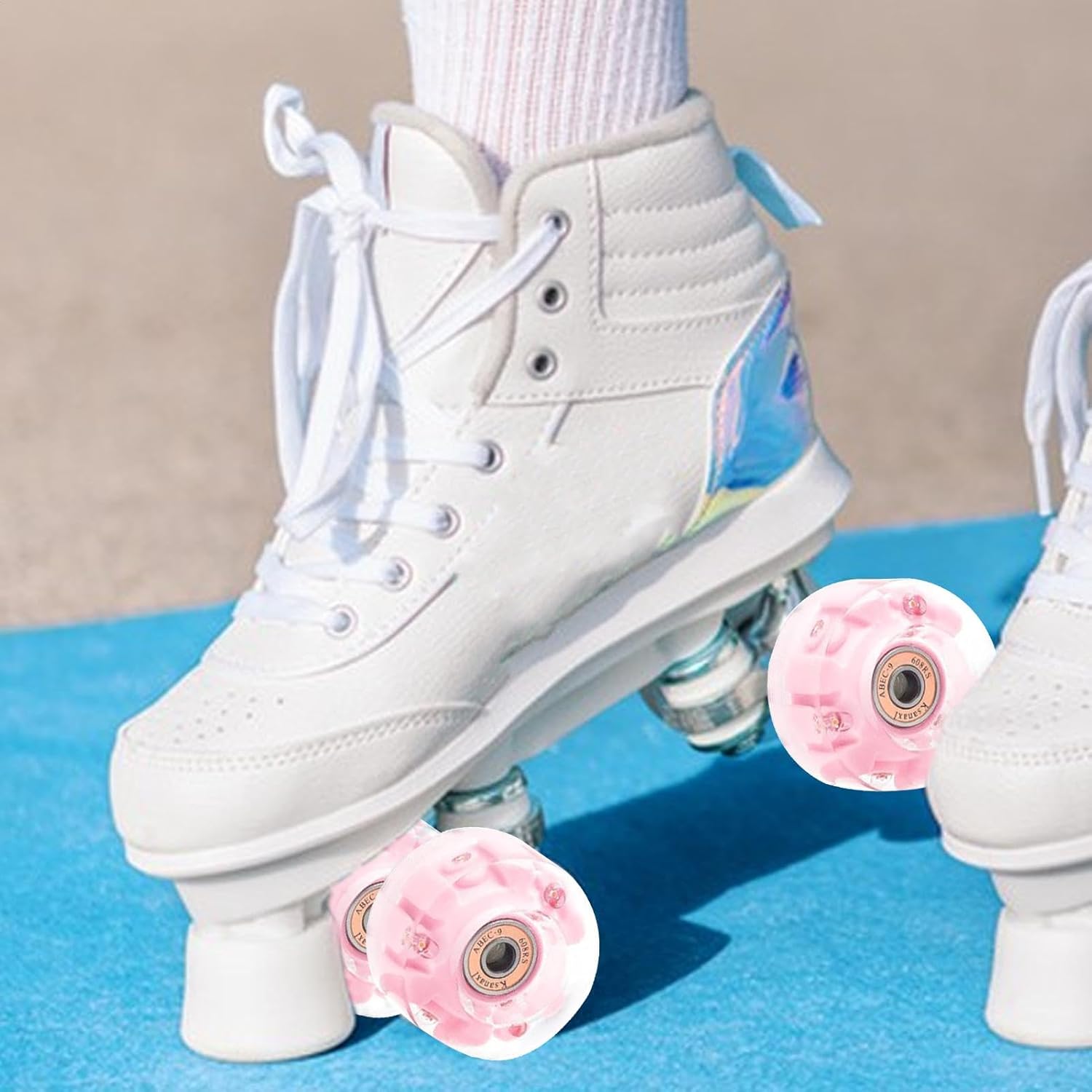 Ottime prestazioni: realizzate con materiale PU resistente all'usura e design a scorrimento fluido, queste ruote per pattini a rotelle quad offrono prestazioni senza pari, garantendo un'esperienza di pattinaggio senza soluzione di continuità e senza sforzo per coloro che cercano abilità di scivolamento di prim'ordine Veloce e fluido: goditi una fantastica esperienza di scivolamento con le nostre ruote per pattini a rotelle quad dotate di cuscinetti silenziosi ad alta velocità 608RS. Scivola senza sforzo e silenziosamente, grazie ai cuscinetti rotanti ad alta velocità per un aumento delle prestazioni senza soluzione di continuità Caratteristica innovativa: utilizzando l'innovativa tecnologia di emissione di luce con nucleo magnetico, la copertura protettiva con nucleo magnetico dal design unico delle nostre ruote per pattini a rotelle Quad interagisce con la bobina di luce LED per un'illuminazione super brillante e colori vivaci Migliora la stabilità e il comfort durante lo scivolamento: solleva il tuo gioco di pattinaggio con le nostre ruote per pattini a rotelle Quad. Il nostro design completo che assorbe gli urti migliora la stabilità e il comfort durante lo scivolamento, assorbe efficacemente gli urti e mantiene una buona presa ed equilibrio su qualsiasi superficie: rendendo la tua esperienza di pattinaggio e senza interruzioni Ampio utilizzo: per gli appassionati di pattini a doppia , le nostre eccellenti ruote per pattini a rotelle offrono prestazioni affidabili e un design multiuso, garantendo una guida e robusta. Perfetto per il pattinaggio su quad di velocità indoor con un'ampia gamma di applicazioni