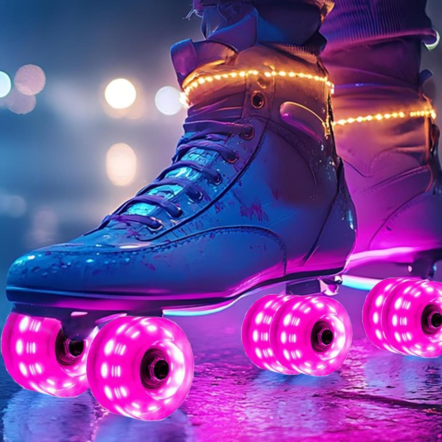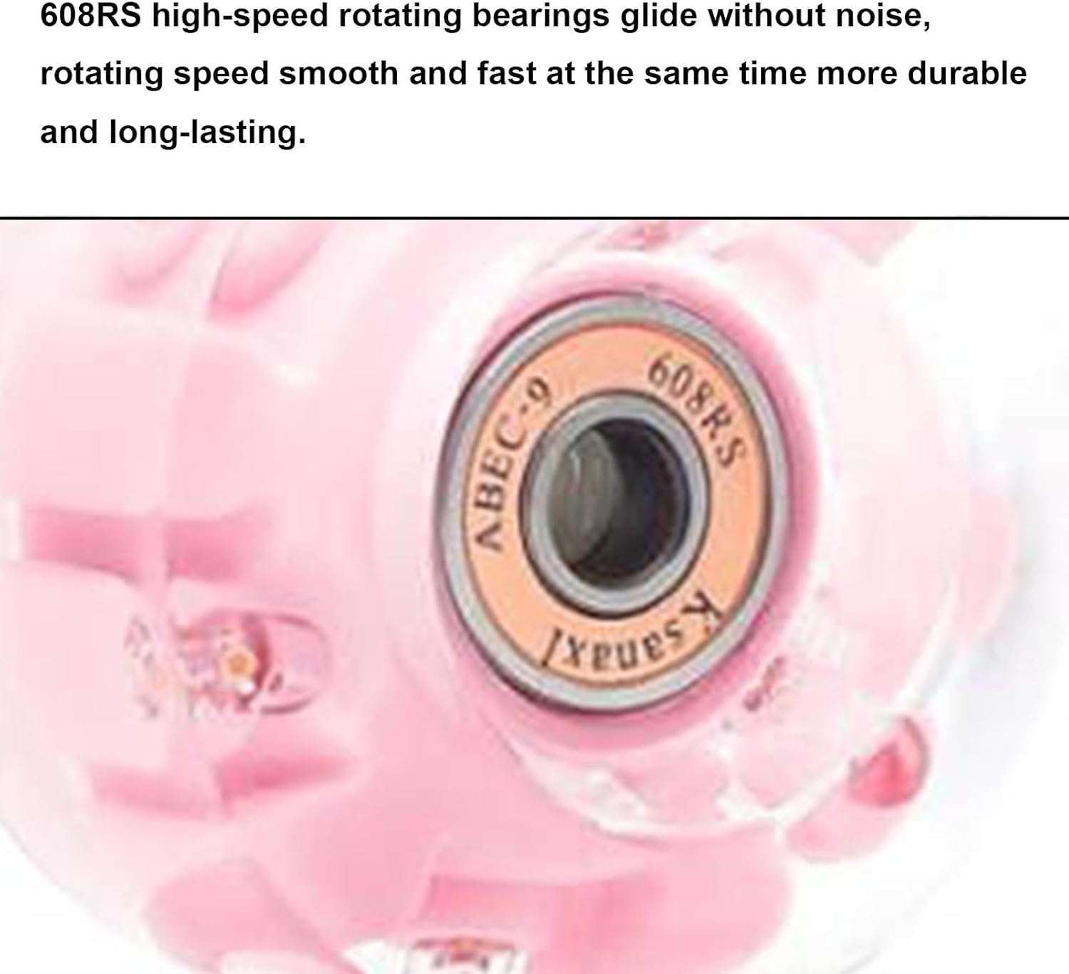 Effetti luminosi: le ruote da skate illuminate sono dotate di luci LED integrate che si illuminano ad ogni rotolamento, creando un effetto visivo abbagliante mentre pattini. Perfette per aggiungere un tocco divertente ed elegante al tuo pattinaggio, queste ruote si distingueranno sicuramente sulla pista di pattinaggio o per le strade. Elevata elasticità per un rotolamento fluido: progettate con elevata elasticità, queste ruote per pattini a rotelle offrono una guida fluida e reattiva. L'elasticità migliora l'assorbimento degli urti, offrendo un'esperienza di pattinaggio più confortevole e riducendo l'impatto su superfici ruvide. Durata resistente all'usura: realizzate con materiali di alta qualità, queste ruote sostitutive per pattini resistenti all'usura sono progettate per resistere alle esigenze di un uso frequente. La loro struttura resistente garantisce prestazioni durature e riduce la necessità di frequenti sostituzioni. Perfette per il pattinaggio su doppia fila: progettate specificatamente per il pattinaggio su doppia fila, queste ruote sono compatibili con i pattini a rotelle tradizionali. Offrono presa e stabilità eccellenti, migliorando il controllo e la manovrabilità durante la sessione di pattinaggio. Uso versatile: adatte sia per il pattinaggio indoor che outdoor, queste ruote per pattini in linea possono gestire una varietà di superfici, dai pavimenti lisci delle piste a pavimentazioni irregolari. Il loro design versatile li rende ideali per il pattinaggio ricreativo, fitness e artistico.