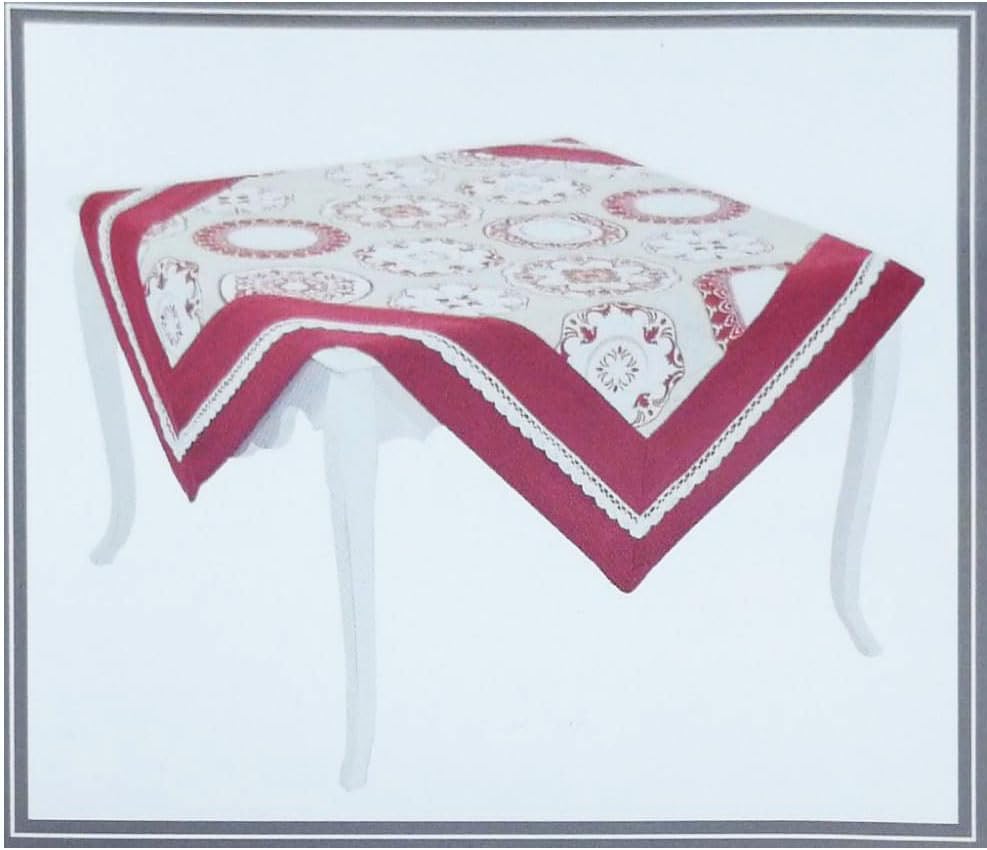 Centro Centrotavola Copritavola BALZA Merletto PREZIOSA AMBRA Shabby 100x100cm-Rosso
