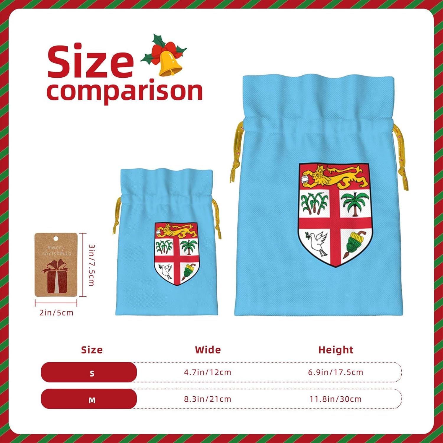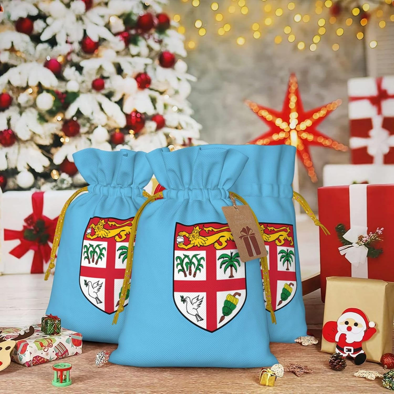 SACCHETTI REGALO IN TESSUTO: Realizzati in poliestere e lino di alta qualità, questi sacchetti per bomboniere S offrono una consistenza naturale, un comfort leggero e un uso duraturo, perfetti per essere regalati ripetutamente. Set con etichetta: sacchetti per regali di Natale di due dimensioni (grande: 8,3 x 11,8 pollici, piccolo: 4,7 x 6,9 pollici) con un'etichetta in carta kraft attaccata, che migliora il fascino rustico e semplifica la personalizzazione e l'etichettatura dei tuoi regali. COULISSE A DOPPIO LATO: Il nostro sacchetto regalo natalizio con bandiera delle Fiji stampato con coulisse consente un facile accesso e una chiusura sicura, mantenendo i tuoi regali, caramelle, biscotti o piccoli oggetti al sicuro all'interno senza alcuna preoccupazione. Sacchetti regalo in tessuto stampato con bandiera delle Fiji: sacchetti regalo natalizi con coulisse, sacchetti in mussola di tela per feste di matrimonio, Ringraziamento, feste, progetti di arte e artigianato, regali, snack e gioielli, Natale sono versatili accessori per decorare e confezionare qualsiasi celebrazione. Borsa regalo di Natale S: queste borse regalo in tessuto riutilizzabili presentano affascinanti stampe della bandiera delle Fiji, aggiungendo un tocco festoso e carino ai tuoi regali per le vacanze, i compleanni o le feste.