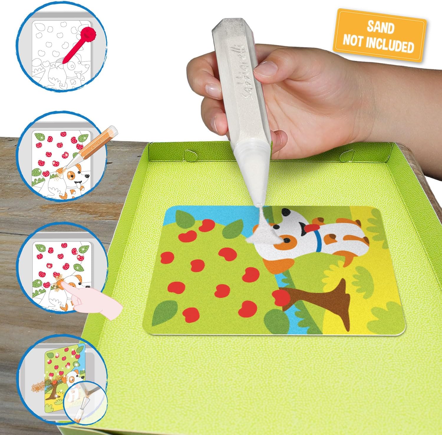 ☀️ MULTIPACK ESTATE – 10 fogli adesivi A5 (15x20 cm) con 20 disegni pretagliati ispirati all’estate, pronti da colorare con la sabbia Sabbiarelli (non inclusa). 🎨 LABORATORI EDUCATIVI – Ideale per attività di gruppo fino a 20 bambini: ogni disegno diventa un quadretto personalizzato da conservare o regalare. ✍️ SVILUPPO CREATIVO – Stimola manualità fine, concentrazione, pregrafismo e libera espressione dei più piccoli (ispirato a principi Montessori). 🏫 UTILIZZO SCOLASTICO – Perfetto per scuole, centri estivi, ludoteche e attività didattiche; può essere usato anche come ricarica dello School Kit Sabbiarelli. 🌍 SICURO E MADE IN ITALY – Disegni pretagliati su cartoncino adesivo di alta qualità, 100% Made in Italy; pronti all’uso senza forbici né colla.
