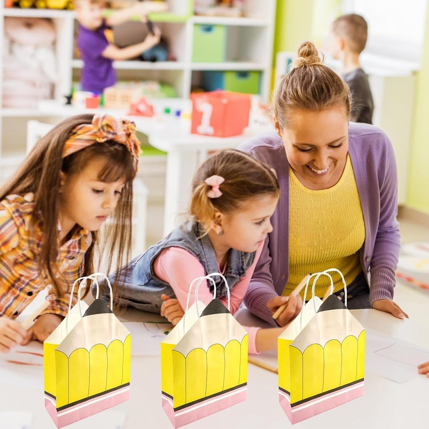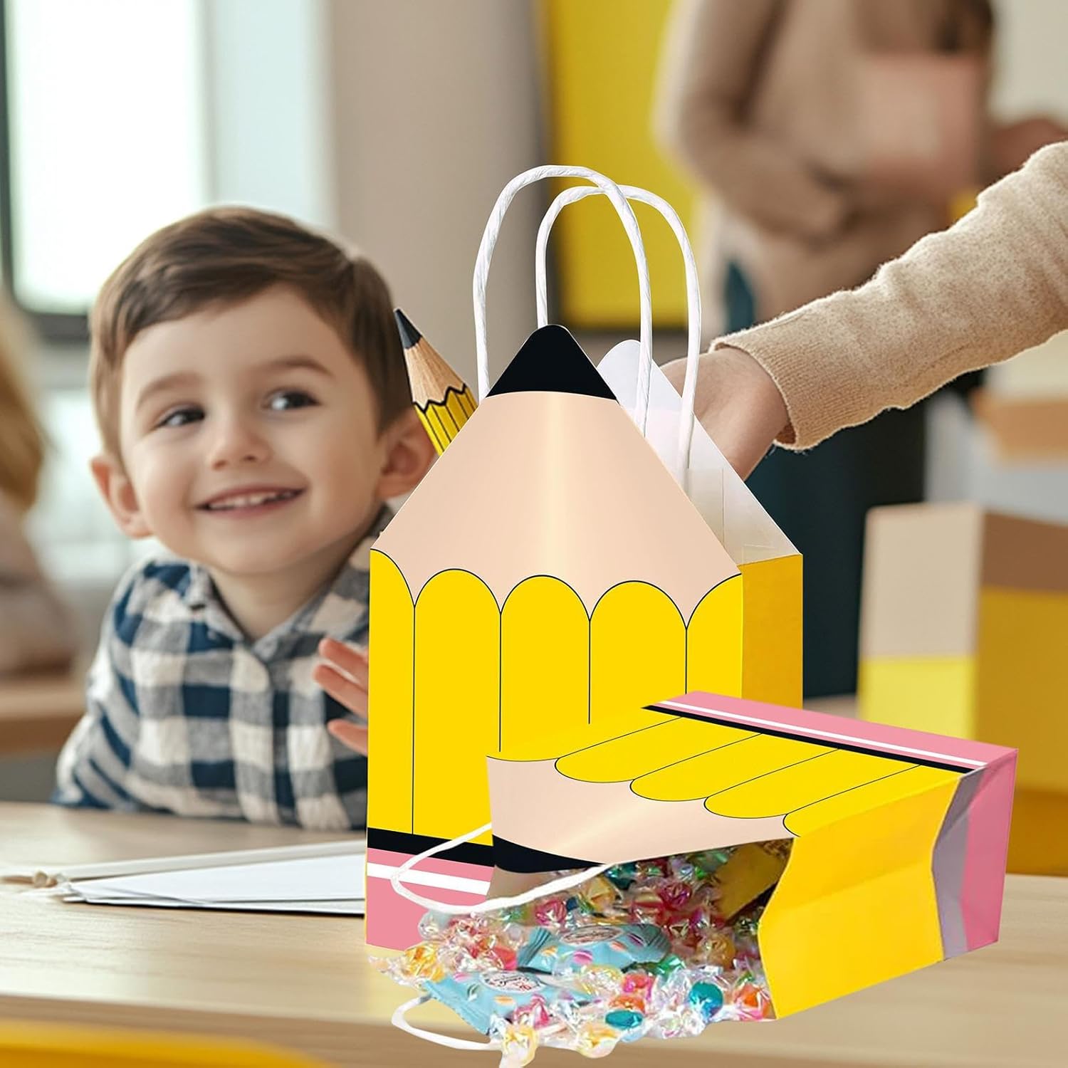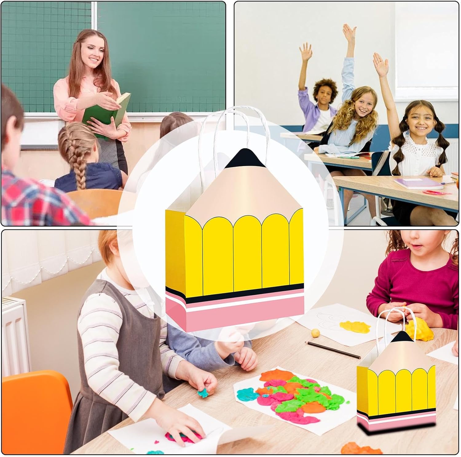 Occasioni regalo adatte: con una dimensione ideale per contenere vari regali, questi sacchetti di carta sono progettati per soddisfare molteplici usi, un abbinamento perfetto per tutte le celebrazioni di riconoscimento degli insegnanti. Scelta funzionale ed ecologica: perfetti per le attività in classe o per le celebrazioni della Giornata degli insegnanti, questi sacchetti di carta garantiscono un uso prolungato avvantaggiando sia i donatori che i destinatari con il loro design adattabile e il fascino ecologico. Abbinamento regalo perfetto: questi sacchetti di carta dalla forma deliziosa come una matita gialla sono adatti per gli eventi del Giorno degli insegnanti, aggiungendo fascino visivo e creando ricordi con la loro presentazione creativa Celebrazione dell'insegnante: questo pacchetto di 12 sacchetti regalo a forma di matita è progettato per la Settimana dell'Apprezzamento, facilitando la distribuzione di regali pieni di gratitudine per mostrare il tuo apprezzamento per gli educatori in modo creativo e memorabile. Design accurato e pratico: il loro materiale cartaceo resistente e durevole garantisce una protezione ottimale dei tuoi regali, rendendo questi astucci la scelta preferita per gli educatori che desiderano esprimere il loro apprezzamento in modo raffinato