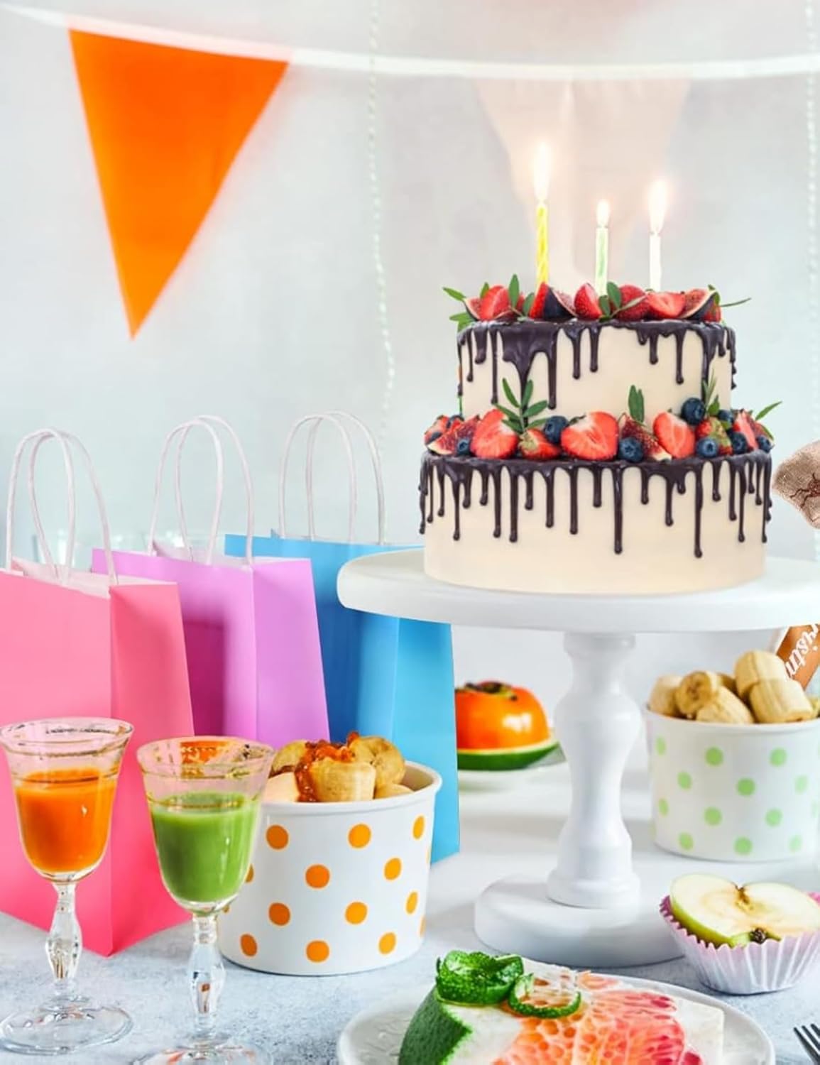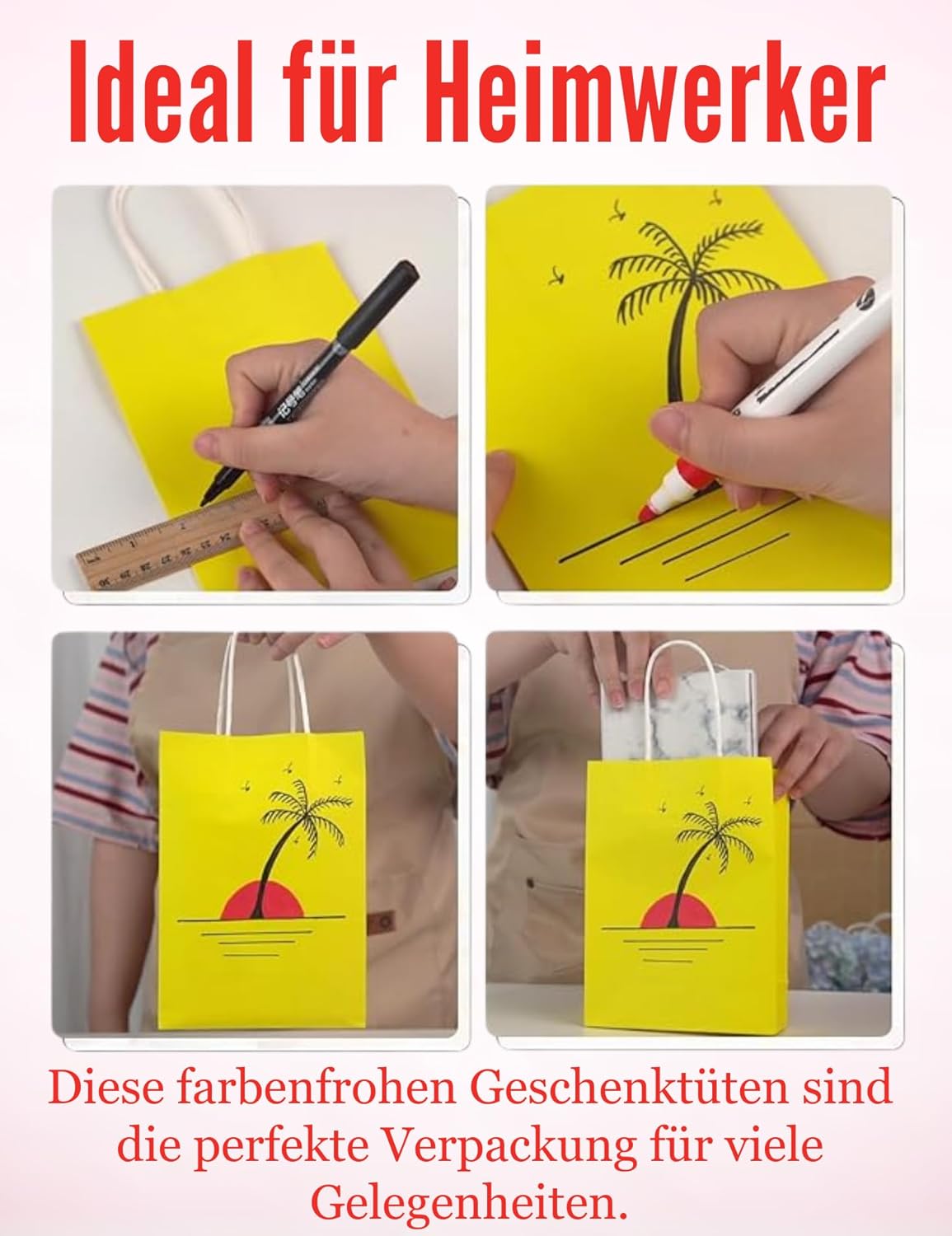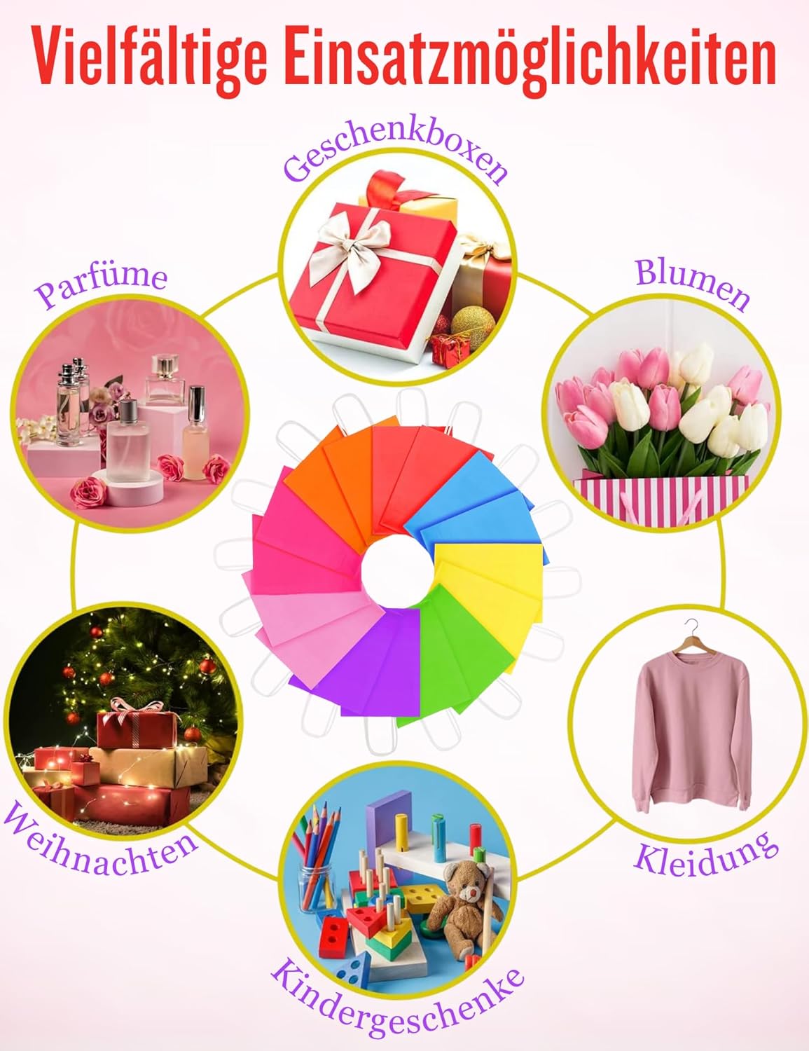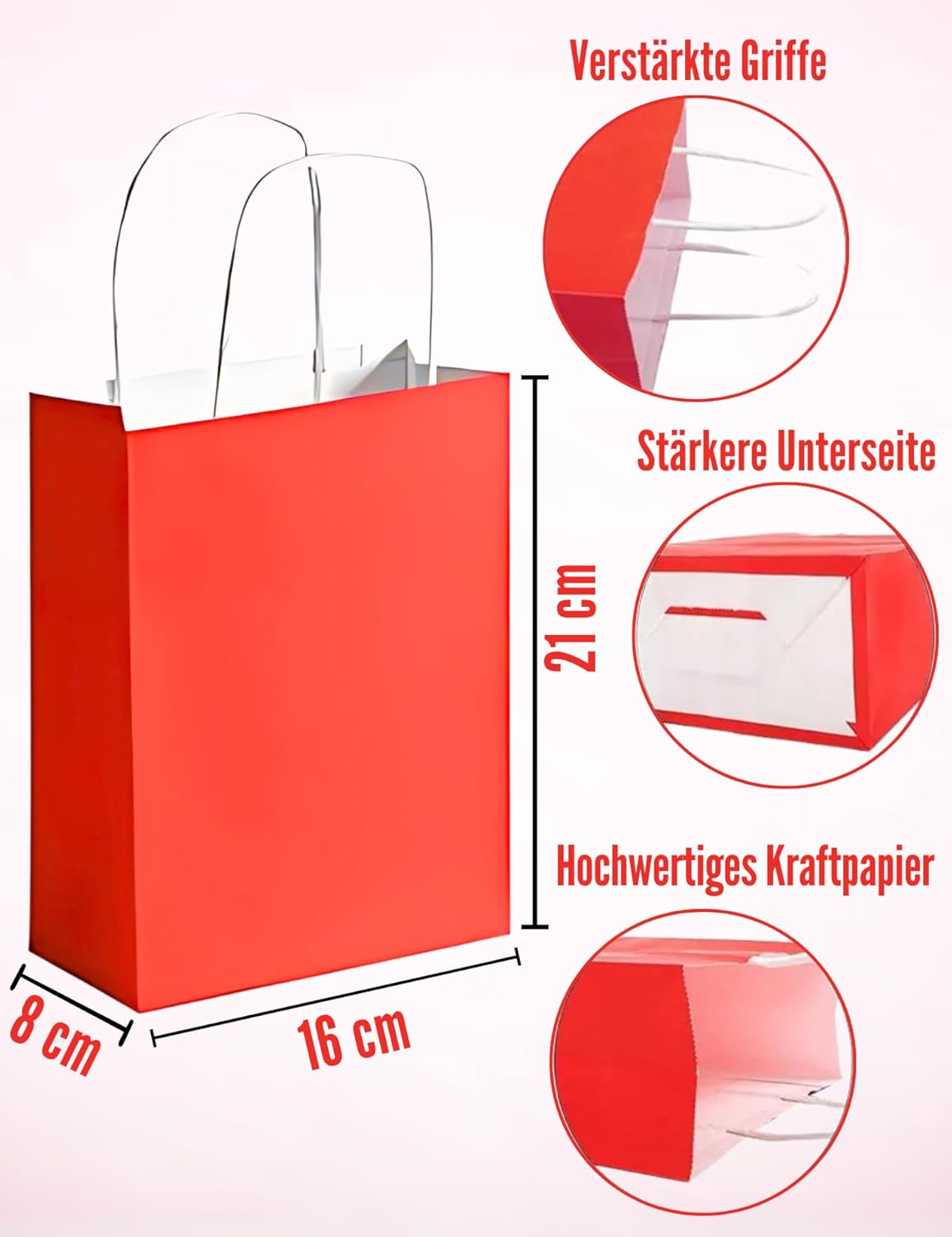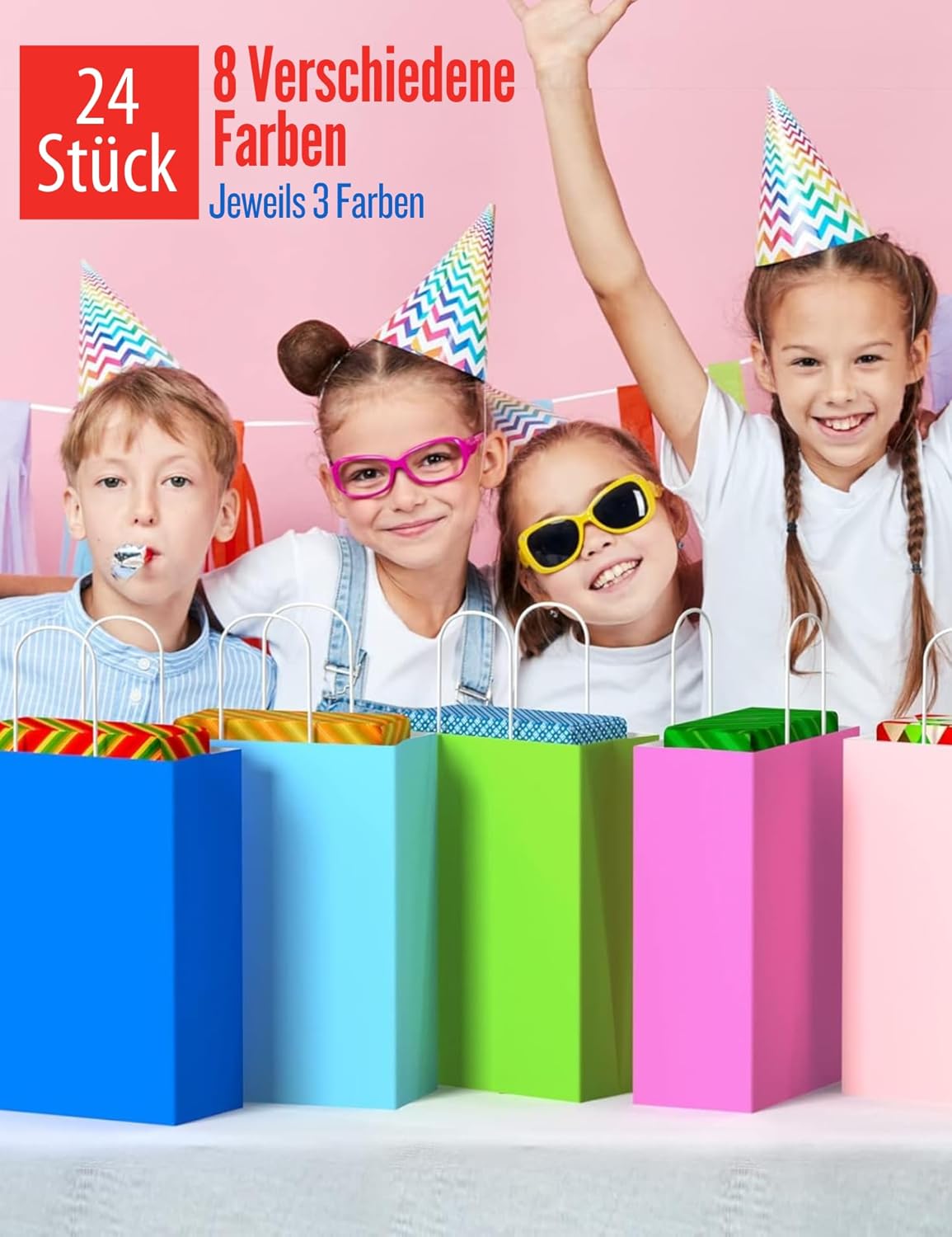 Uso versatile: i sacchetti regalo colorati sono adatti per caramelle, biscotti, snack, giocattoli o regali per feste e possono essere utilizzati nella vita quotidiana e nelle celebrazioni. Dimensioni pratiche: con le dimensioni di 21 x 6 x 8 cm (esclusa l'altezza del manico) c'è spazio per molti regali più piccoli e le borse sono facili da trasportare. Materiale durevole: grazie alla robusta carta kraft da 120 g/m² e ai manici attorcigliati, i sacchetti resistono molto e possono essere utilizzati più volte. Ampia gamma di colori: il set contiene 6 sacchetti ciascuno in rosa, rosso, blu, viola, verde e giallo per confezioni regalo creative in diverse combinazioni di colori. Conservazione salvaspazio: grazie al design pieghevole, le borse occupano poco spazio e sono facili da trasportare.