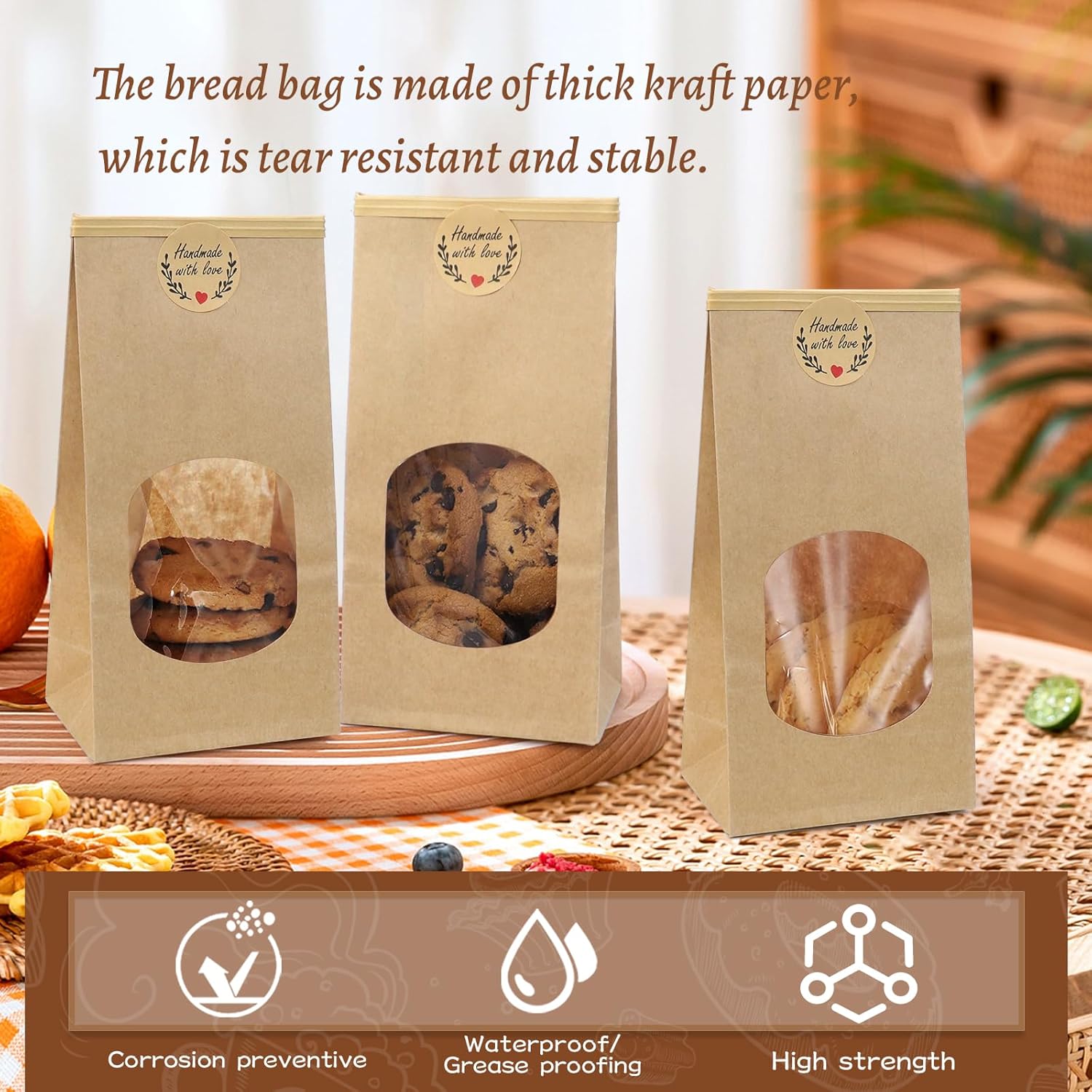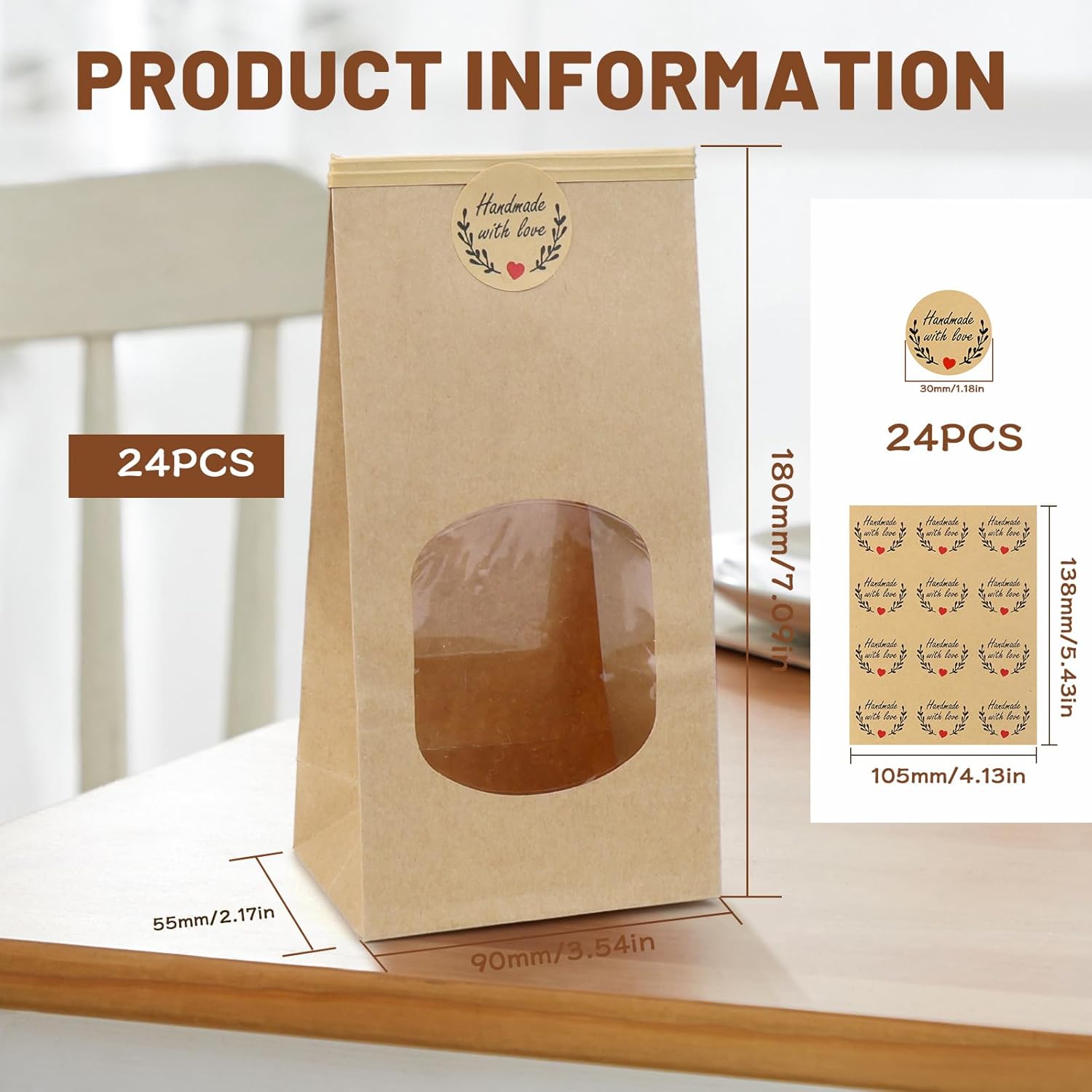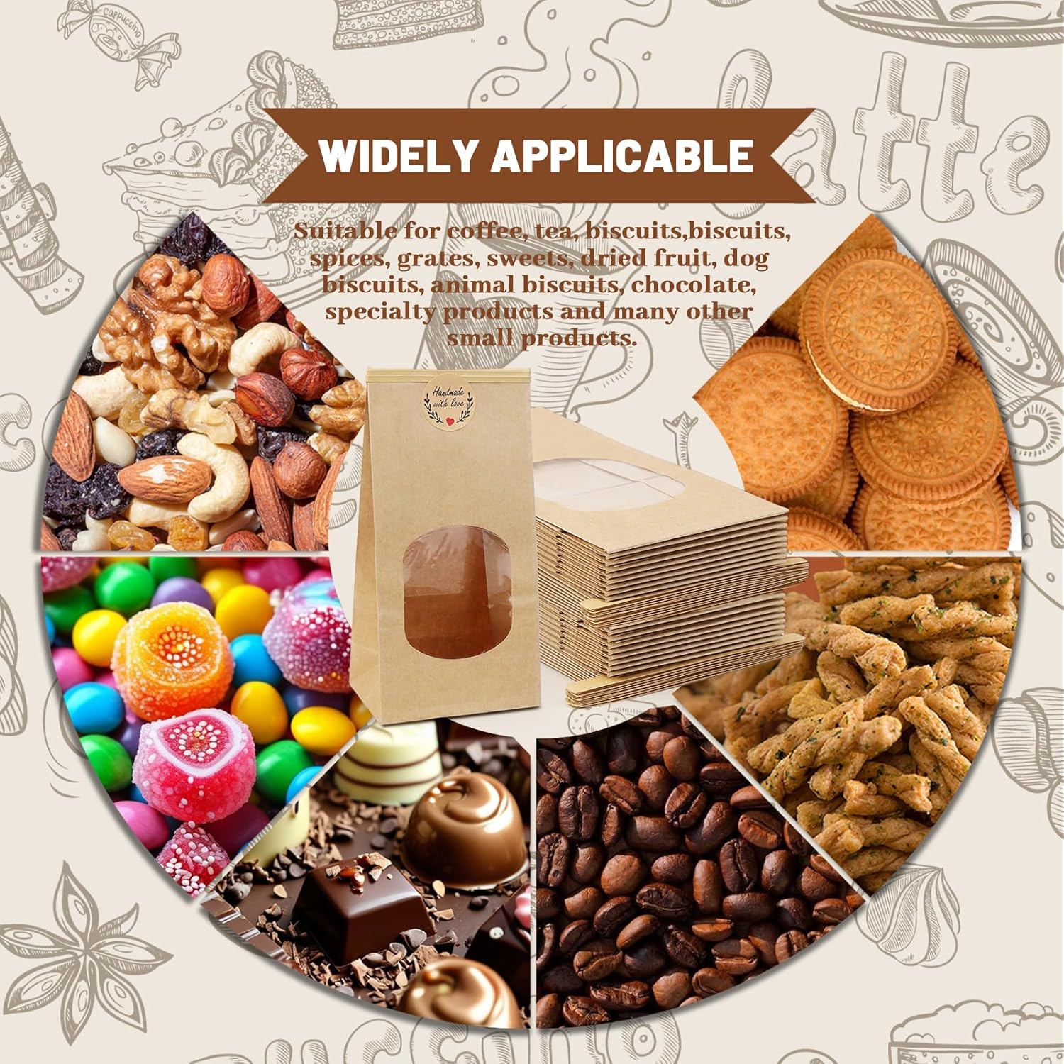 【MATERIALE DI ALTA QUALITÀ】 Le borse sono realizzate in carta kraft spessa, resistente agli strappi e robusta. La lavorazione accurata e la base stabile assicurano che le borse possano stare in piedi senza ribaltarsi. 【DIMENSIONE DEI SACCHETTI】 La dimensione dei sacchetti di carta con finestra è 9x5,5x18 cm. Il colore dei sacchetti di carta kraft con finestra di visualizzazione è marrone. Puoi mettere tutti i tipi di frutta secca, chicchi di caffè, foglie di tè, ecc. in questi sacchetti di carta kraft con finestra. 【ADATTO AL CIBO】 Ideale per caffè, tè, biscotti, biscotti, spezie, cibi macinati finemente, dolci, frutta secca, biscotti per cani, dolcetti per animali, cioccolatini, specialità da asporto e molti altri piccoli prodotti. Packaging unico per i tuoi regali fatti in casa. 【PRATICA CHIUSURA E DECORAZIONE】Ogni borsa è dotata di un pratico filo di chiusura che può essere facilmente piegato e chiuso per preservarne la freschezza. Riceverai anche 24 adesivi “Fatti a mano” per personalizzare le tue borse e aggiungere un tocco personale. 【REGALO SPECIALE】 Il sacchetto di carta kraft marrone con finestra può essere utilizzato come regalo speciale per genitori, amanti e amici. I sacchetti di carta Kraft possono essere utilizzati anche come confezioni regalo per Natale, Halloween, festa della mamma, Pasqua, feste, compleanni, matrimoni e altro ancora.