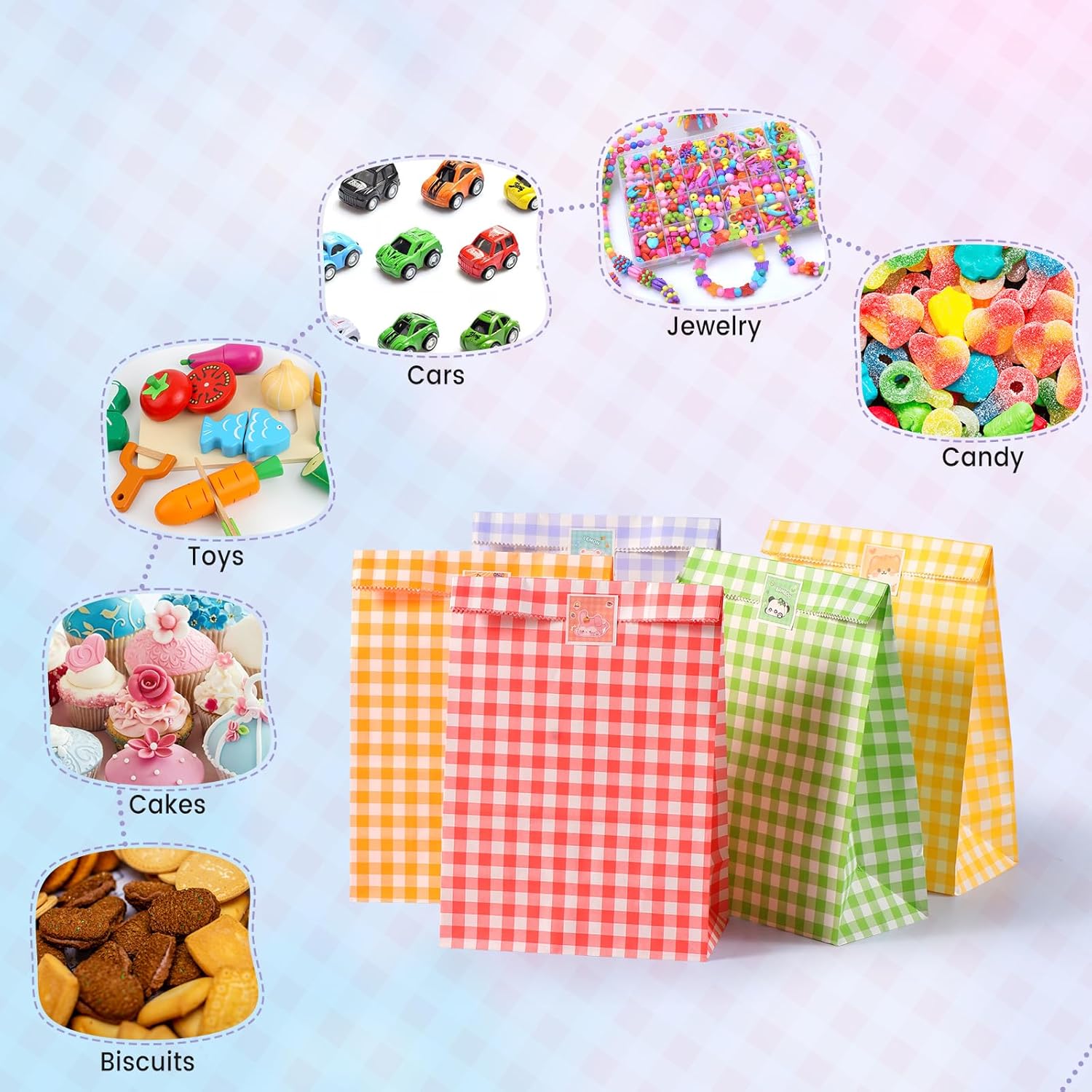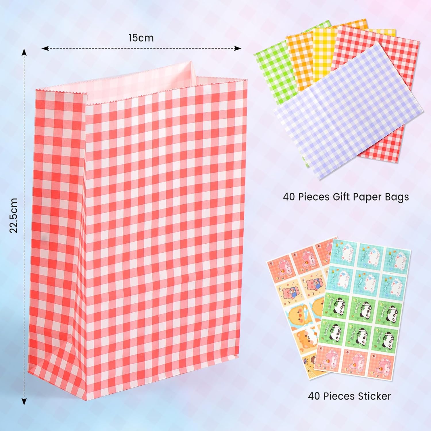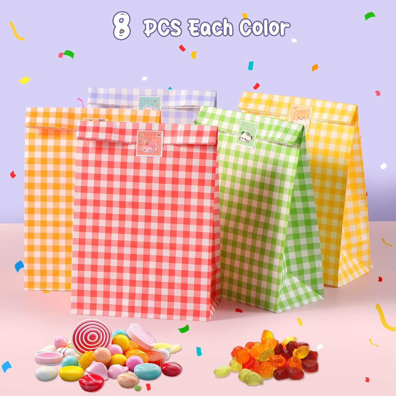 Materiale: i sacchetti regalo sono robusti e durevoli e non facili da strappare. Sono facili da piegare e riporre in modo da poter essere utilizzati più volte. I sacchetti regalo colorati sono progettati con un fondo piatto quindi sono stabili e facili da usare. DIMENSIONE IDEALE: riceverai 40 sacchetti regalo arcobaleno in 5 colori, 8 sacchetti per colore, perfetti per piccoli regali o oggetti. Sono inoltre presenti 40 adesivi autoadesivi colorati che facilitano la chiusura delle borse e rendono l'imballaggio semplice ed elegante. Design carino e colorato: questi sacchetti regalo sono perfetti per caramelle e cioccolato alle feste di compleanno. Sono spaziosi, colorati e ben fatti: i bambini li adoreranno. Design creativo fai-da-te: questi sacchetti di carta sono perfetti per progetti artigianali e fai-da-te. Possono essere verniciati, stampati o decorati a piacere per creare sacchetti regalo personalizzati e unici. MULTIUSO - Questi sacchetti regalo semplici e colorati sono ideali per molte occasioni. Possono essere utilizzati come piccoli sacchetti regalo, sacchetti per giocattoli, sacchetti per caramelle o sacchetti per cancelleria e aggiungono colore ai momenti speciali.