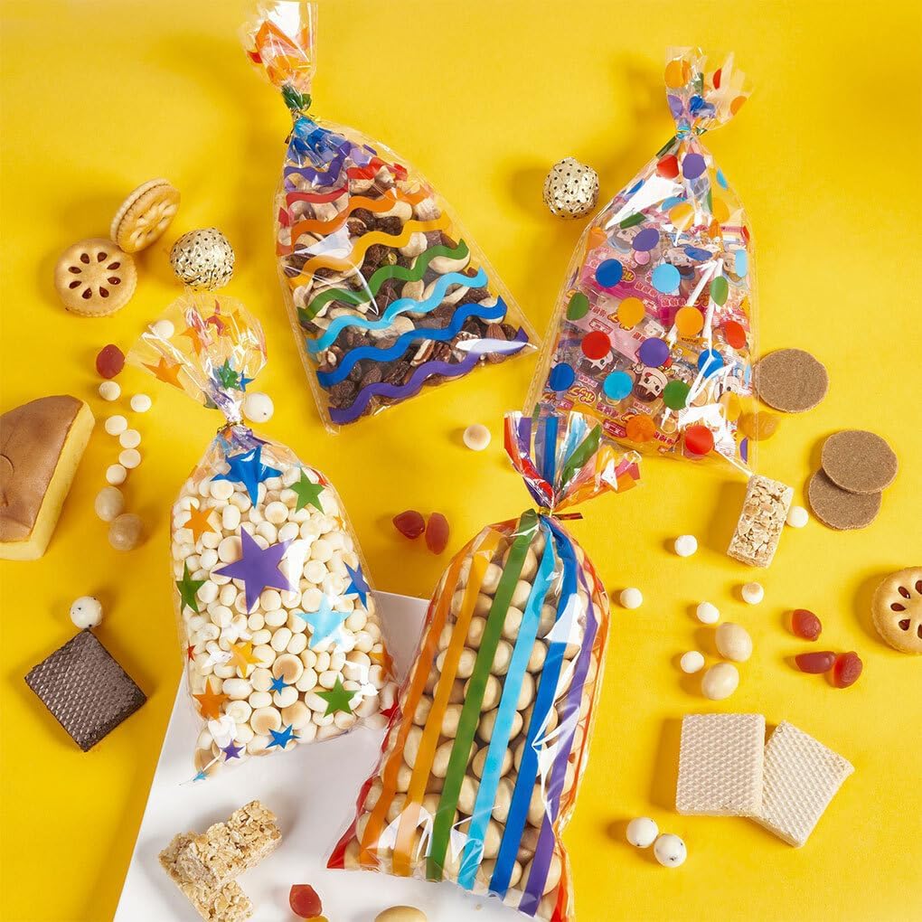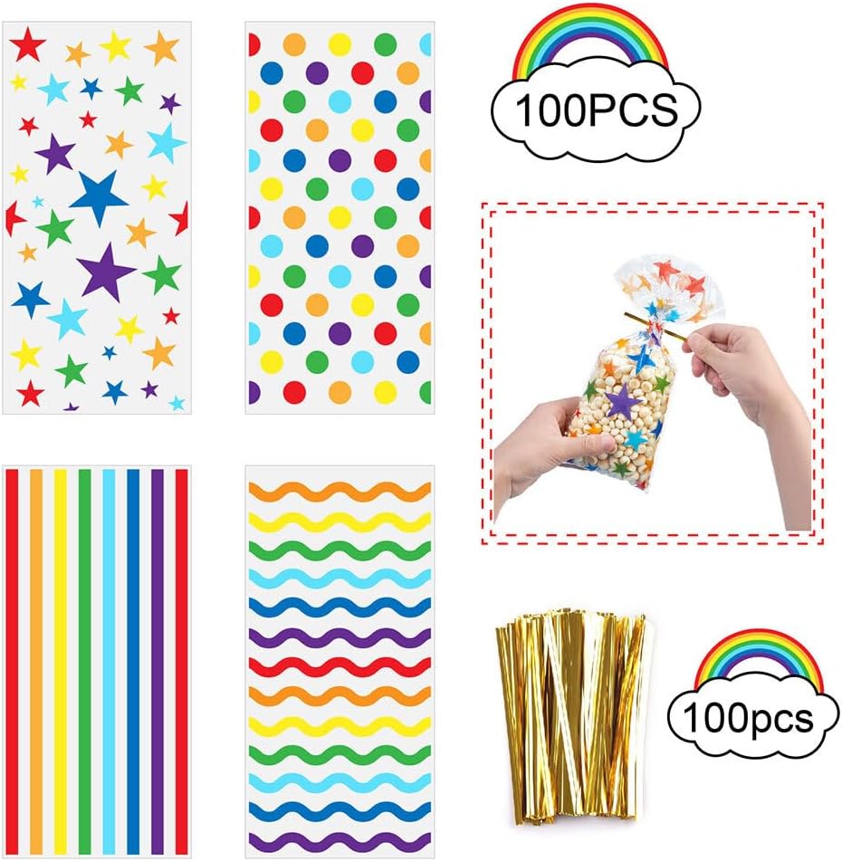 Sacchetti di cellophane oro da 100 pezzi Sacchetti regalo di caramelle di plastica da 100 pezzi per sacchetti di caramelle autoadesive arcobaleno ABS per feste di San Per Valentino