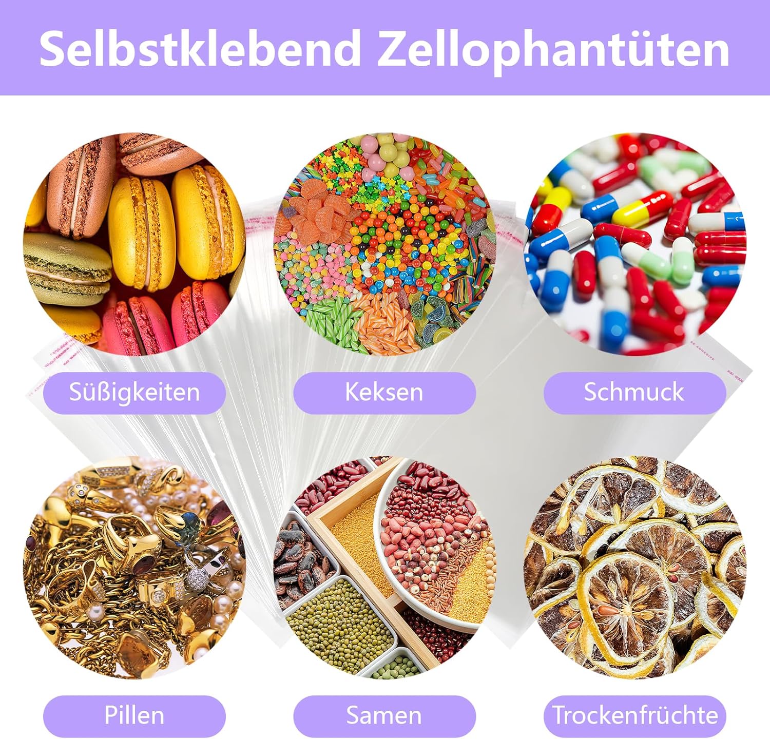 【Robusti e durevoli】: questi sacchetti di cellophane realizzati in materiale OPP di alta qualità sono resistenti alla pressione e durevoli. I bordi uniformi aumentano la durata e prevengono efficacemente le perdite per mantenere il contenuto al sicuro.,Facile da usare: questi sacchetti di cellophane sono dotati di chiusure autoadesive. Basta staccare la striscia di chiusura, piegare il sacchetto e chiuderlo rapidamente - senza attrezzi, risparmiando tempo e senza complicazioni.,Design trasparente: i sacchetti di cellophane in materiale OPP consentono di vedere il contenuto senza aprire la confezione. Il design semplice è perfetto per le presentazioni e aumenta l'attrattiva del prodotto. 【Applicazione versatile】: i sacchetti di plastica sono ideali per conservare caramelle, biscotti, gioielli, pillole, semi, viti e altro ancora. Sono perfetti per la conservazione quotidiana, nonché per feste, regali e confezioni di prodotti