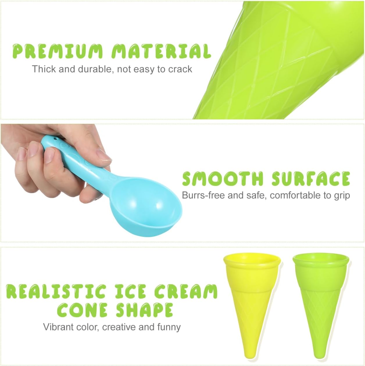 Cosa ottieni: contiene 2 palline di gelato e 8 coni gelato, sufficienti per soddisfare le tue esigenze. Un must per le vacanze al mare, i giocattoli di sabbia in rilievo lasciano fluire la tua creatività. Giocattolo di sabbia: questi stampi per gelato sono un fantastico giocattolo estivo e divertente tutto l'anno. Gli stampi per gelato per bambini aiutano a sviluppare l'abilità pratica e l'immaginazione dei bambini. Giocattolo con sabbia: questi stampi per gelato sono un fantastico giocattolo estivo e divertente tutto l'anno. Aiuta a sviluppare l'abilità pratica e l'immaginazione dei bambini. Giocattoli con la sabbia: questo kit per gelato non è solo il miglior giocattolo da spiaggia, con sabbia ghiacciata, ma promuove anche la lettura e la scrittura, le capacità motorie e il gioco creativo. Sabbiera ideale per far giocare i bambini con la sabbia per ore Sabbiera a forma di secchiello per il ghiaccio: 11 x 6,5 x 6,5 cm. Questi giocattoli da spiaggia con gelato dai colori vivaci possono attirare l'attenzione. Ideale per giochi in spiaggia, giochi in giardino, attività scolastiche, ecc.