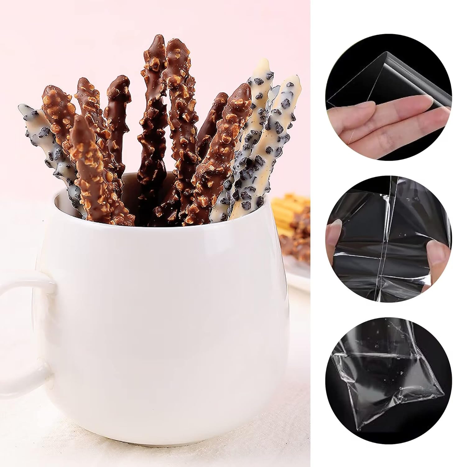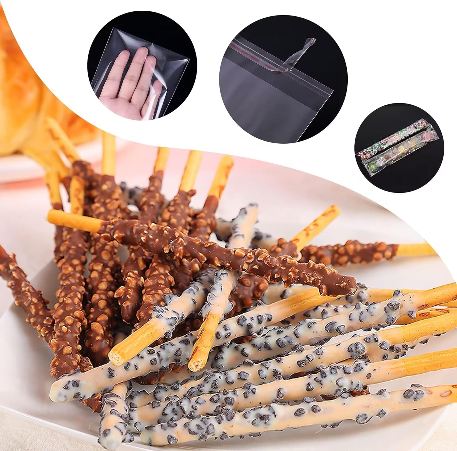 Buste in cellophane trasparente autoadesive 100 pezzi, 8x30,5cm+4cm, spessore 50 µm (bifacciale). Sicuro per il contatto con gli alimenti: approvato FDA, RoHS, EC/1935/2004 e LFGB, per uso alimentare, realizzato in nuovo materiale polipropilene (OPP), si prega di utilizzarlo. Queste borse trasparenti sono semplicemente il modo migliore per esporre e proteggere bellissime foto e opere d'arte. Pulisci con un fazzoletto o un asciugamano per rimuovere facilmente le macchie sulla borsa. Perfetto per bomboniere, merci, caramelle, palline da golf, raccolta di valuta, artigianato, candele, incenso, fiori secchi, biscotti, caramelle, collane, una varietà di snack e altro ancora.