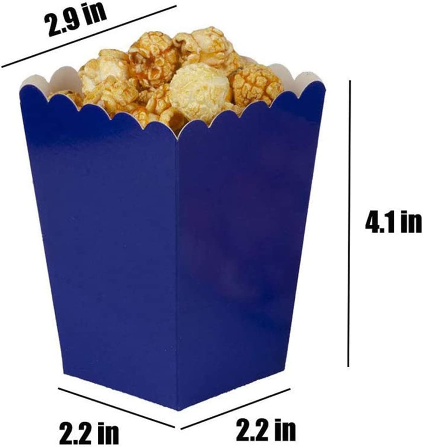 Ciascuno contiene 12 scatole di popcorn di carta blu. Dimensioni: 10 x 7,3 x 5,5 cm (lunghezza x larghezza x altezza). Realizzato in carta resistente, sicura e durevole. Le scatole arriveranno piegate e potranno poi essere separate per formare un sacchetto. Ottima scatola di carta per tutti i tipi di feste, picnic, serate di cinema e bomboniere.