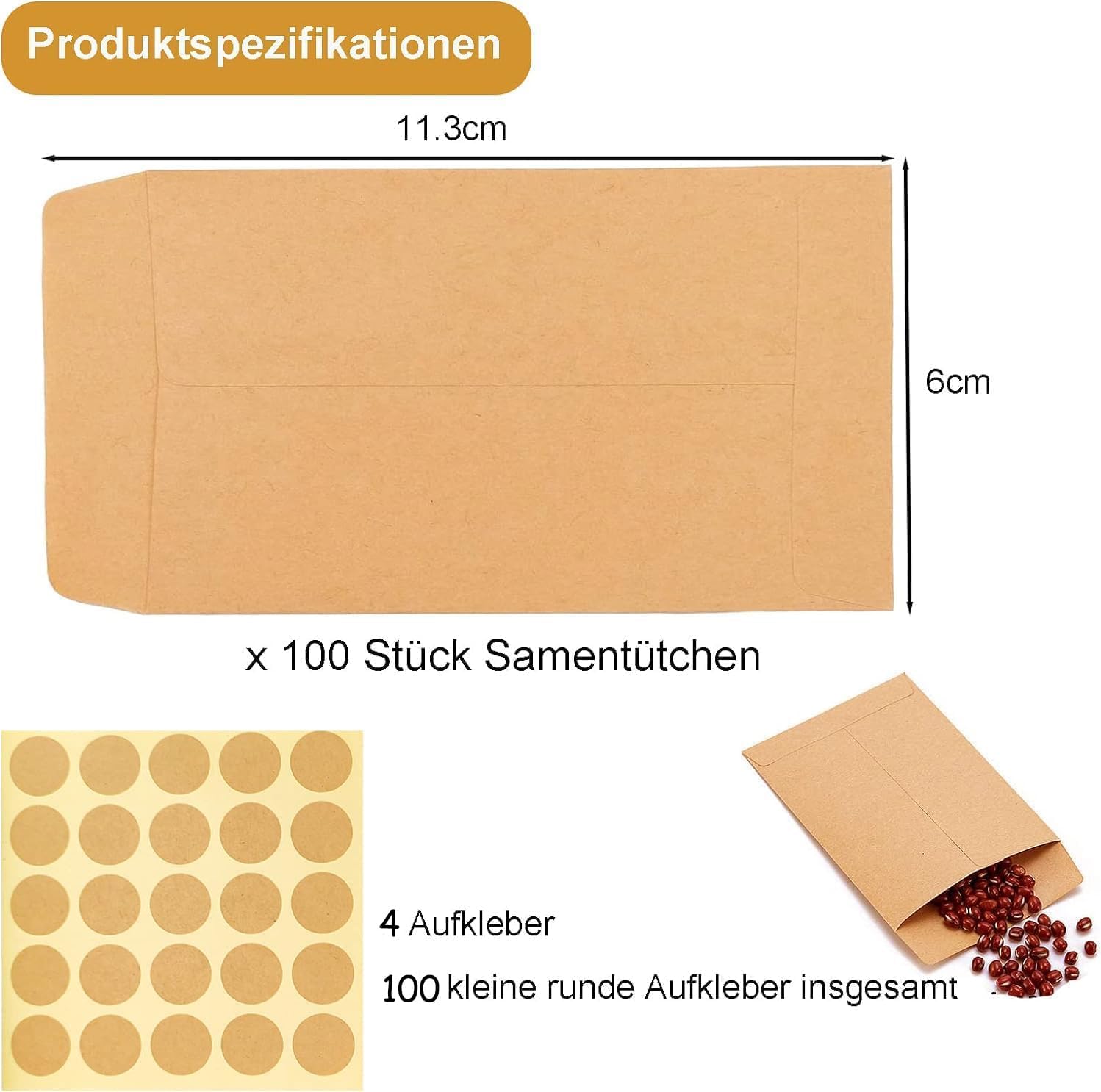 【Dimensioni Perfette】La confezione contiene 100 piccoli sacchetti di carta e 100 adesivi. La dimensione della borsa è 10 x 6 cm. La quantità è sufficiente per soddisfare le diverse esigenze. Queste mini buste sono adatte per imballare o conservare piccoli oggetti. 【Alta qualità e rispettosi dell'ambiente】 I nostri sacchetti per semi sono sicuri per gli alimenti e quindi innocui per biscotti, dolci, sacchetti di frutta, panini, cereali, riso, semi di fiori e altro ancora. Ogni sacchetto di carta è fatto a mano, ben permeabile e resistente agli strappi, facile da scrivere, sicuro da usare ed ecologico; Confezionate con cura e attenzione ai dettagli 【Contenuti fai da te】Le buste di carta kraft marrone non hanno grafica o parole sulla superficie, quindi puoi scrivere il valore o il nome dell'articolo sulla busta e sigillarla piegando la parte superiore e attaccandovi un adesivo. Queste buste di carta sono perfette anche per conservare piccoli oggetti come monete, francobolli, gioielli, schede di memoria SD e altro ancora. Metti piccoli regali delicati e belli per la tua famiglia o i tuoi amici. Sacchetti di carta piccoli: sacchetti per semi, sacchetti per imballaggio, contenitori per semi, sacchetti di carta kraft, sacchetti di carta, sacchetti per semi marroni, sacchetti di carta kraft, buste piccole, sacchetti per riempire piccoli sacchetti regalo.