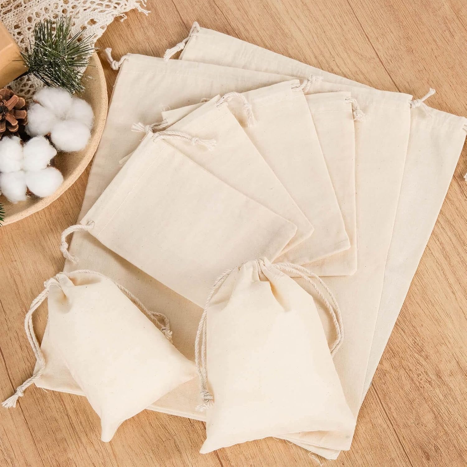 Dimensioni borsa in cotone: le borse in cotone includono diverse opzioni: 10x14 cm 24 pezzi, 12x17 cm 24 pezzi. I sacchetti di cotone possono riempire diverse impostazioni di forma e dimensione, i sacchetti di cotone sono ideali anche per confezionare regali o dipingere, scegli i sacchetti di cotone di dimensioni adatte alle tue esigenze. Nota: misurazione manuale con intervallo di errore ± 0,5 cm Dettagli borsa in cotone: borsa in tessuto con design con coulisse, facile da chiudere e aprire. Le borse in cotone sono squisitamente realizzate e cucite con cura, sicure e non facili da allentare. I sacchetti di lino sono perfetti come calendario dell'Avvento da riempire o come confezione decorativa. Versatile: sacchetto in tessuto adatto a varie feste e occasioni, come ad esempio: San Valentino, Pasqua, Festa della Mamma, Halloween, Ringraziamento, Calendario dell'Avvento da riempire, Natale, Capodanno, anniversario, matrimonio, festa, omaggi, confezione regalo. Materiale naturale: il sacchetto di cotone è realizzato in cotone naturale, riutilizzabile e durevole. I sacchetti regalo possono essere utilizzati per riempire confezioni decorative del calendario dell'Avvento. I sacchetti di stoffa con cordoncino possono contenere molti oggetti come caramelle, cioccolato, accessori di gioielleria, giocattoli, cereali vari, spezie, fiori secchi, oggetti di artigianato, ecc. Garanzia di qualità: poiché i sacchetti di cotone sono fatti di cotone naturale, potrebbe rimanere un leggero odore quando li ricevi, basta mettere i sacchetti di cotone in un luogo ventilato per un po'. Se hai domande sui sacchetti di cotone, contattaci direttamente, ti forniremo soluzioni soddisfatte