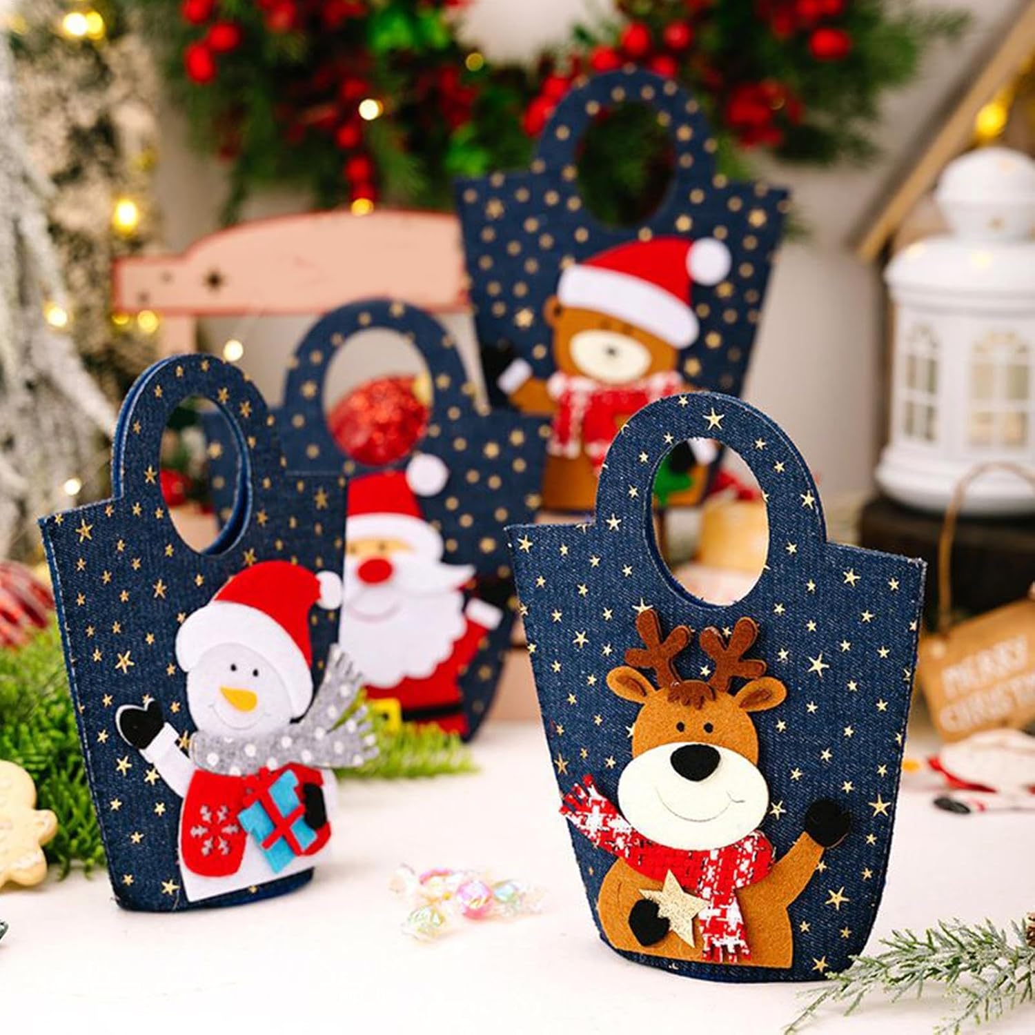 Maggiore durata: progettati pensando alla durata, questi sacchetti natalizi offrono un'opzione di trasporto regalo resistente agli strappi che migliora la comodità quando si distribuiscono regali alle riunioni di famiglia o alle celebrazioni comunitarie Appello decorativo stagionale: con toni natalizi senza tempo, questi sacchetti per caramelle aggiungono un tocco di fascino stagionale alle tue celebrazioni, offrendo un uso versatile per confezionare dolcetti o completare display a tema natalizio in vari ambienti gioiosi Ampio numero: dotato di un set di 4 sacchetti regalo di Babbo Natale, questa borsa natalizia è realizzata per migliorare gli scambi di regali adatti alle famiglie, fornendo un'ampia quantità per la persona amata che condivide i regali e garantendo che non si sentano lasciati fuori durante le allegre celebrazioni delle vacanze Facile trasporto: i sacchetti natalizi includono manici rinforzati che forniscono una presa sicura, garantendo una facile mobilità sia che tu stia distribuendo regali alle riunioni di famiglia o organizzando feste a tema natalizio con facilità Ampiamente applicato: questi sacchetti natalizi agiscono come organizzatori adattabili per cioccolatini, caramelle e anche piccoli regali, raddoppiando come sostituto creativo della calza che migliora la gioia di presentare durante le vacanze, adatti per decorazioni domestiche, feste in sala riunioni o feste in classe allo stesso modo