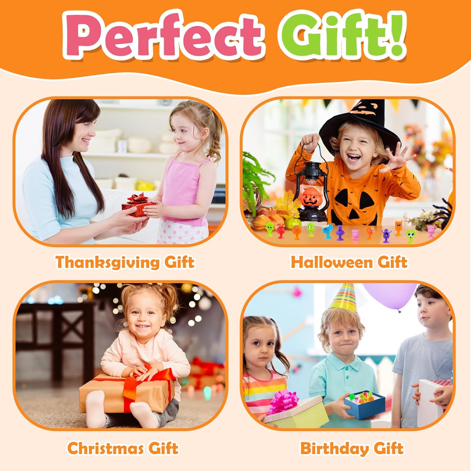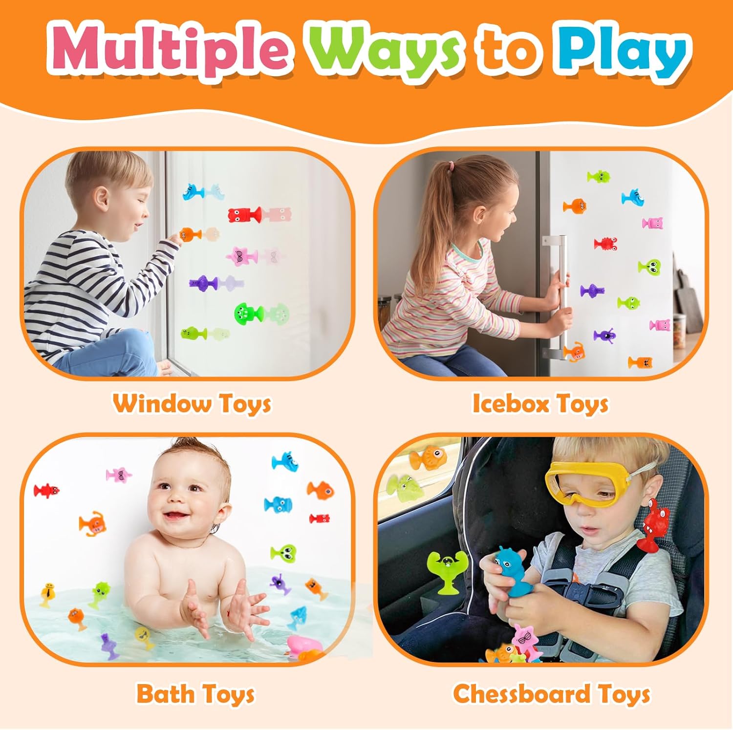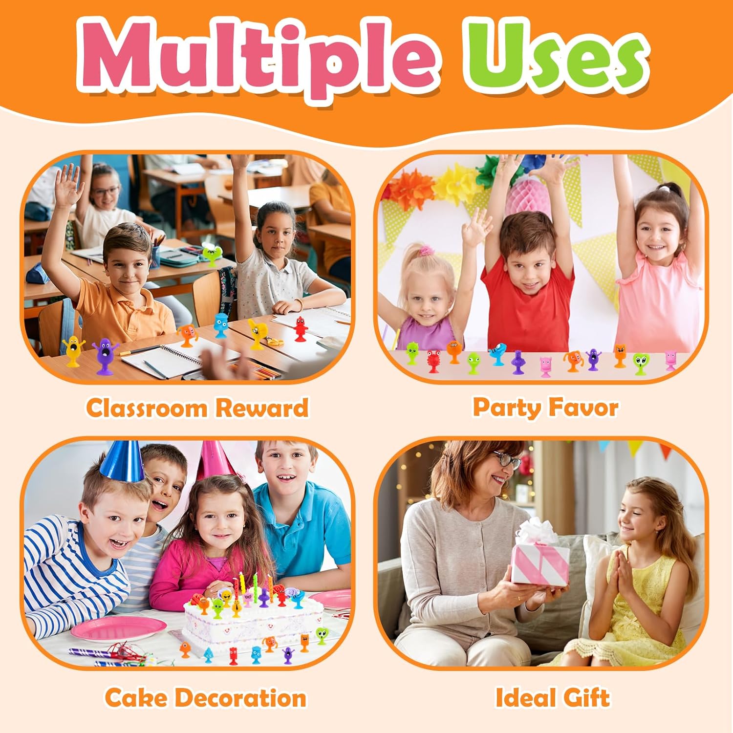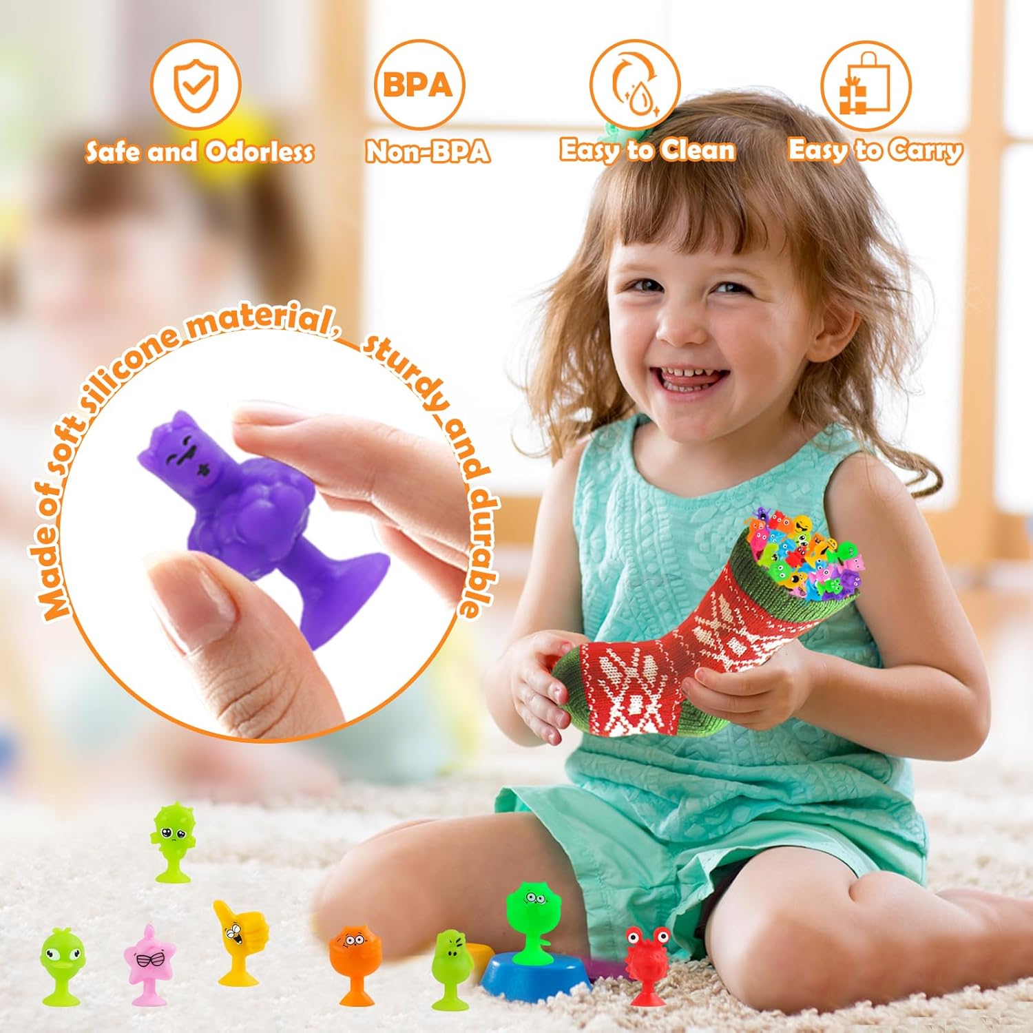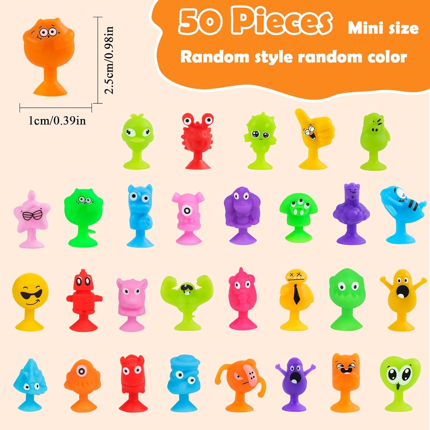 Set di ventose Mini Monster da 50 pezzi: perfetto per feste per bambini, regali di compleanno, premi scolastici e ripieni di uova di Pasqua! Gli stili e i colori sono mescolati in modo casuale. Le parti piccole e facili da impugnare (circa 2-3 cm) sono ideali per le mani dei bambini a partire dai 3 anni. Si prega di verificare la taglia prima dell'acquisto. Aderisce su superfici non porose. Quando smontato emette un divertente suono POP: promuove le capacità motorie e offre ore di divertimento! Materiali lavabili e di alta qualità: la sicurezza e la soddisfazione di tuo figlio sono la nostra massima priorità. Ecco perché le figure del gioco sono realizzate con materiali accuratamente selezionati, atossici, morbidi e sicuri. Sono particolarmente delicati, non lasciano residui o segni su tavoli, finestre o altre superfici e garantiscono una piacevole esperienza di gioco. Se si sporcano, puoi semplicemente sciacquarli con acqua e riutilizzarli ancora e ancora. Versatili e portatili: questi giocattoli sensoriali Montessori con ventosa non sono perfetti solo come regalo o ricompensa di classe, ma anche come giocattolo da bagno, decorazione per finestre, giocattolo da viaggio o per la scrivania dell'ufficio. Le figure piccole e leggere sono ideali per i viaggi e promuovono in modo giocoso la motricità fine e la creatività. Grazie alle loro pratiche dimensioni stanno in ogni tasca e garantiscono divertimento spontaneo in ogni momento! Giocattoli sensoriali antistress: queste figure a ventosa incoraggiano la creatività, le capacità motorie e il pensiero spaziale. Ideale per ridurre lo stress e aumentare la concentrazione - particolarmente adatto a bambini con ADHD o autismo. Perfetto per feste, scuola e casa! Aiuta anche a ridurre l'uso del cellulare e abitudini come mangiarsi le unghie. Un giocattolo versatile per promuovere lo sviluppo e l'apprendimento rilassato! Sistema regalo e ricompensa perfetto per i bambini: queste figure a ventosa sono giochi di società ideali per bambini dai 3 agli 8 anni e ottime alternative non zuccherate! Perfetto come premio di classe, ripieno di uova di Pasqua, premio di carnevale, riempimento di sacchetti di caramelle di Halloween, riempimento di calze di Natale e regali di compleanno. Le figure colorate in stili casuali portano gioia infinita e sono un successo assoluto in ogni occasione!