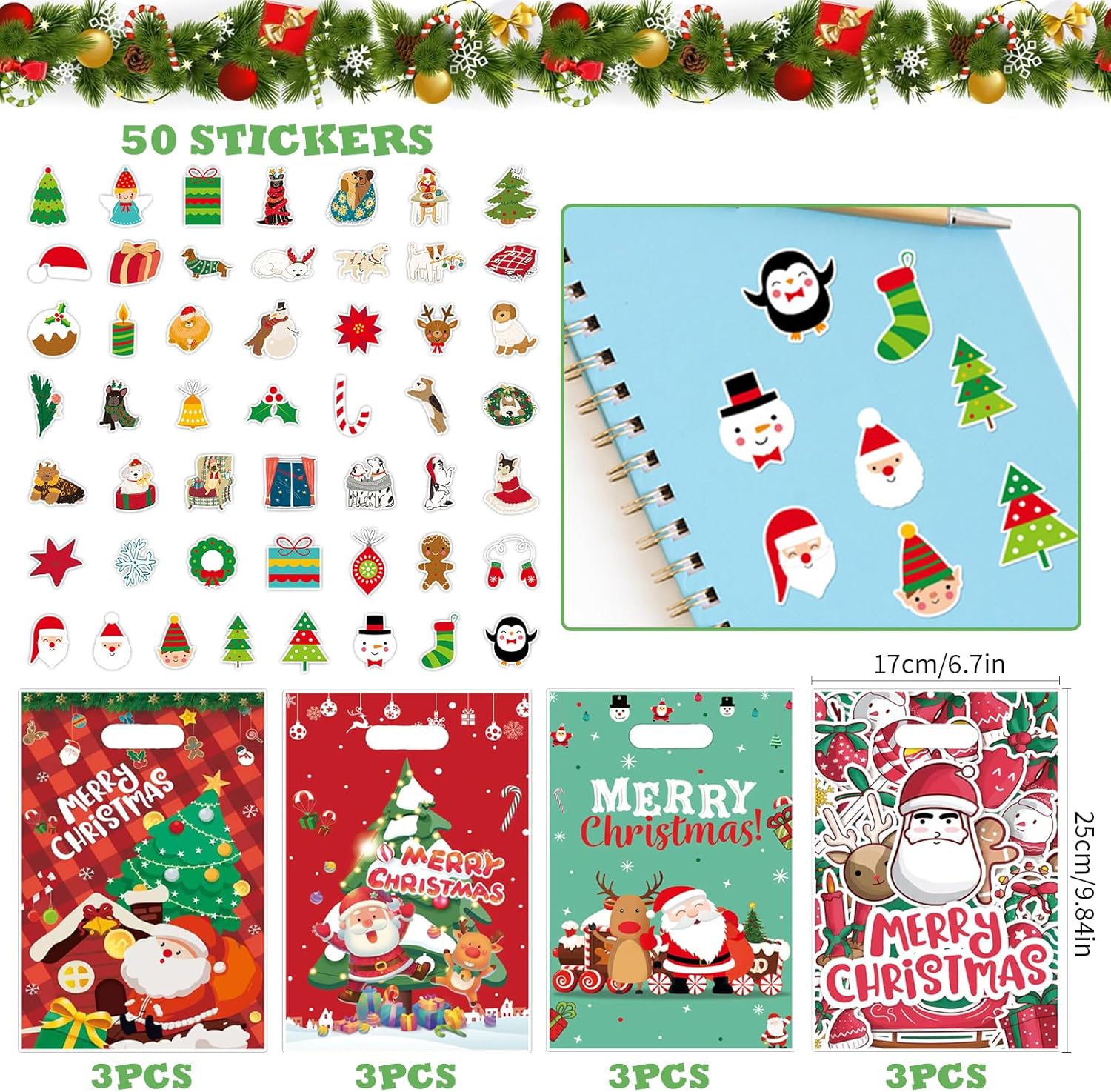 🎅【Borse da festa natalizie per bambini】 La confezione include 12 braccialetti natalizi, 12 sacchetti regalo natalizi, 12 portachiavi natalizi, 12 francobolli natalizi, 10 adesivi per tatuaggi, 12 fischietti natalizi, 50 adesivi natalizi. 🎅 【Bomboniere per le feste di Natale】 Stai cercando dei giocattoli speciali per riempire le calze di Natale o riempire le scatole della vigilia? Non avete idea di quali regali di Natale per i bambini scegliere? Non perderti il set di giocattoli di Natale! 🎅【Uso versatile】Giocattoli di Natale Possono essere usati come regali di Natale, riempitivi per scatole della vigilia di Natale, regali di Capodanno, riempitivi per calze per bambini, riempitivi per calendario dell'Avvento, riempitivi per sacchetti regalo di Natale e così via. 🎅 【Set di bomboniere per le feste di Natale】 Set di bomboniere per le feste di Natale Dotato di classici elementi natalizi come fiocchi di neve, pupazzi di neve, Babbo Natale, alci, ecc., aggiunge una forte atmosfera festosa alla tua festa di Natale e porta gioia alla tua festa. 🎅 【Materiale di alta qualità】 Bomboniere natalizie realizzate in materiale di alta qualità, atossico e inodore. L'uso della tecnologia di stampa avanzata rende i motivi luminosi e i colori vividi. Non sbiadiscono facilmente. La superficie liscia è sicura da usare per i bambini.