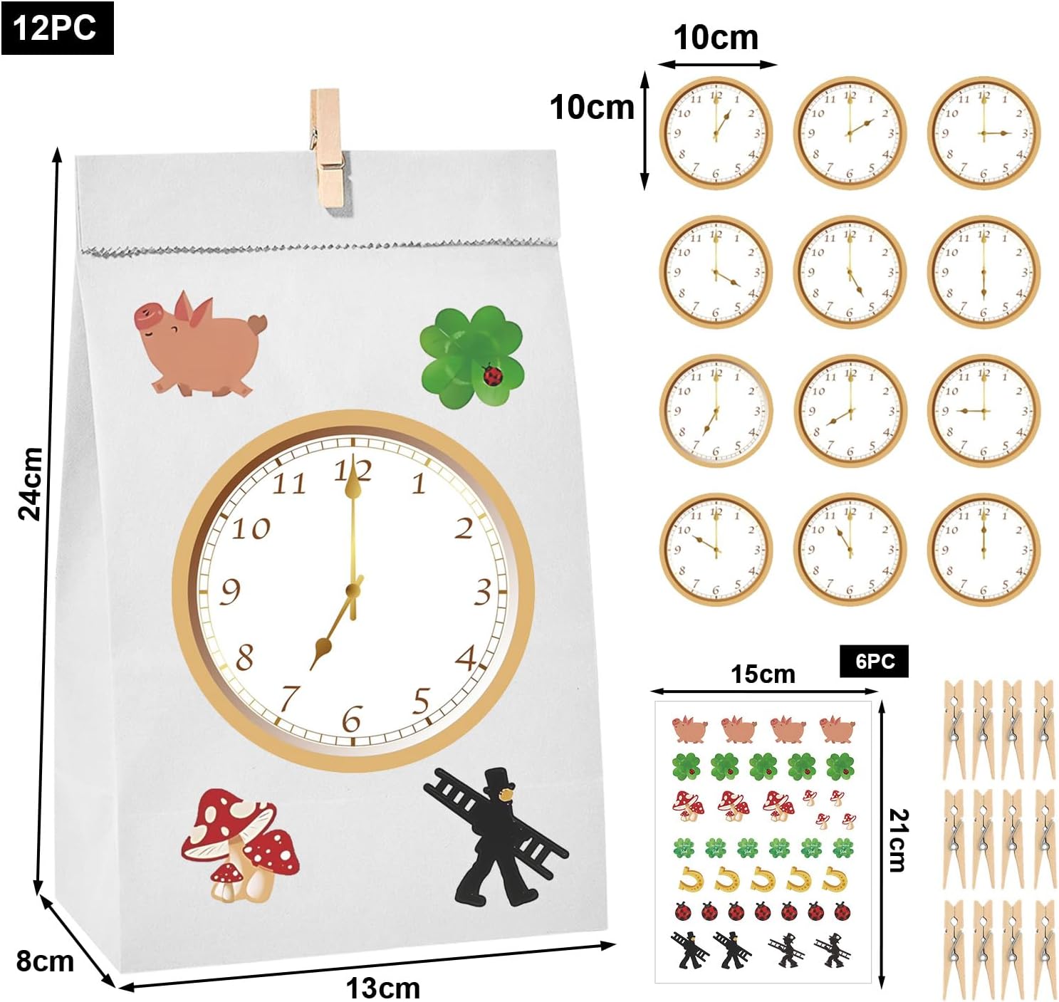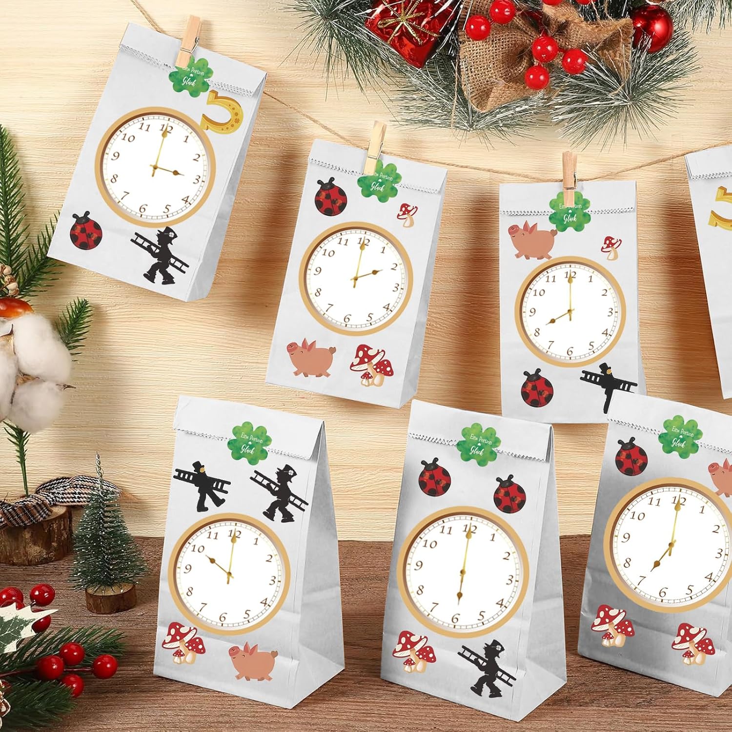 Immaginate come si illuminano gli occhi dei bambini quando scoprono ora dopo ora una nuova sorpresa! Queste graziose borse di Capodanno realizzate in robusta carta kraft trasformano l'attesa della mezzanotte in un'avventura emozionante. 🕛 Con 12 adesivi di Capodanno (dall'1:00 alle 12:00) disegnati con amore, ogni borsa diventa una piccola capsula del tempo: basta attaccare gli adesivi rotondi per il conto alla rovescia sulle borse e l'attesa diventa tangibile! ✨ Sii libero dalla creatività: attacca gli adesivi "Buona fortuna" sulle borse, dipingili con stelle o aggiungi coriandoli scintillanti: ogni borsa può diventare un'opera d'arte personale! 🎁 Basta riempire, chiudere e stupirsi: che si tratti di caramelle, mini giochi o piccoli puzzle, in questi sacchetti ecologici si nascondono ore di divertimento. La pratica clip in legno mantiene tutto ben chiuso fino al grande momento. 💫 Molto più che semplici decorazioni: queste borse per il conto alla rovescia di Capodanno sono la stella segreta di ogni celebrazione di Capodanno nel 2026! Non solo fanno brillare gli occhi dei bambini, ma creano anche momenti indimenticabili di conto alla rovescia insieme.