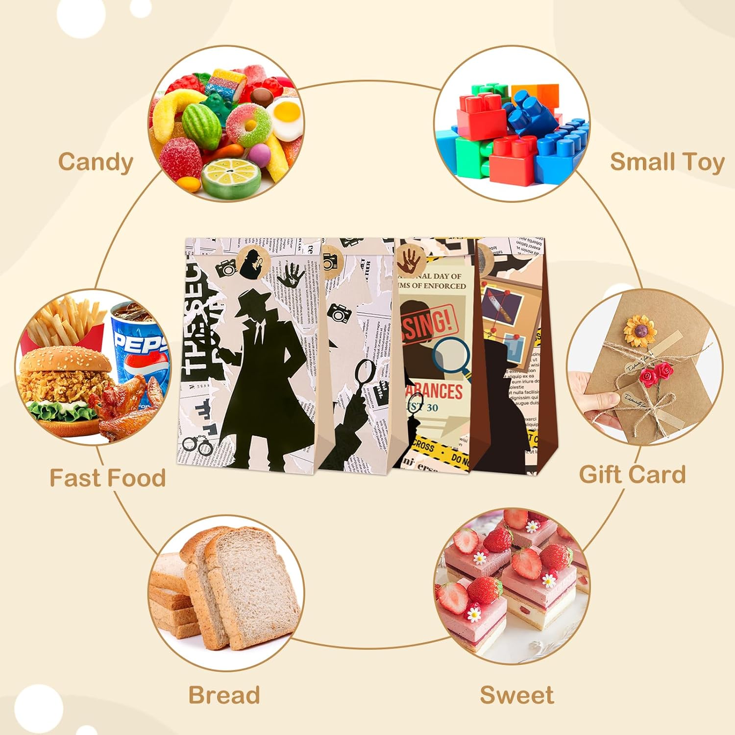 🎒【Grande capacità e multiuso】Questi sacchetti di carta contengono 12 sacchetti e 12 adesivi. Misurando 12 x 8 x 22 cm, possono contenere regali, pane, dolci, colazione, caramelle, biscotti, cupcake o giocattoli. Ideale per regali per feste, oggetti di uso quotidiano o regali a sorpresa. Una scelta pratica per ogni celebrazione! 🌱【Sacchetti di carta kraft di alta qualità】 Questi sacchetti regalo sono realizzati con carta kraft ecologica di alta qualità, inodore, non tossica e durevole. Riutilizzabili e durevoli, rispettano l'ambiente garantendo la sicurezza del tuo bambino. Una buona scelta per i genitori attenti all'ambiente! 🤲 【Pratiche e durevoli】 Le borse regalo sono progettate con una base piatta per un posizionamento facile e stabile e sono dotate di una maniglia con coulisse facile da trasportare, perfetta per le mani dei più piccoli. I bambini possono portare facilmente snack, giocattoli o piccoli regali per aggiungere divertimento alla festa! 🎨【Design carino e modelli a due colori】Le nostre borse da festa sono stampate con graziosi motivi classici di cartoni animati su entrambi i lati, colori vivaci e superficie liscia. La fantasia bicolore è divertente e attira subito l'attenzione dei bambini. Perfetto per feste a tema per creare un'atmosfera allegra e affascinante! 🎉 【Forniture perfette per le feste】 Perfette per feste, compleanni, matrimoni o festival, queste borse regalo illumineranno qualsiasi evento. Le borse da festa sono adatte anche per l'uso quotidiano, possono essere utilizzate per contenere pane, dolci, piccoli giocattoli e così via. Condividi la gioia con i tuoi amici e familiari e rendi ogni occasione memorabile!