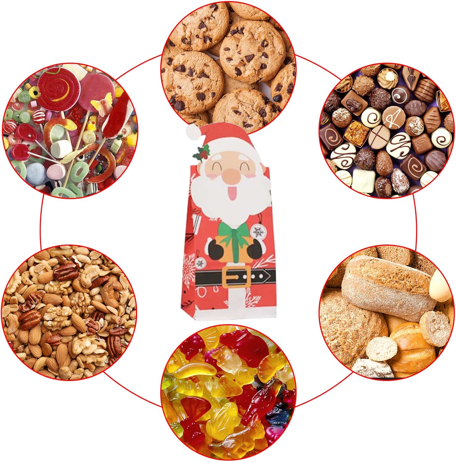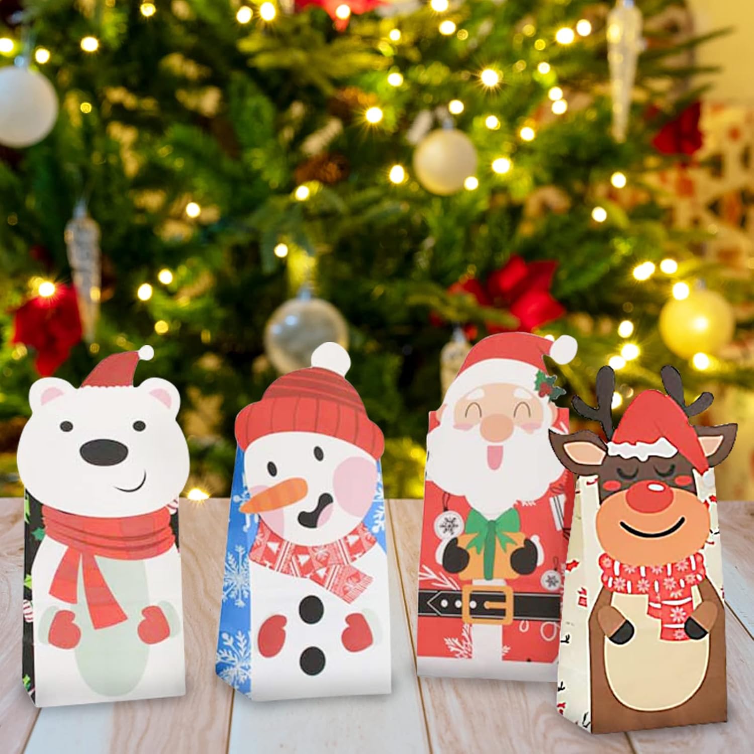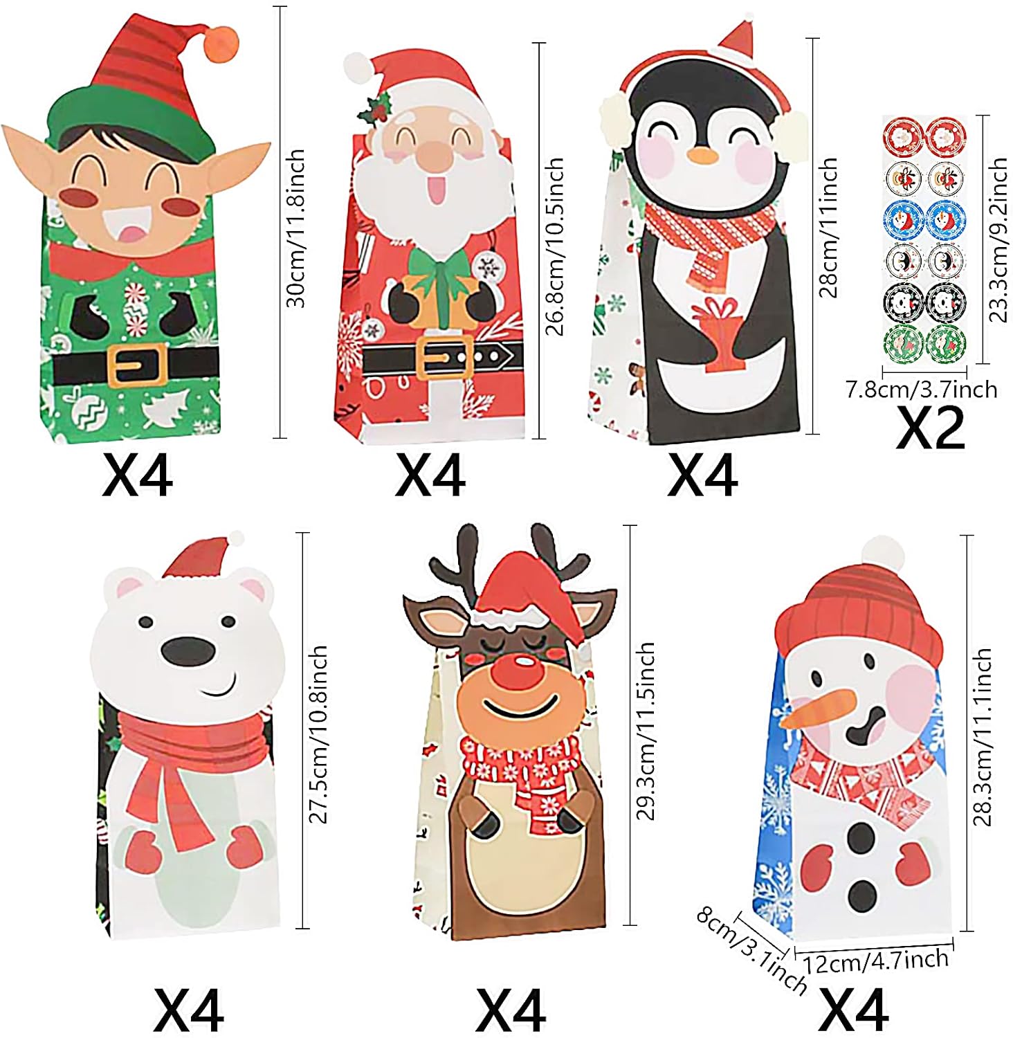 ⛄【Sacchetti regalo di Natale】Contiene 24 sacchetti di carta regalo di Natale con 6 modelli diversi (motivo Babbo Natale, motivo alce, motivo pupazzo di neve, motivo pinguino, altri e 2 fogli di adesivi natalizi, elementi pieni di atmosfera natalizia, puoi trascorrere un Natale perfetto, adatto per confezioni regalo di Natale. 🎄【Dimensioni del sacchetto di carta natalizio】 Dimensioni circa 12 x 8 x 28 cm, che sono abbastanza spaziosi, bellissimi sacchetti regalo sono perfetti da riempire con molti sacchetti regalo di piccole e medie dimensioni regali, sufficienti per contenere dolcetti, popcorn, caramelle, caramelle alla menta, biscotti, cioccolata, macchinine, ecc. ⛄【Materiali di alta qualità】Questo sacchetto di caramelle è realizzato con materiali cartacei ecologici, riciclabili e di alta qualità. La carta è molto stabile e resistente agli strappi, senza alcun odore speciale e riutilizzabile. Motivi colorati aggiungono atmosfera festosa, i classici sacchetti regalo con elementi natalizi sono perfetti per la festa di Natale, molto carini e interessanti, adatti a tutti i tipi di confezioni regalo natalizie ⛄ 【Ampiamente usati】 I sacchetti regalo delicati e carini sono perfetti per feste di compleanno di Natale, feste di Natale, matrimoni natalizi o altre feste a tema natalizio per rendere speciale la tua festa. Puoi utilizzare sacchetti di carta con dolci, giocattoli e altri piccoli regali per creare belle sorprese durante il periodo natalizio.