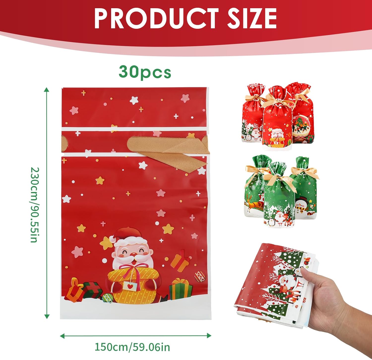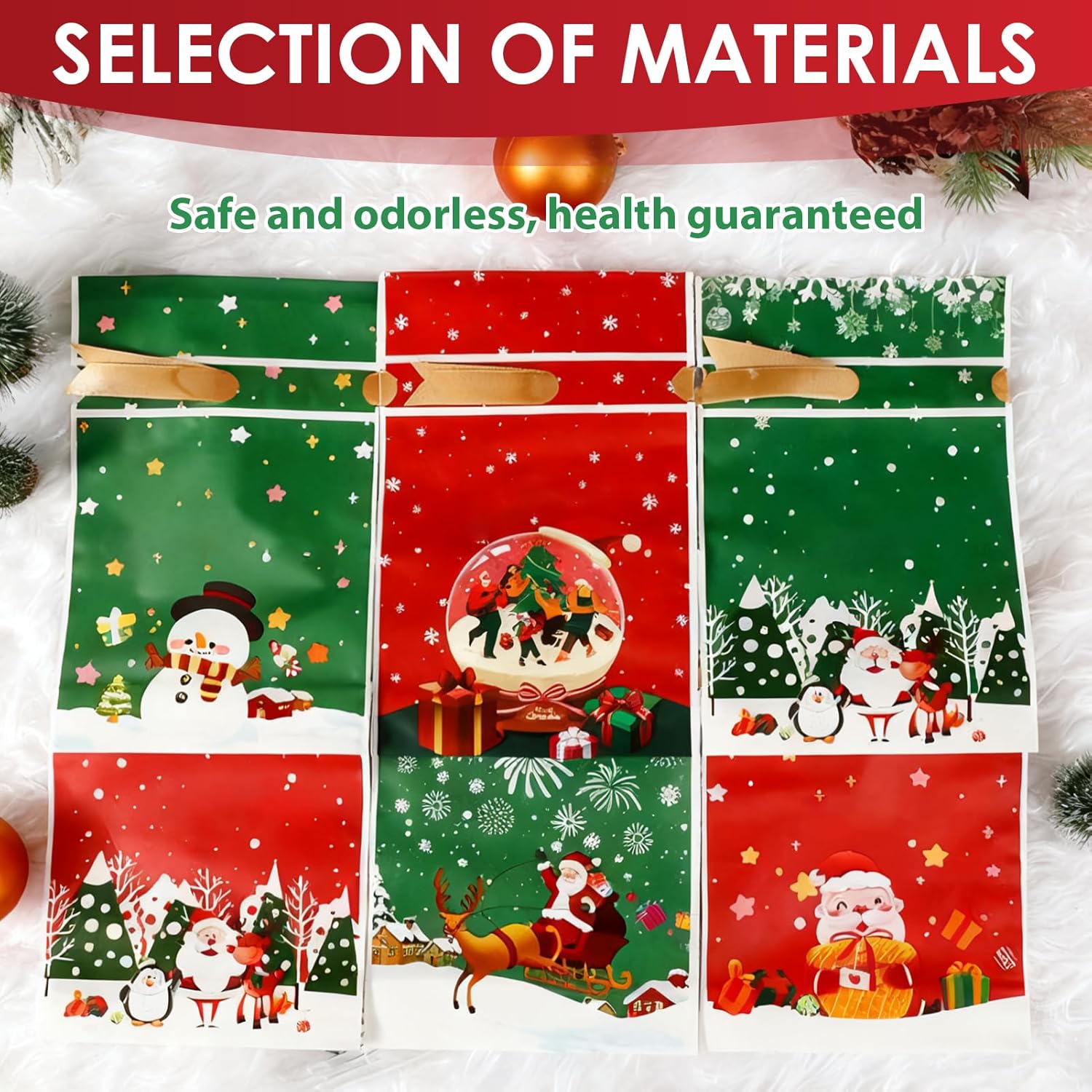 Set completo e vario: con un totale di 30 sacchetti regalo in 5 design diversi, questo set è ideale per tutte le tue occasioni festive. Ogni sacchetto misura 23 x 15 x 6 cm e offre molto spazio per vari dolcetti come biscotti, caramelle o piccoli giocattoli. Il cordoncino integrato garantisce una conservazione facile e sicura dei tuoi regali. Design festoso ed elegante: le borse sono decorate con disegni natalizi accattivanti e colorati, perfetti per rallegrare le tue celebrazioni. Che si tratti di un compleanno, di una festa di fine anno o di Natale, questi sacchetti regalo aggiungono un tocco festoso alle tue presentazioni. Stupisci i tuoi ospiti con queste borse che uniscono praticità ed estetica. Comodo utilizzo per tutto l'inverno: con 30 borse a tua disposizione, sarai pronto a festeggiare ogni occasione invernale senza stress. Conservali nel tuo armadio per averli a portata di mano per le feste, che si tratti di Natale, Capodanno o altri eventi a tema. Non perdere mai l'occasione di incartare un piccolo regalo o un dolcetto. Confezione senza stress: riduci lo stress della confezione con questi sacchetti regalo pratici ed eleganti. Il set di 30 sacchetti rende la preparazione dei tuoi regali molto più semplice, facendoti risparmiare tempo pur mantenendo un aspetto professionale. Semplifica i preparativi della tua festa e trascorri più tempo godendoti i momenti con i tuoi cari. Garanzia di soddisfazione totale: ci impegniamo a fornirti borse della massima qualità. La vostra soddisfazione è la nostra priorità. Se per qualsiasi motivo non sei completamente soddisfatto del tuo acquisto, non esitare a contattarci. Lavoreremo con te personalmente per risolvere eventuali problemi e assicurarci che tu sia soddisfatto al 100% della tua esperienza.