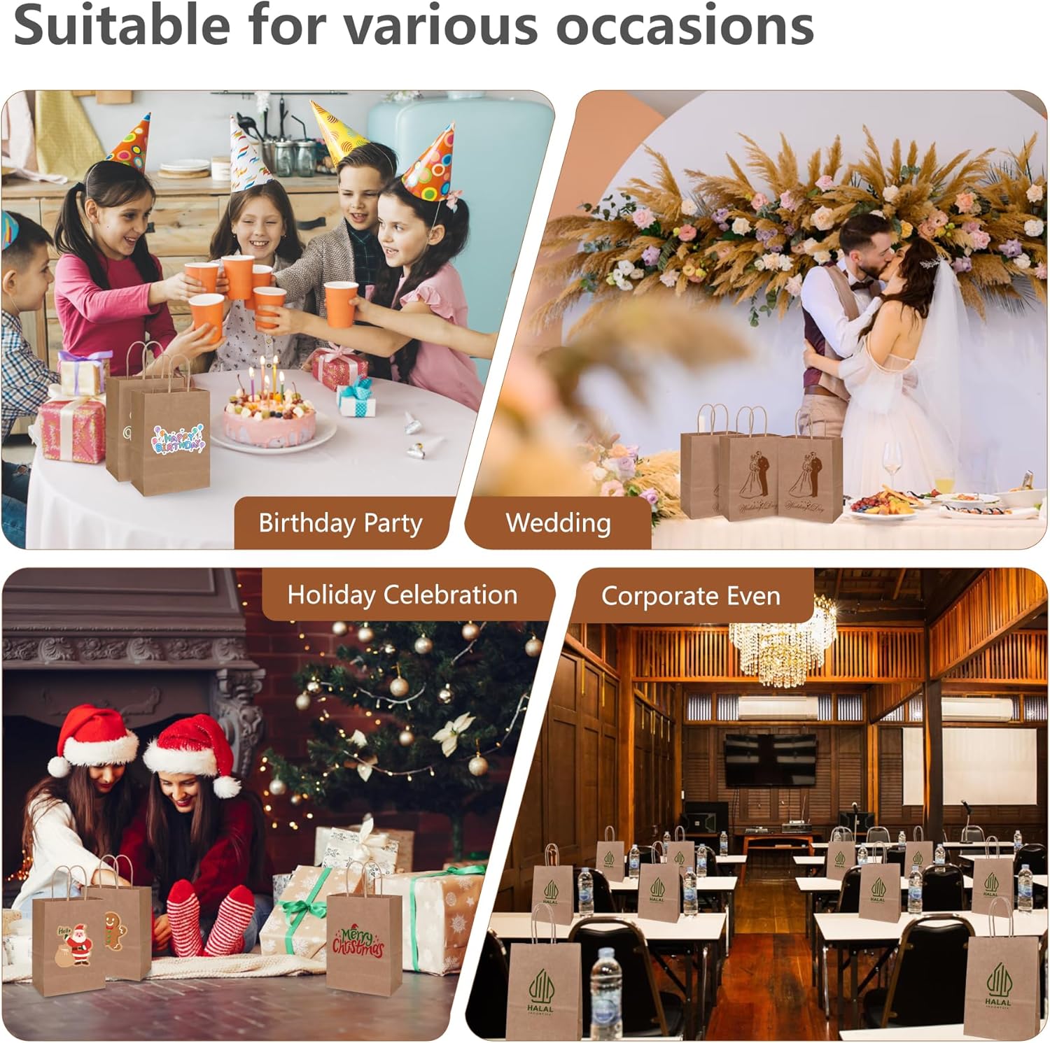 Sacchetti regalo ELAKIRI, confezione da 36 sacchetti di carta marrone con manici, realizzati con sacchetti di carta kraft da 120 g/m², 15x8x21 cm, sacchetti di carta ecologici e riciclabili piccoli per matrimoni, feste, compleanni, Natale