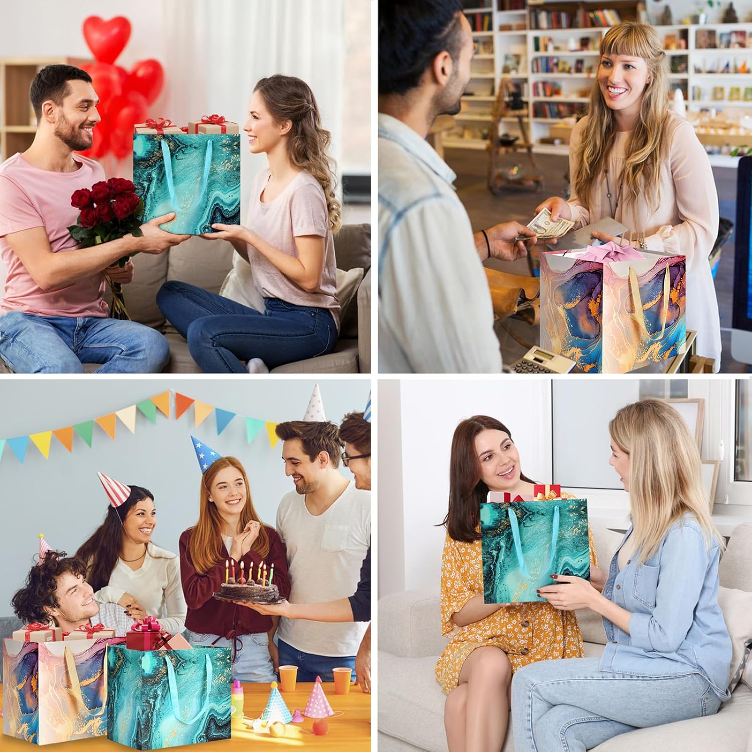 PACCHETTO INCLUSO: Riceverai 2 sacchetti regalo con manici in corda di nylon. 2 buoni regalo. i sacchetti regalo sono adatti per regali di grande formato. È realizzato in carta patinata riutilizzabile. DIMENSIONI: sacchetto regalo grande che misura circa 30 x 30 x 30 cm / 11,8 x 11,8 x 11,8 pollici, con inserti inferiori in cartone, riutilizzabile più volte. La borsa regalo è ideale per incartare regali o conservare oggetti AMPIO UTILIZZO: la confezione regalo può essere utilizzata separatamente, le borse regalo possono contenere regali di grandi dimensioni, fiori, scarpe o ospitare bambole alla moda FACILE CONSERVAZIONE: questa borsa regalo può essere completamente piegata quando non in uso, riducendo al minimo lo spazio di archiviazione. Il sacchetto regalo grande è abbinato ad un biglietto, puoi scrivere le tue benedizioni a mano ALTA QUALITÀ: i sacchetti regalo di nozze sono realizzati con materiali di alta qualità, robusti e riciclabili. i sacchetti regalo sono abbastanza spessi da poter essere trasportati bene. Può anche essere utilizzato come sacchetto regalo di compleanno per le feste