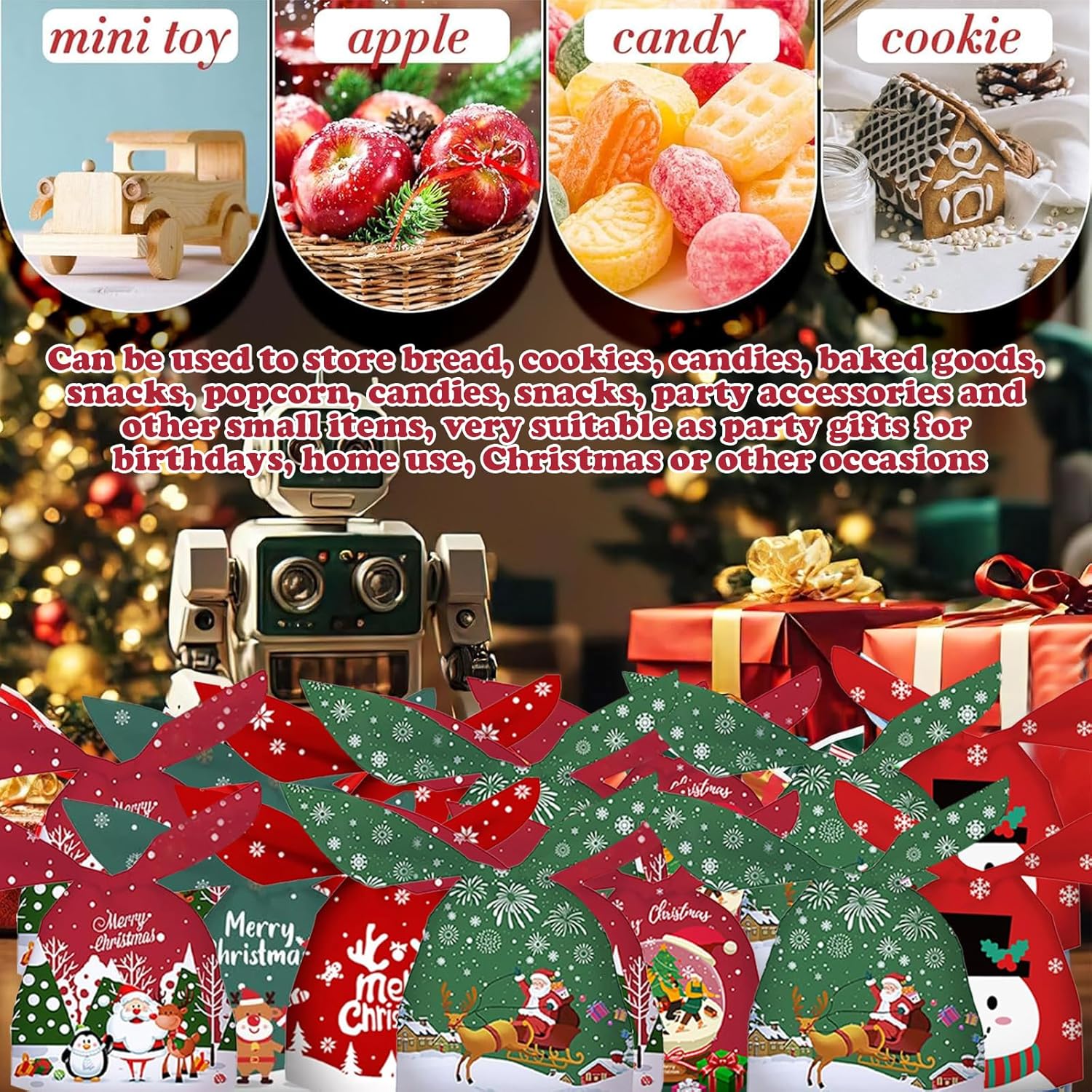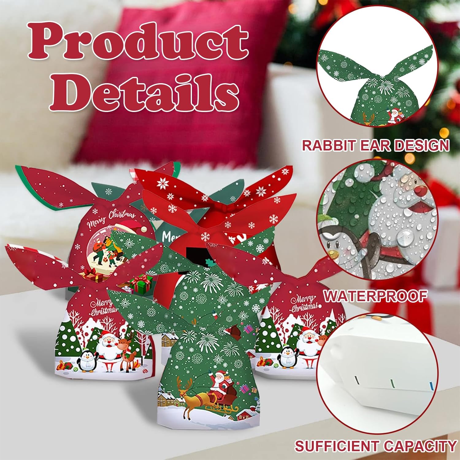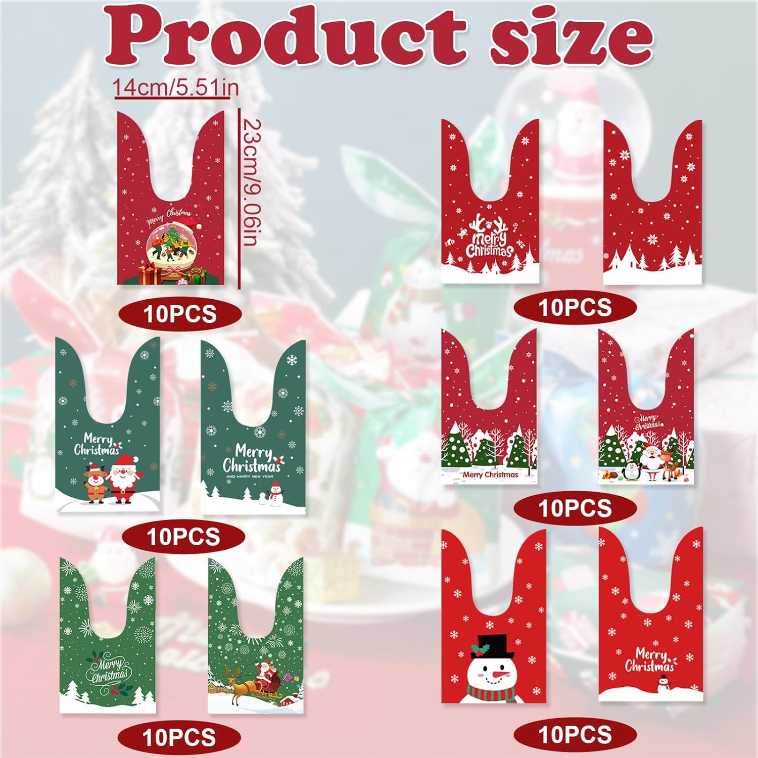 Ampio set per l'allegria delle feste: questo set contiene un totale di 60 sacchetti regalo di Natale in sei diversi modelli – ogni motivo dieci volte. I classici motivi natalizi come pupazzo di neve, renna, fiocco di neve e altri creano un'atmosfera calda e allegra. Ideale per confezionare in modo pratico e veloce piccole prelibatezze come biscotti e caramelle. Perfetto per feste di famiglia, attività scolastiche, feste per bambini e uso quotidiano durante l'Avvento. Facile da riempire e chiudere: grazie alla forma innovativa con orecchie di coniglio, ogni borsa può essere chiusa in un batter d'occhio, senza accessori aggiuntivi. Le due estremità superiori della borsa possono essere formate in anelli decorativi, il che non solo semplifica il processo di confezionamento ma lo valorizza anche visivamente. In questo modo ogni piccolo regalo diventa un amorevole attrazione, che piacerà a grandi e piccini. Materiale sicuro e riutilizzabile: i sacchetti regalo sono realizzati in materiale plastico di alta qualità, robusto, durevole e, soprattutto, sicuro per gli alimenti. Sono riutilizzabili e facili da pulire, il che li rende particolarmente sostenibili. Che si tratti di biscotti fatti in casa, dolci o piccole sorprese, questo materiale è la soluzione perfetta per un trasporto sicuro e una presentazione attraente dei vostri regali di Natale. Dimensioni pratiche per un utilizzo versatile: con dimensioni di ca. Con una dimensione di 23 x 13,8 cm, i sacchetti offrono spazio sufficiente per una varietà di piccoli regali. Che si tratti di biscotti, praline, caramelle, cioccolato o piccoli giocattoli, tutto ha il suo posto. Questa dimensione è ideale per l'utilizzo nei mercatini di Natale, negli asili nido, nelle feste aziendali o in ambienti privati. Le borse sono maneggevoli, salvaspazio e portano un'atmosfera festosa in ogni ambiente. Usi versatili per diverse occasioni: questi sacchetti regalo dal design festivo non sono adatti solo per Natale, ma sono ideali anche per i compleanni dei bambini, come bomboniere in occasione di eventi o per piccoli regali nella vita di tutti i giorni. Sono perfetti per conservare snack, popcorn, mini pasticcini o altri piccoli oggetti, rendendoli l'aiutante ideale per chi cerca soluzioni di imballaggio eleganti, semplici e pratiche.